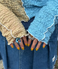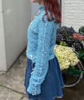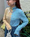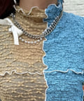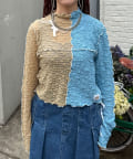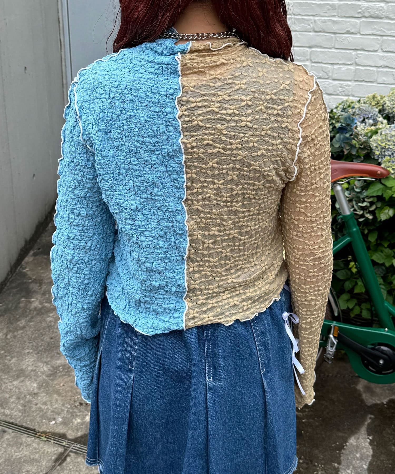 2つの異なるぽこぽこと表面感ある素材を組み合わせたカットソー。