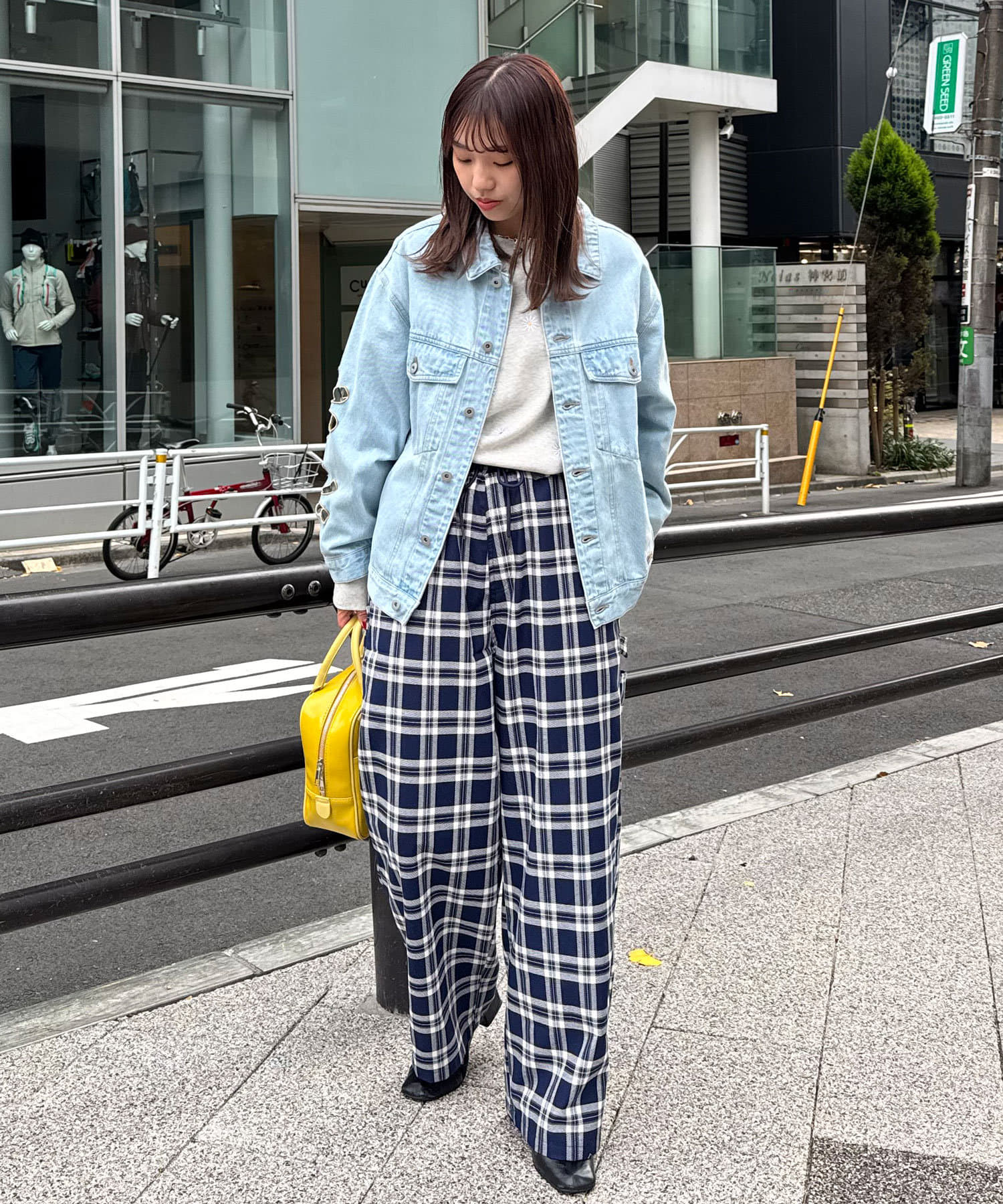 同素材のカットアウトデニムとのセットアップ着用もハロサン好きにはイチオシのスタイリングです。
