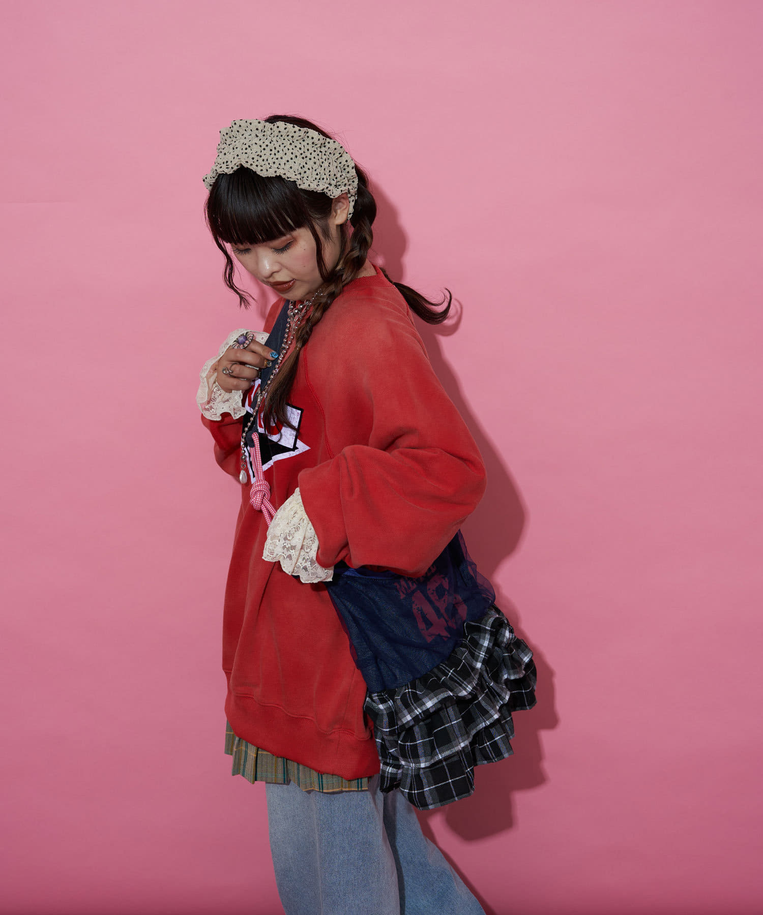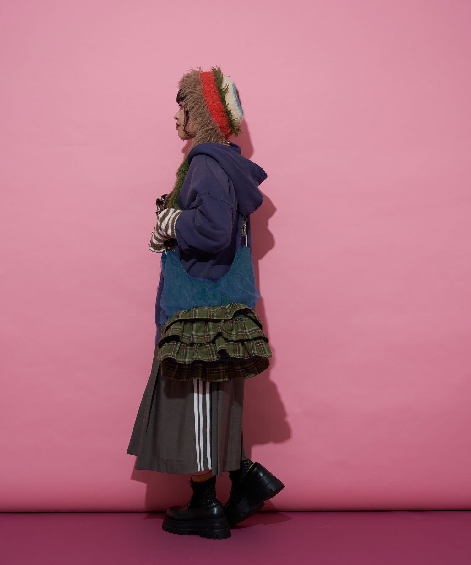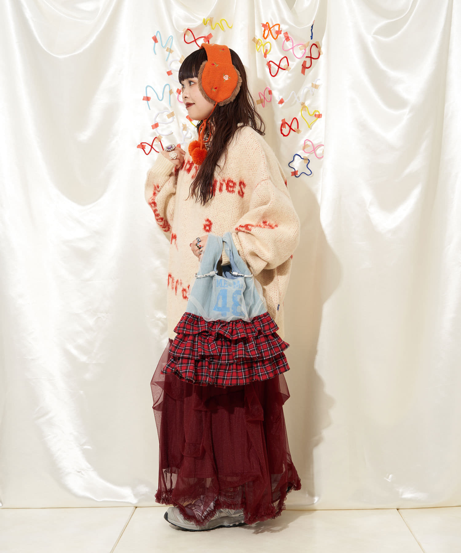 デニム素材とチェックのドッキングデザインは秋冬のコーデにとっても相性も良く、カジュアルさんでもガーリーさんでも使っていただきやすいです!