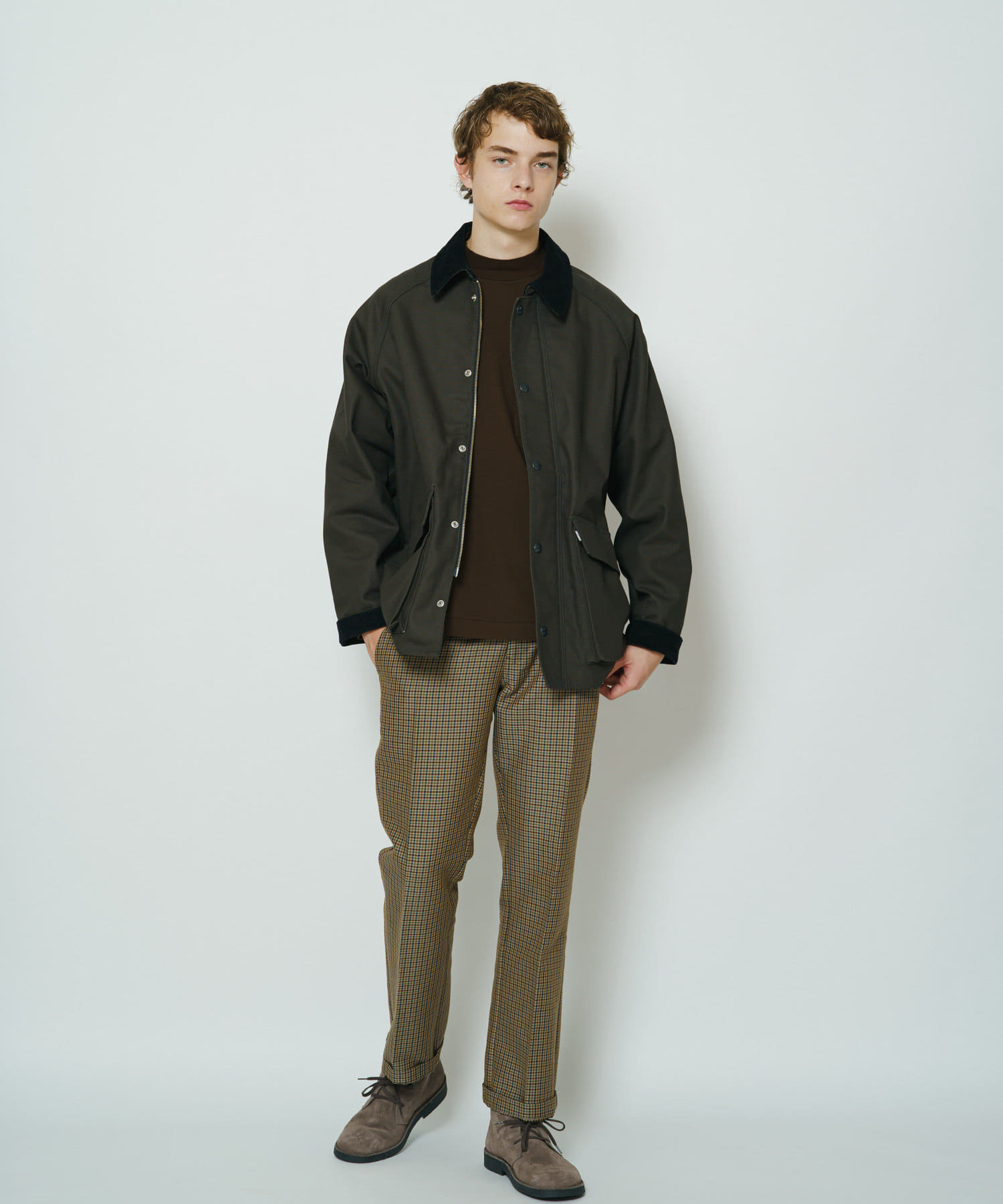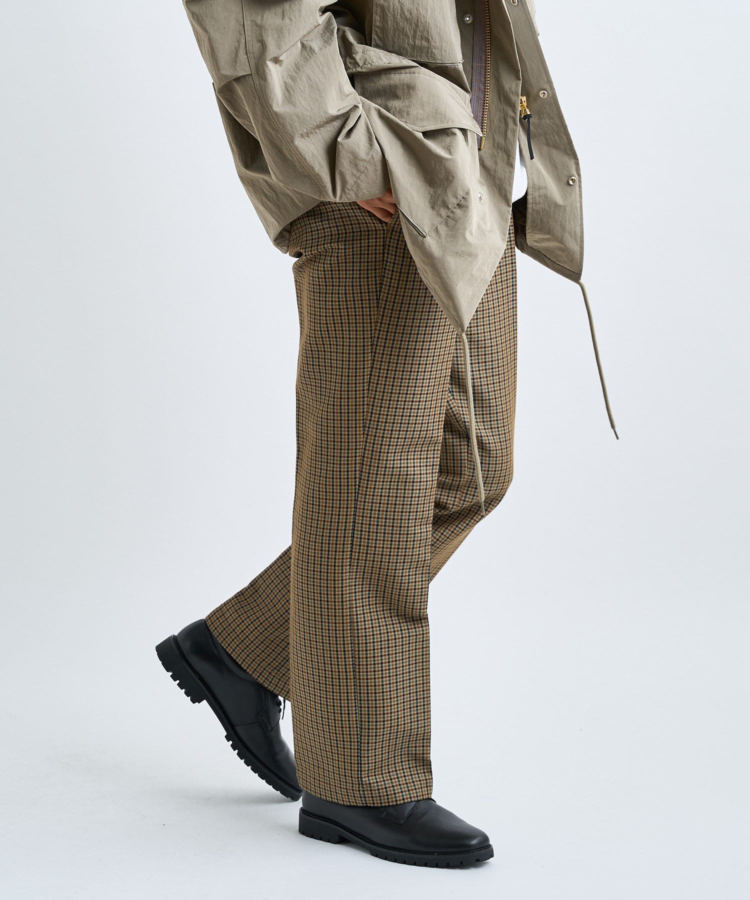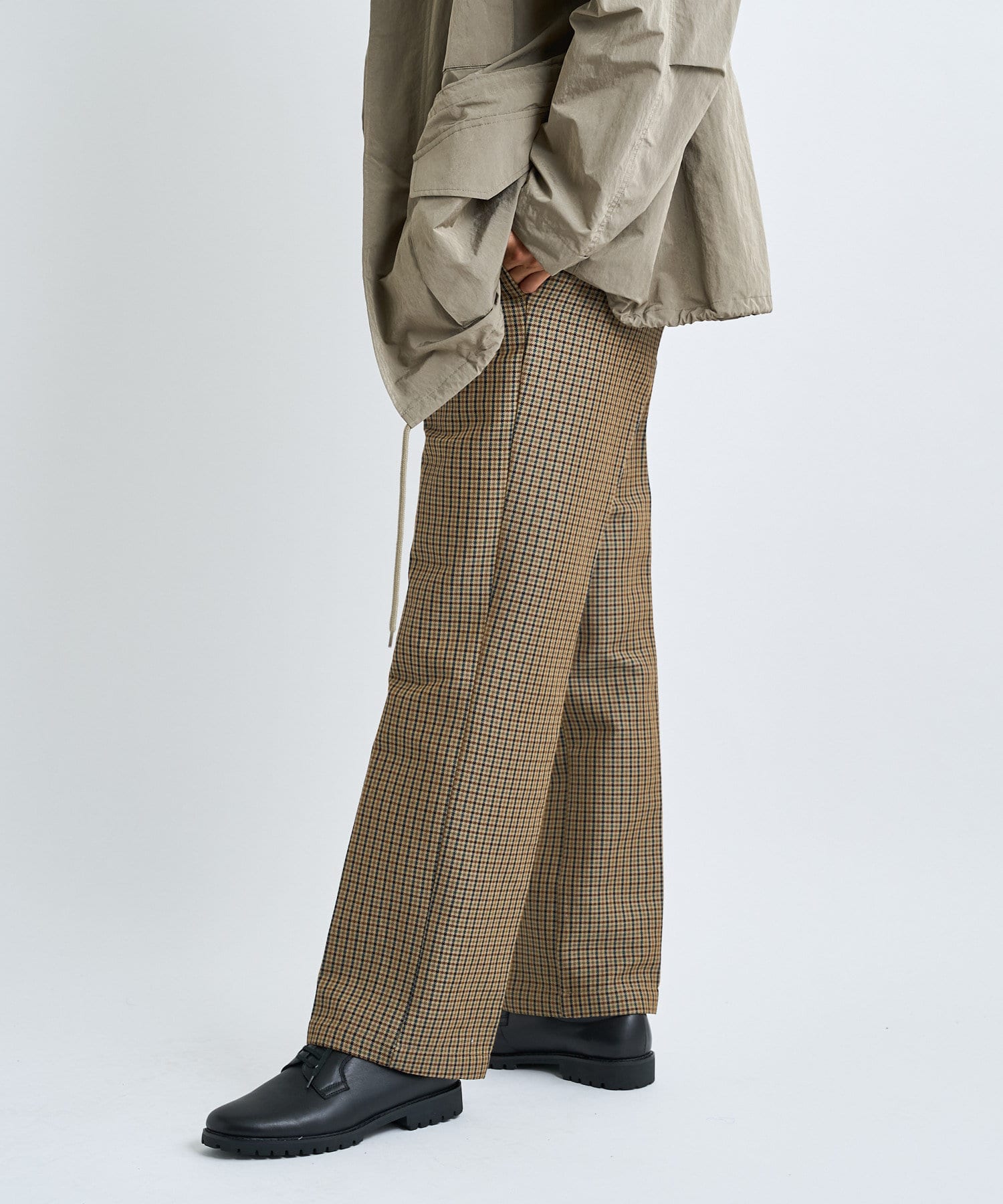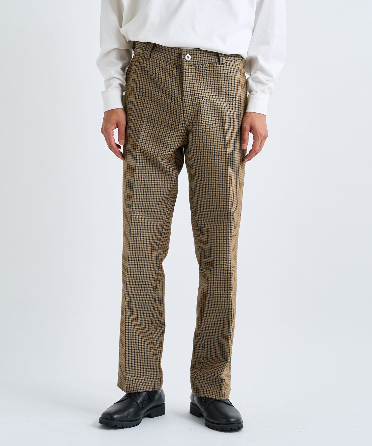秋冬に着たくなるブリティッシュカジュアル。それが簡単に叶うのがこのパンツ。トラディショナルながんクラブチェック柄を用いて、落ち着いた大人な印象に。シルエットはややスリムなストレートシルエットですらっとスタイル良く見せられます。通年着ていただきやすいTR生地なので、シーズン問わず着用いただけます。