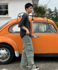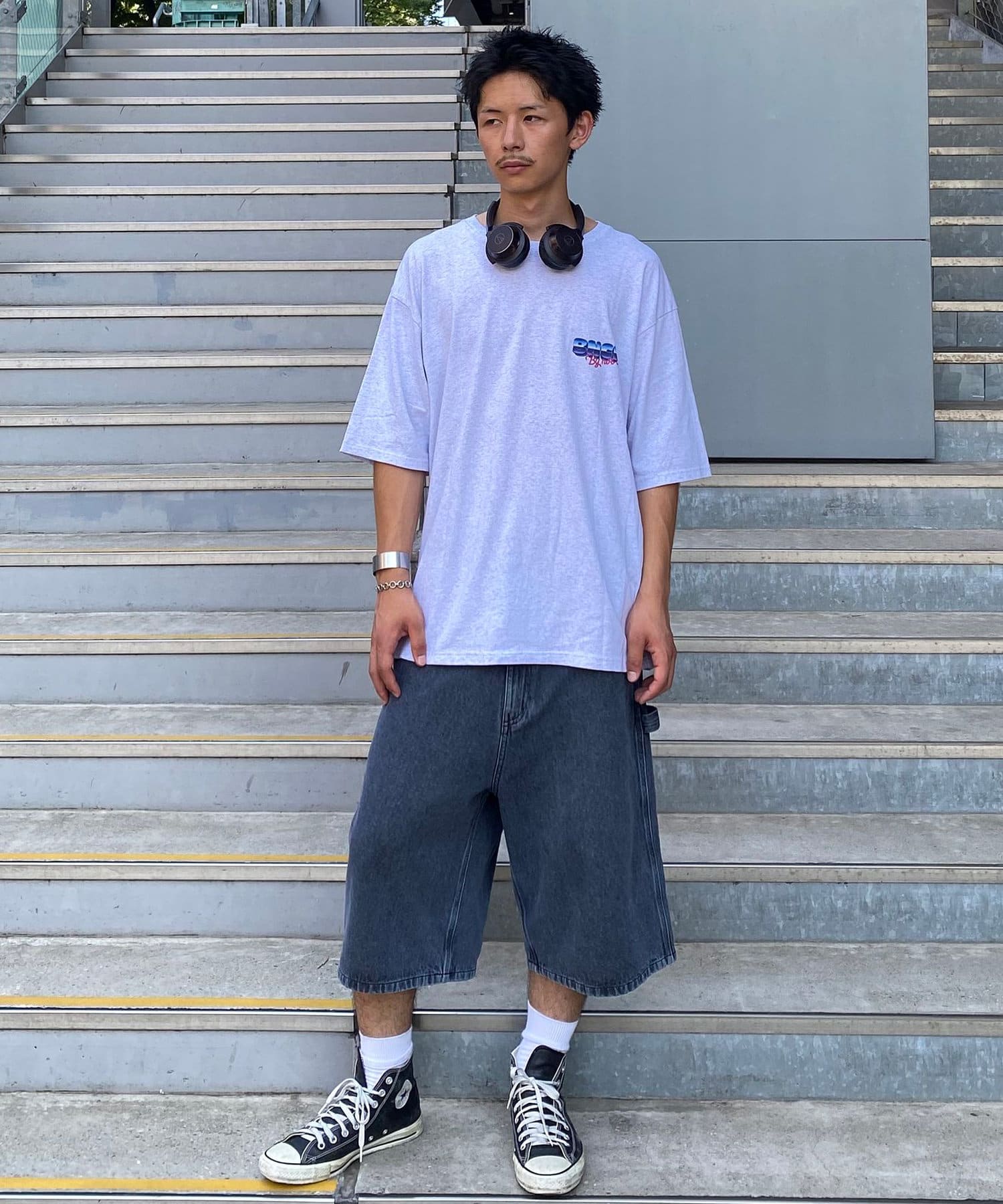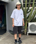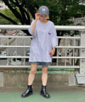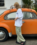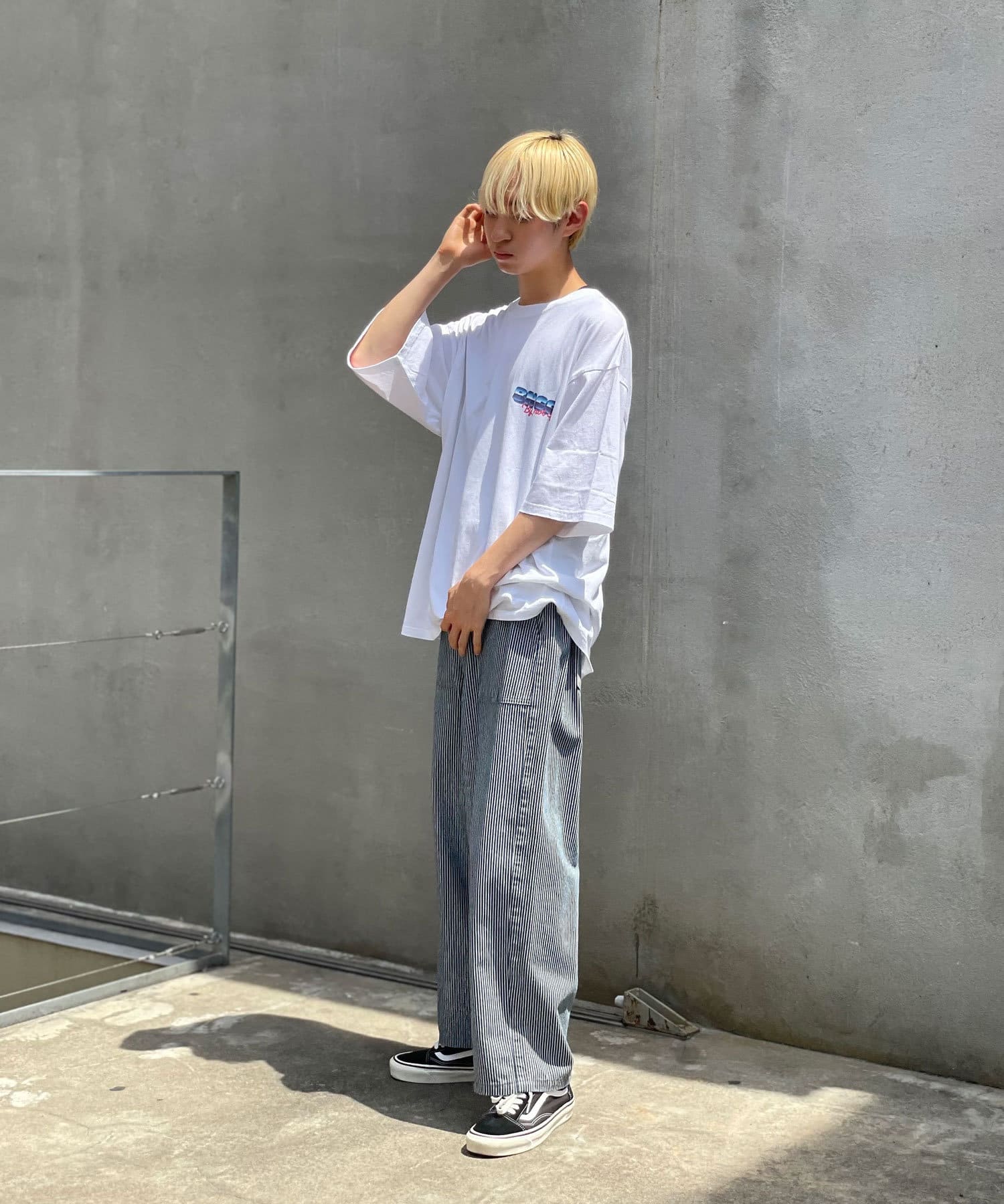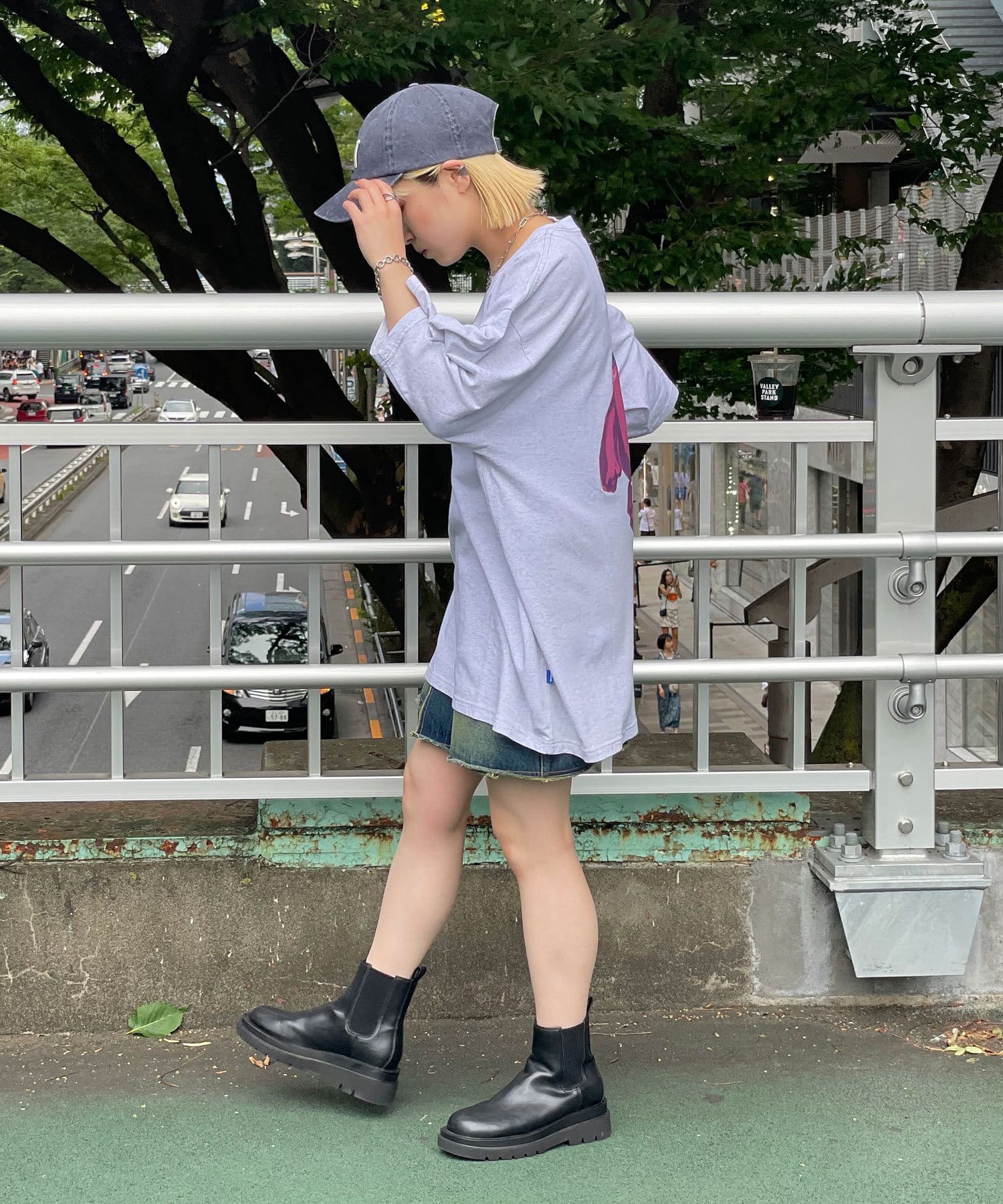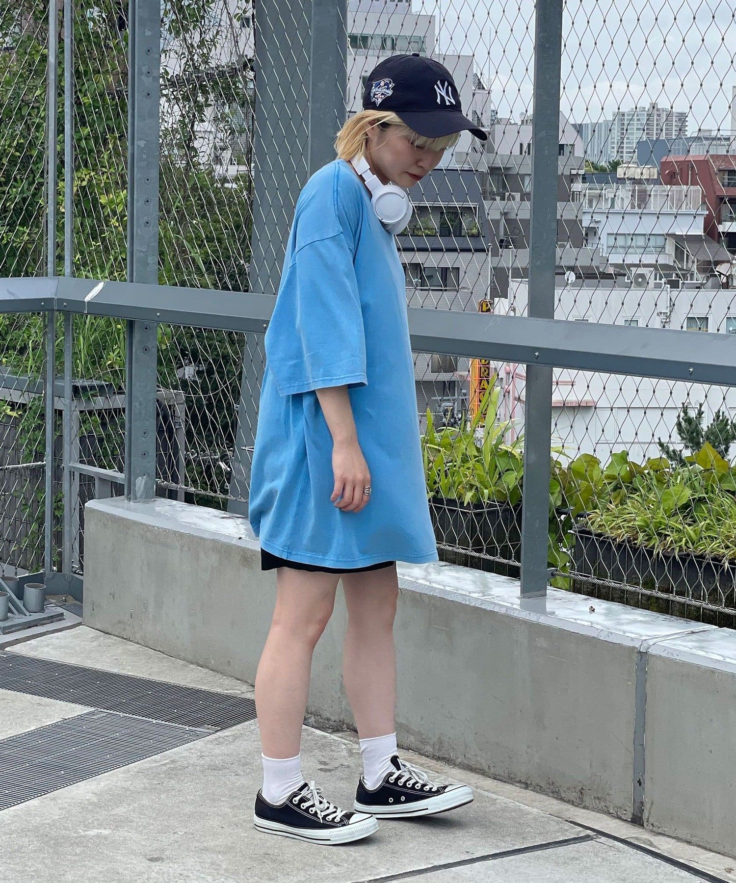 オーバーサイズで肘あたりまで袖があるサイズ感です。カーゴパンツやトラックパンツ合わせがおすすめです◎足元はサンダルで抜け感を出して◎