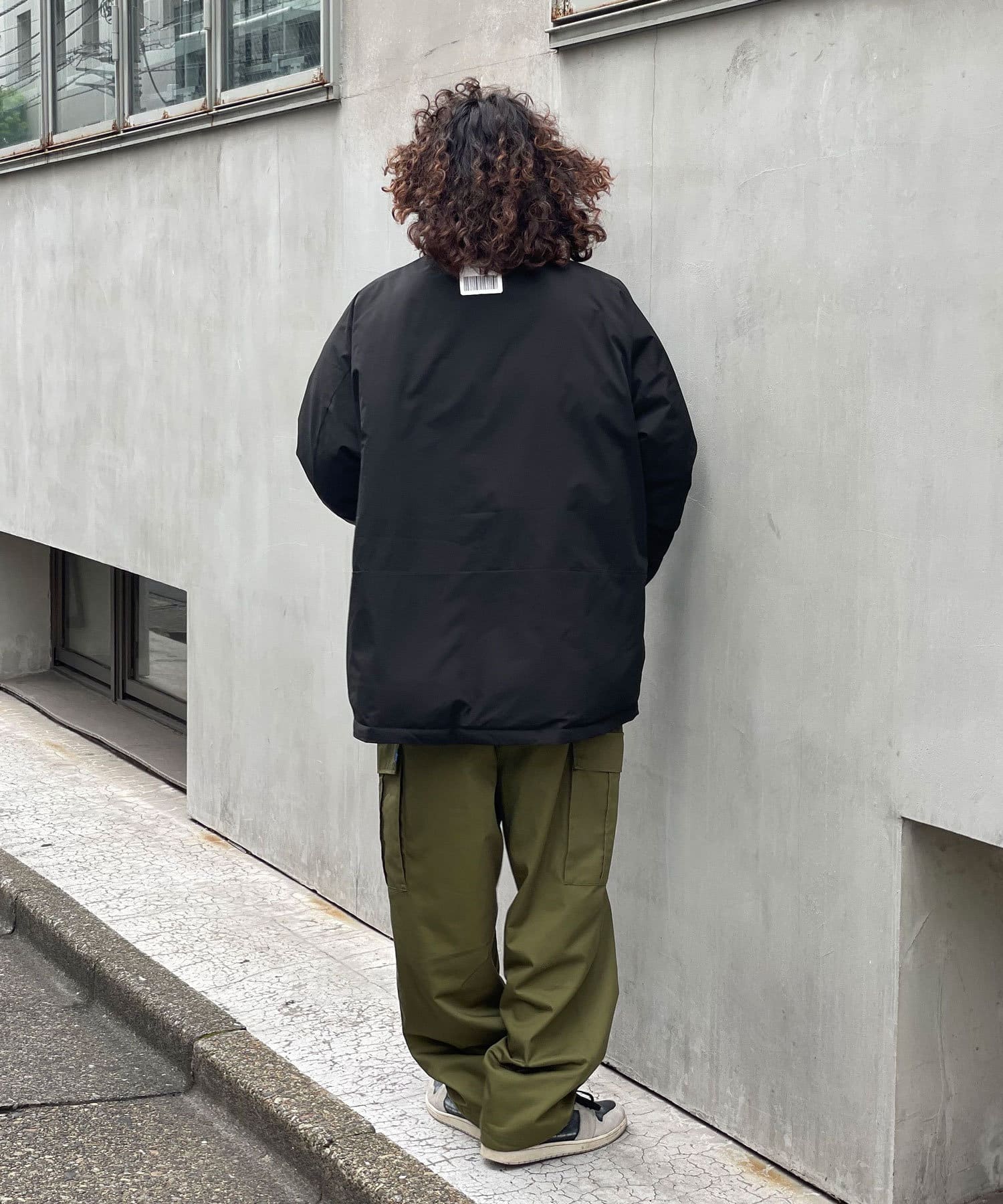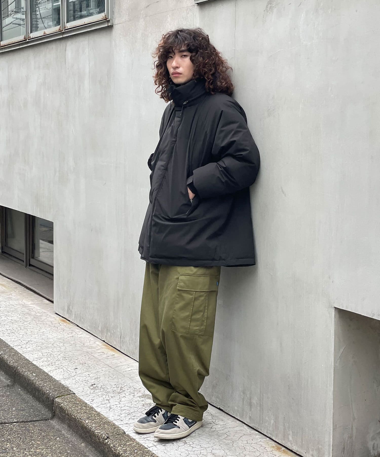 まずはプライス。このプライスで見た目ちゃんとしてる。イイ感じの光沢感あって安見えナシ。シルエットもユルめでちょうど良し。裾はドロスト仕様もなお良し!