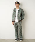 同素材のジャケットを合わせて、セットアップで着ると一段とシャレた印象になります。