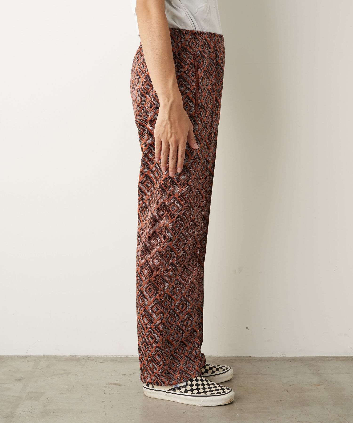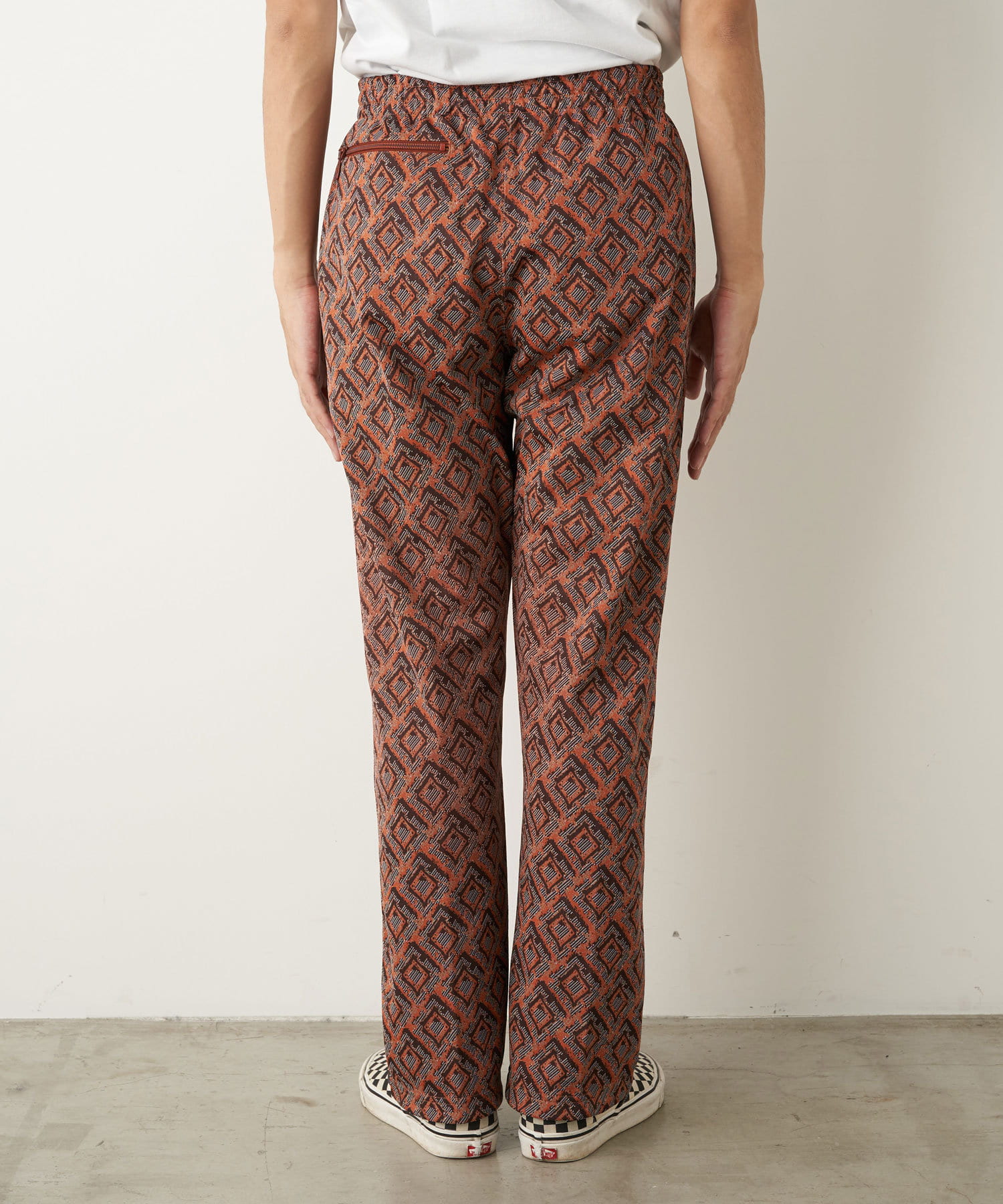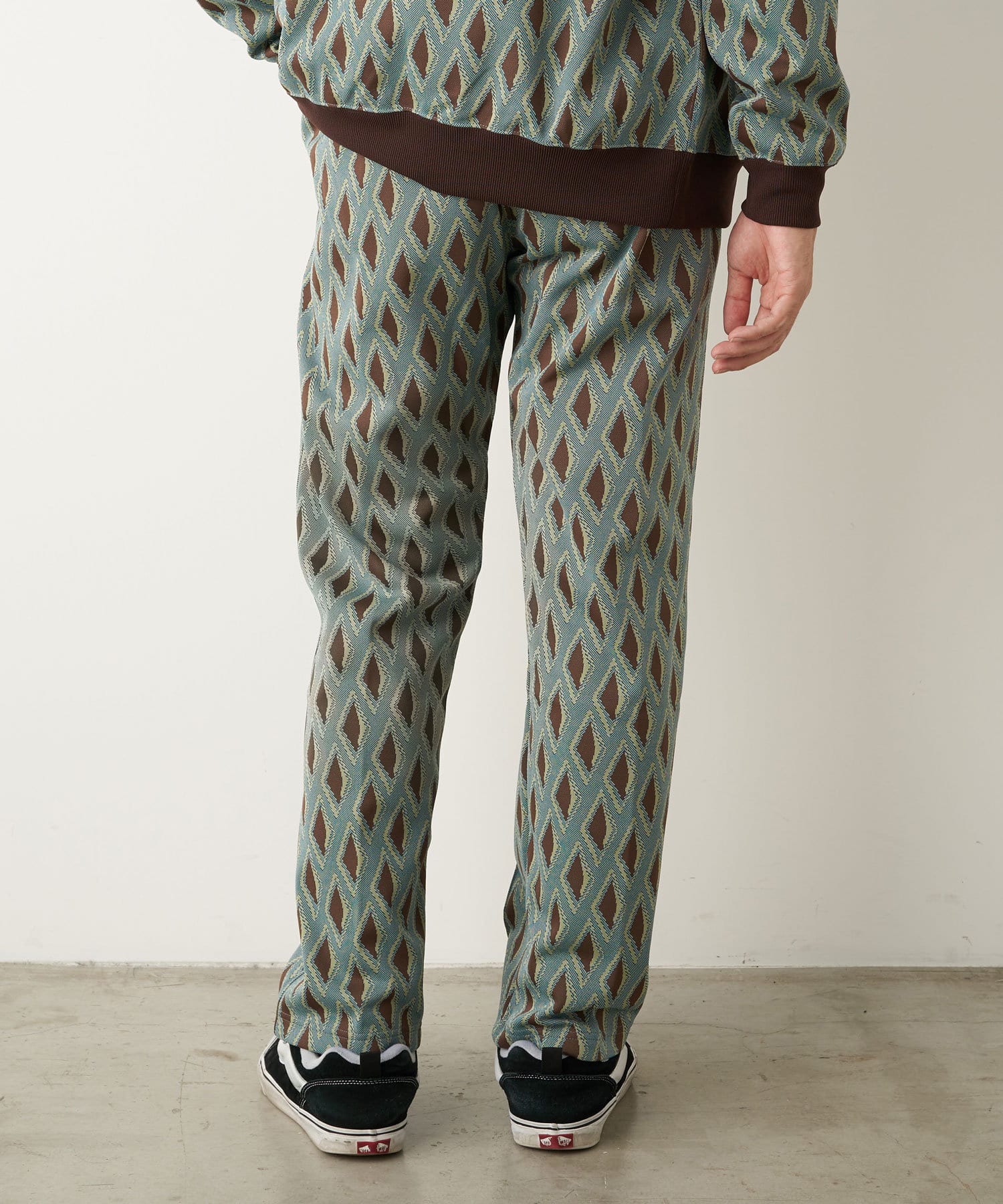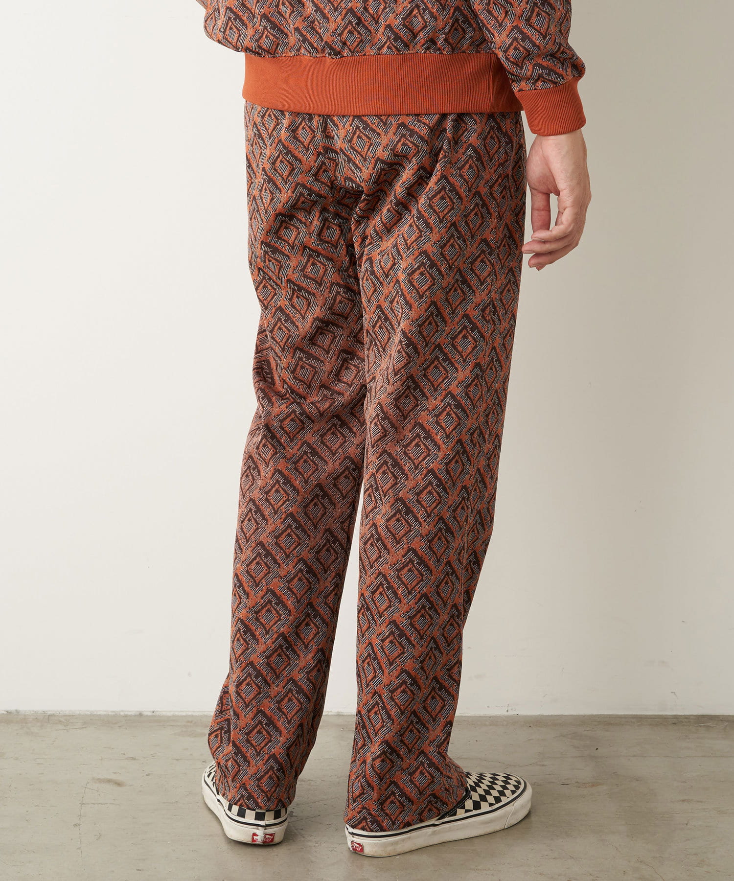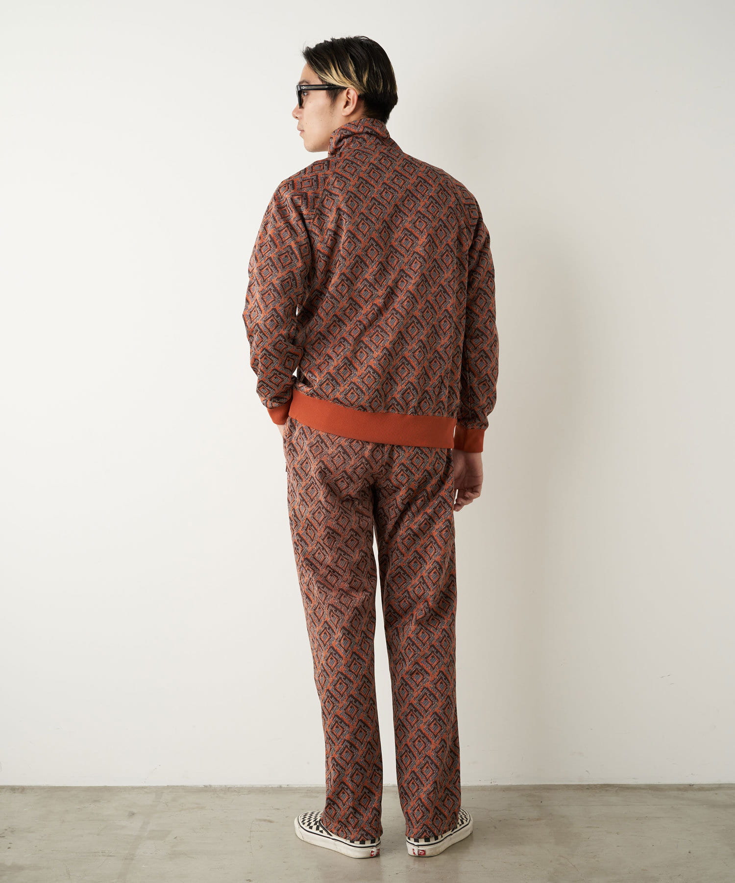 今季のコレクションのためにオリジナルでデザインされたポリエステルジャカード素材で制作されたトラックパンツ。