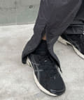 両サイドと股下のファスナーにより、急な雨でも靴を履いたままで素早く着脱が可能。