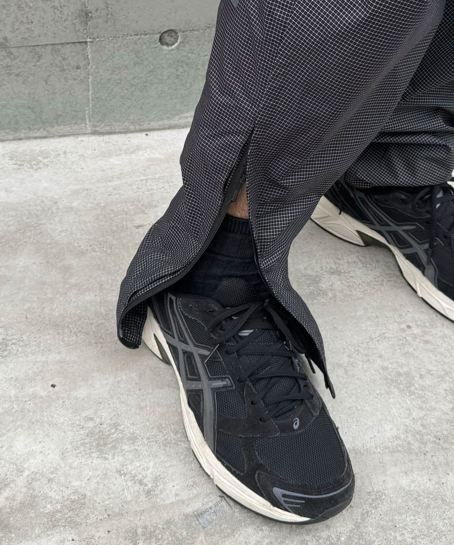 ナイロンジャケットを合わせたスタイリングはシティ感たっぷりでトレンド感のある着こなしに。