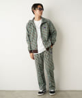 同素材のトラックパンツを合わせて、セットアップで着ると一段とシャレた印象になります。