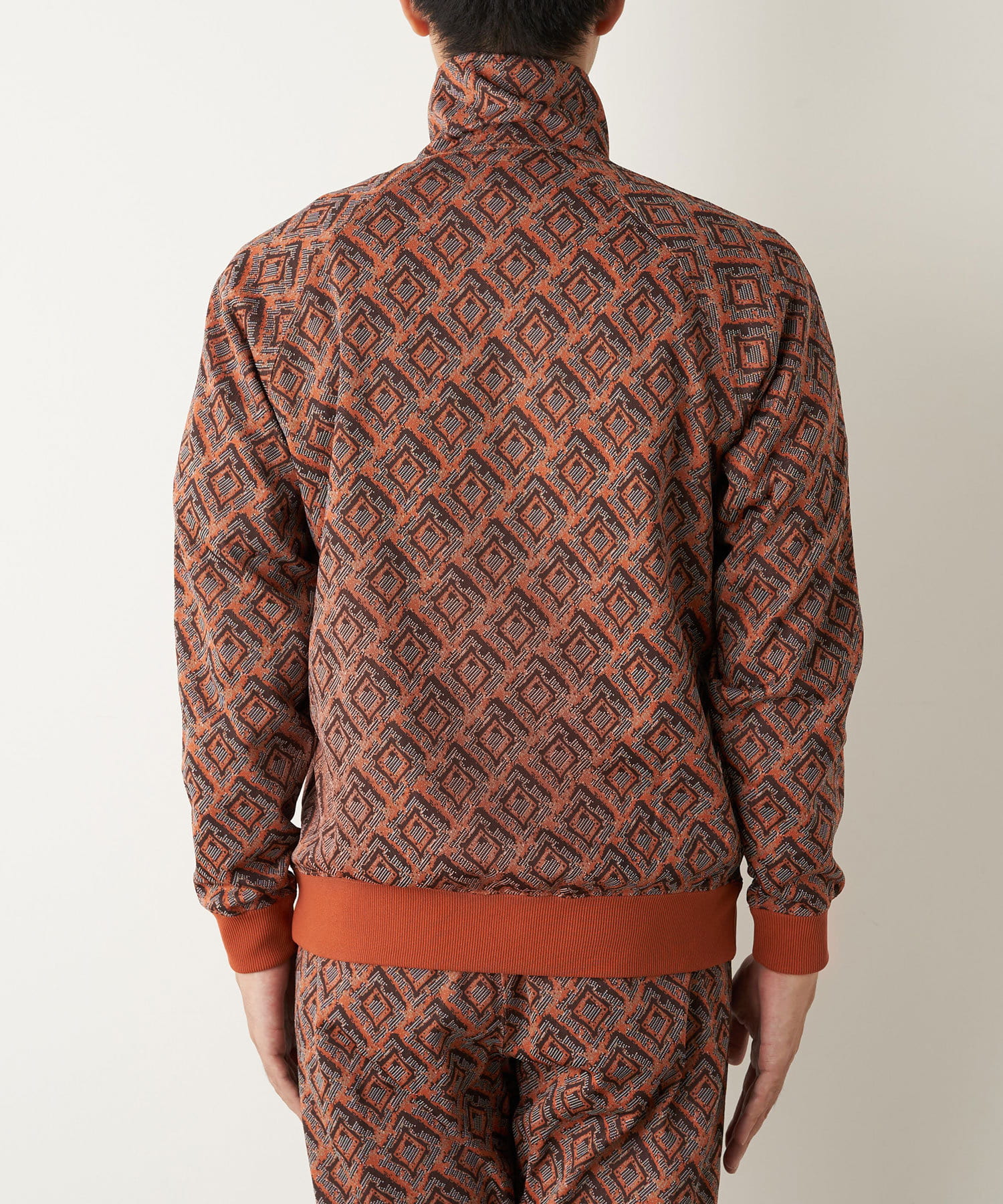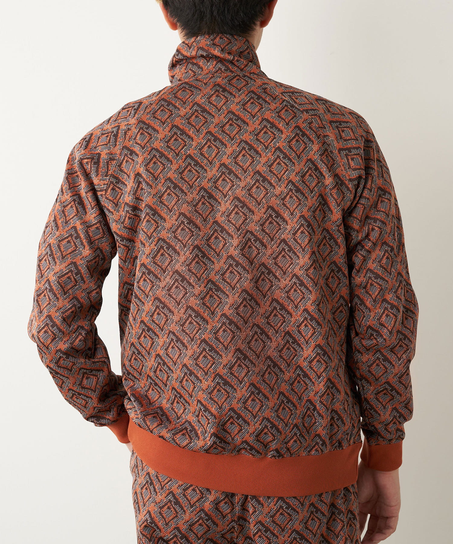 今季のコレクションのためにオリジナルでデザインされたポリエステルジャカード素材で制作されたトラックジャケット。