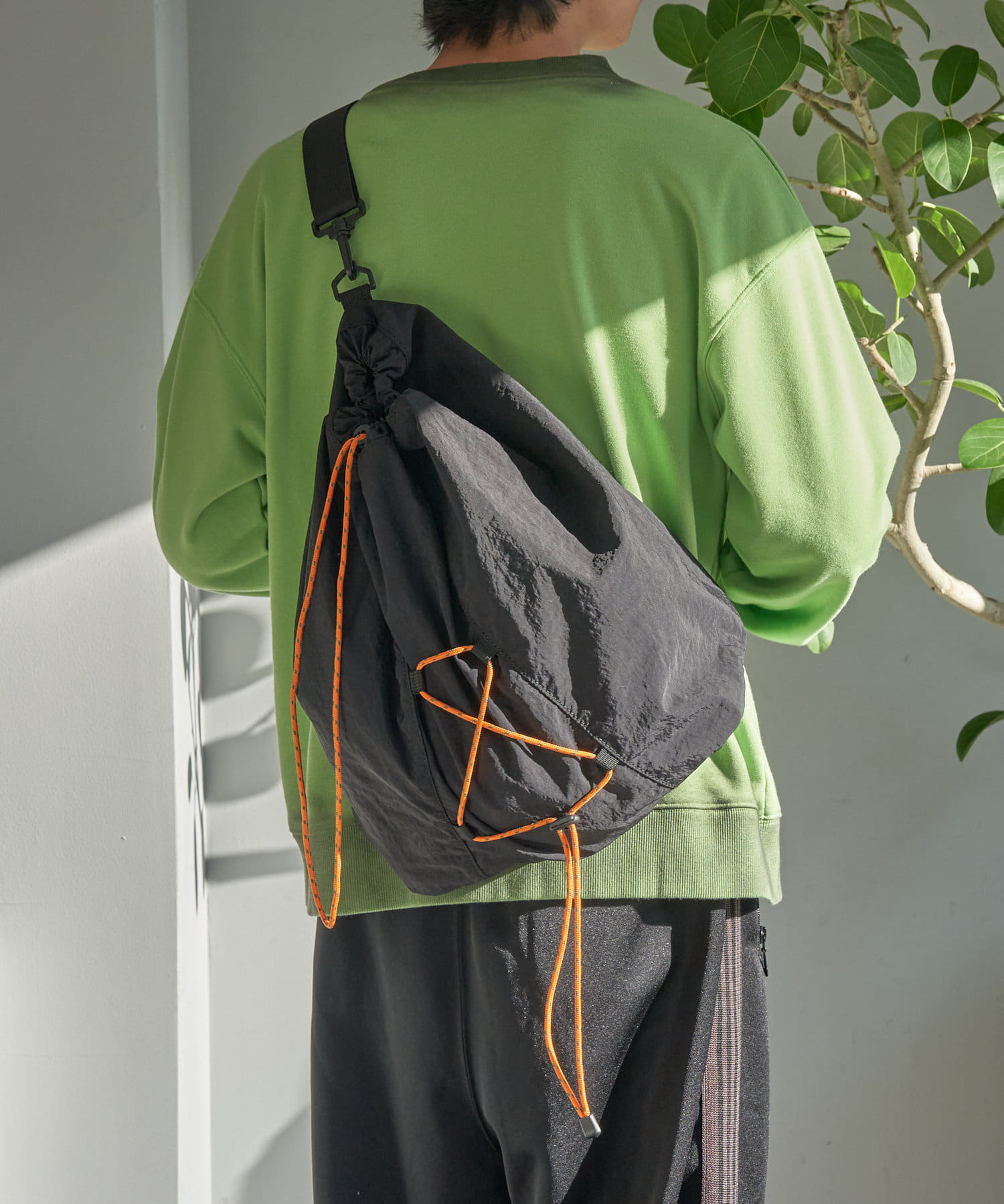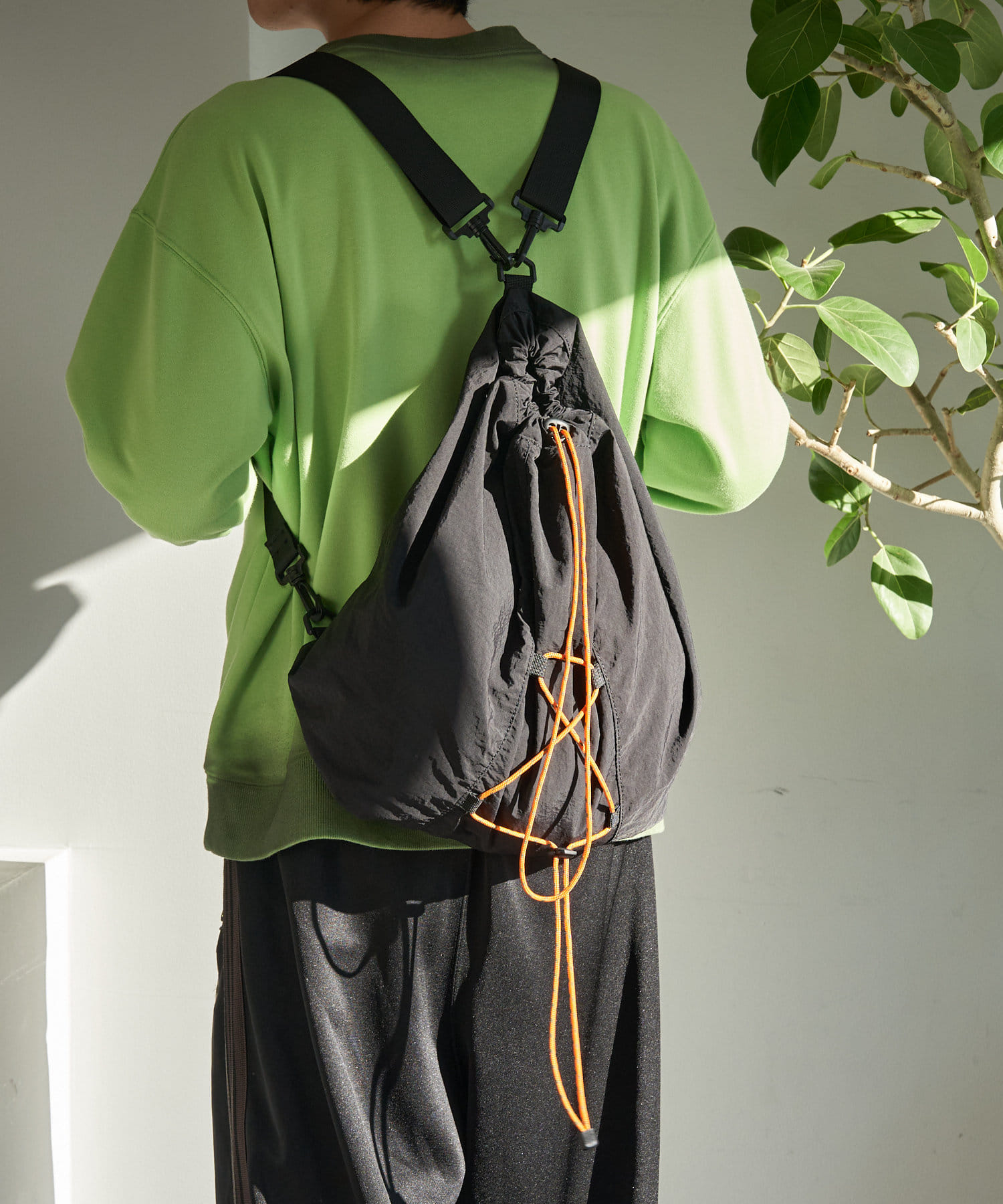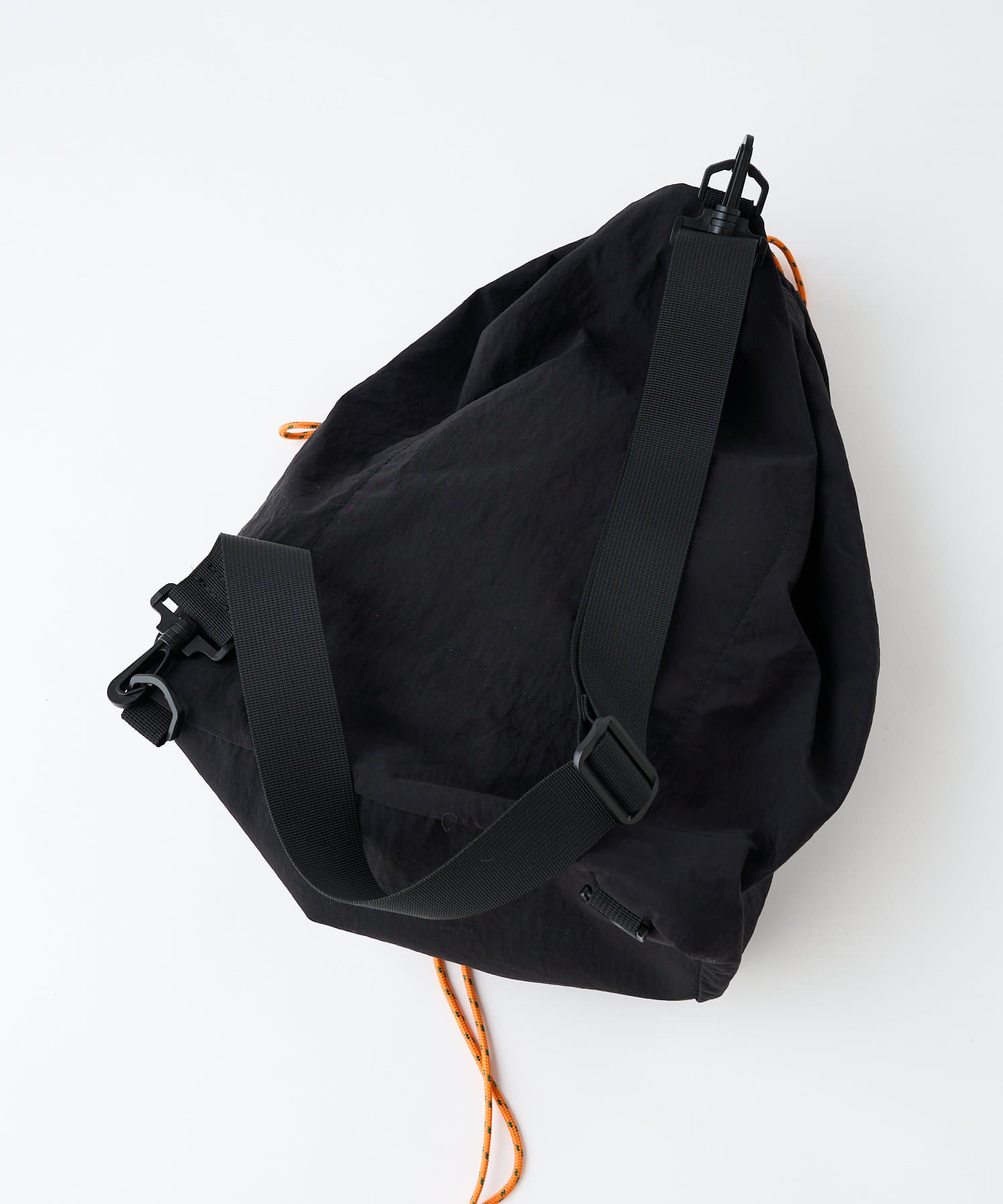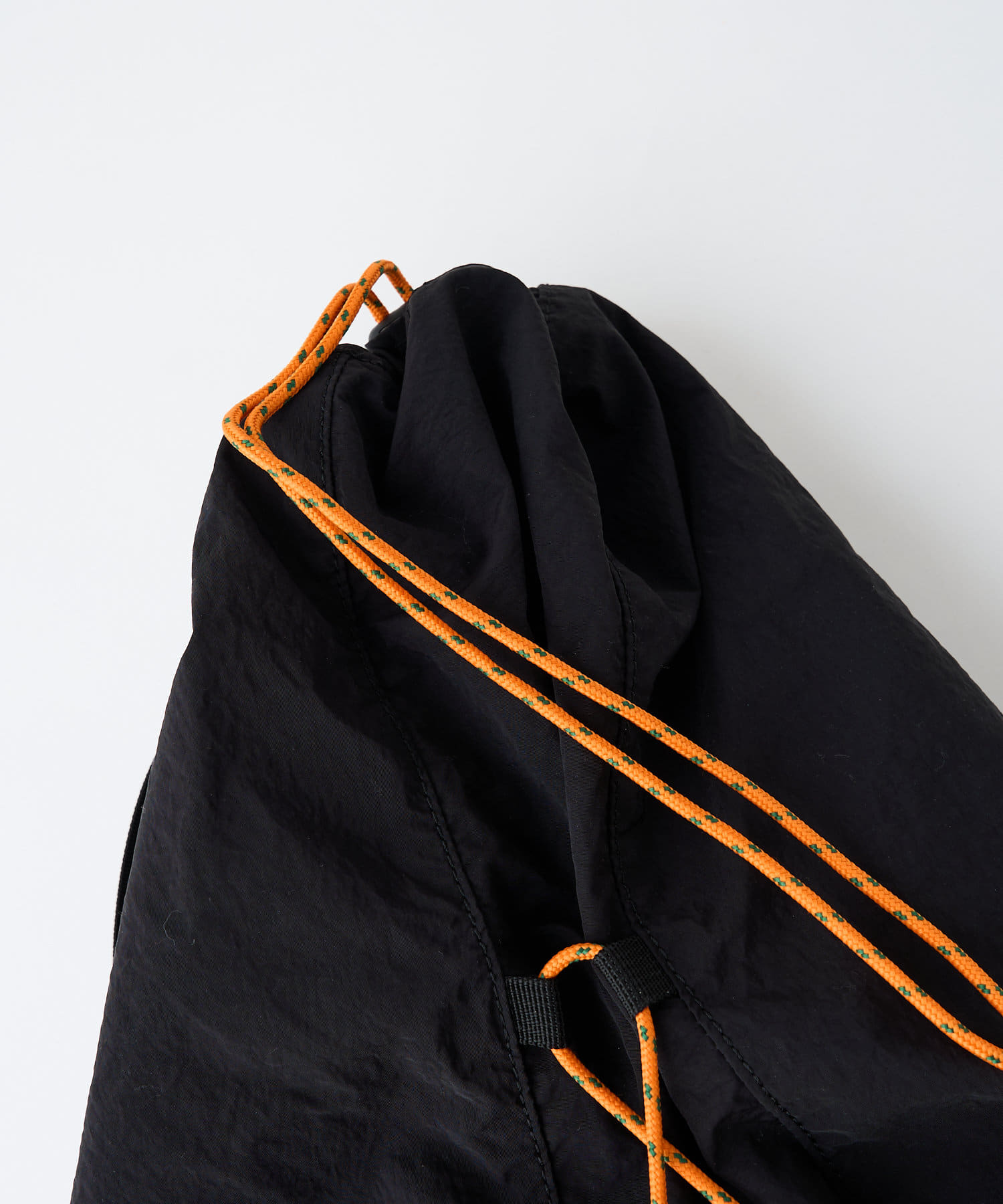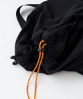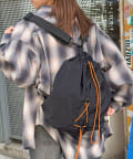 タフな素材で日常使いにピッタリなうえ、黒ベースに映えるオレンジの紐がデザインのアクセントに。