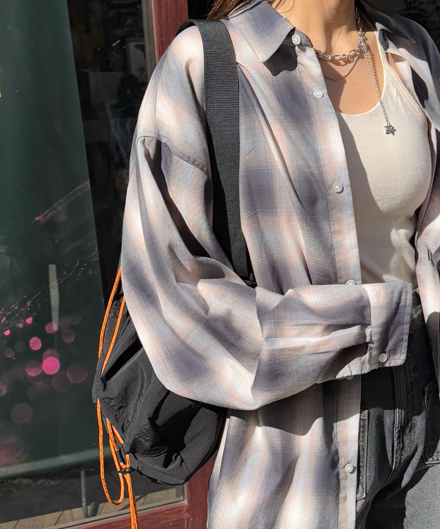 ストリートカジュアルならビッグシルエットのスウェットやワイドパンツに合わせて、オレンジの紐をアクセントに。