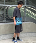 ・生地は、80-90年代のアーカイブで実在するチカーノ柄を、インクジェットプリントで細部のラインまで再現しています。