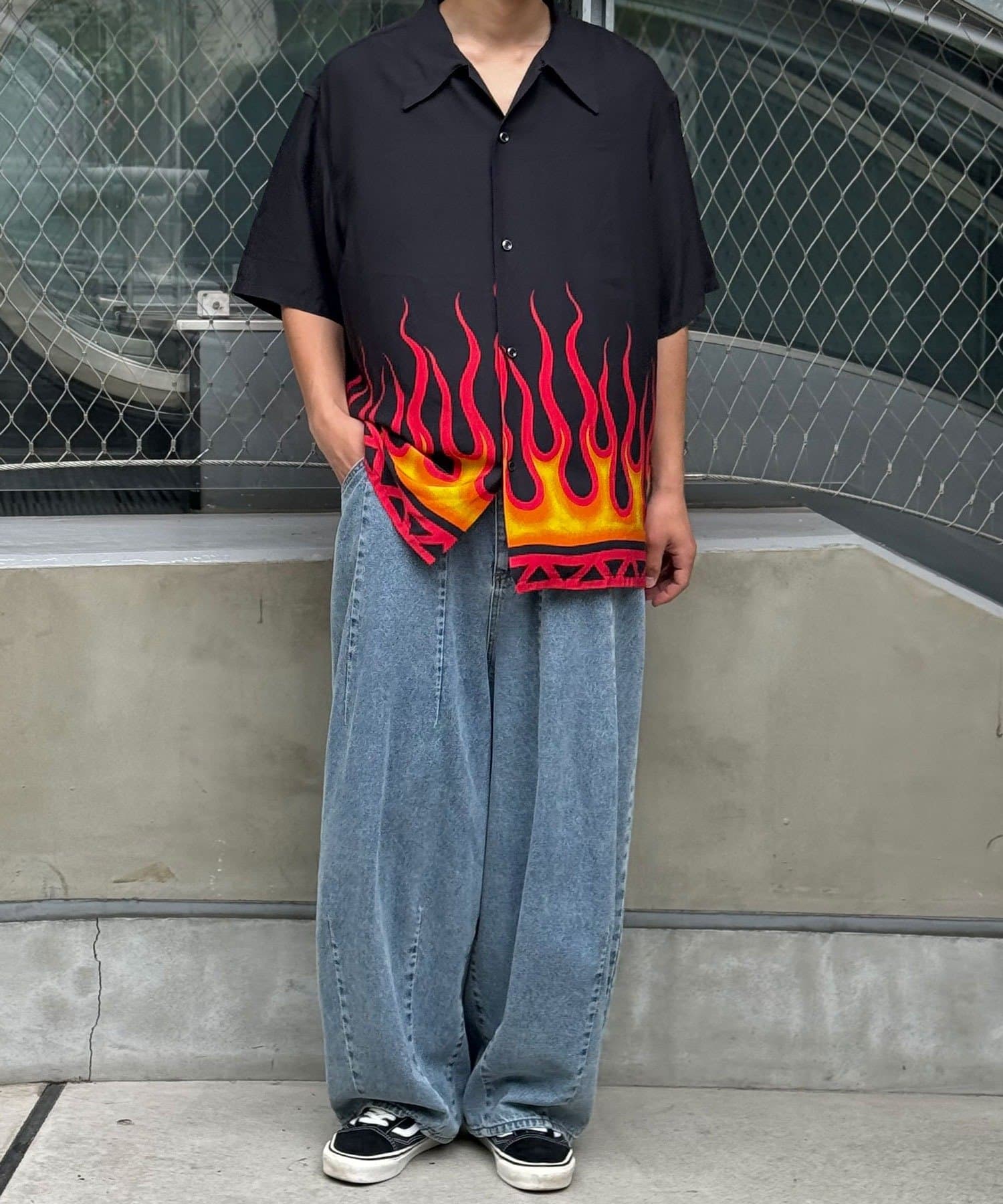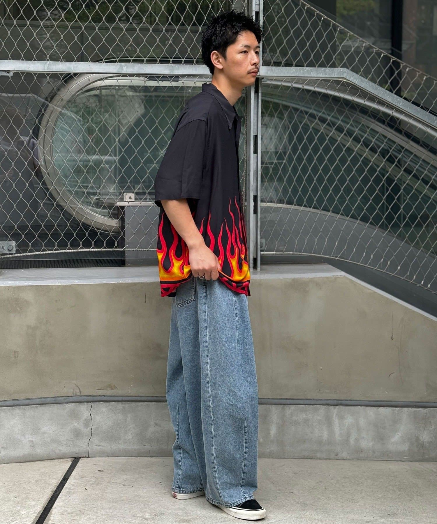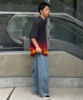 インパクトのある柄なので、ボトムスはシンプルにデニム合わせが◎
