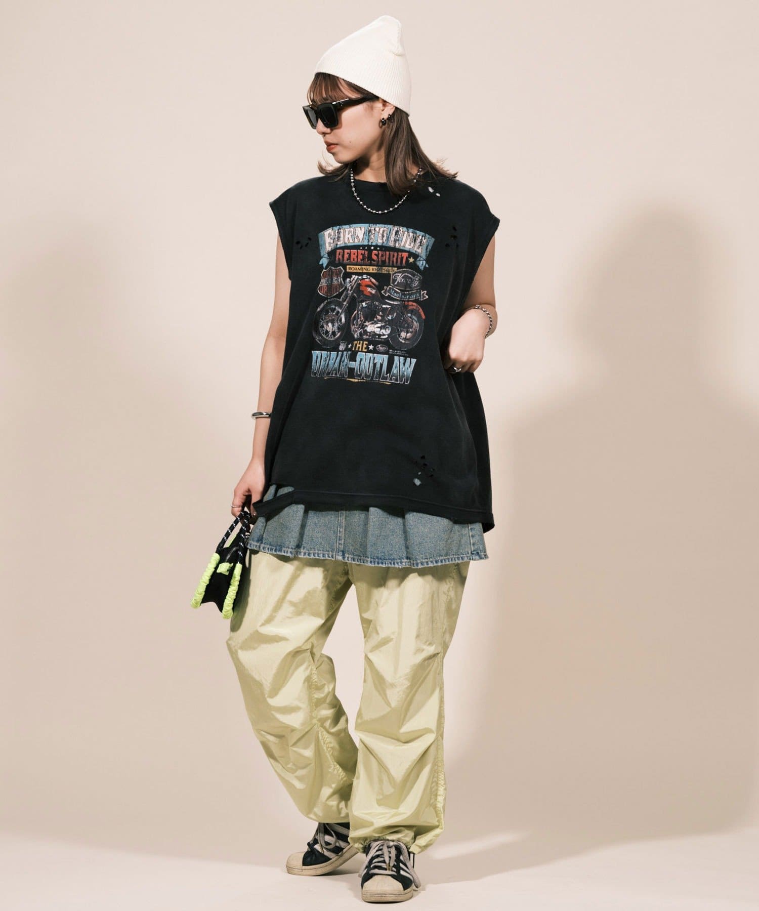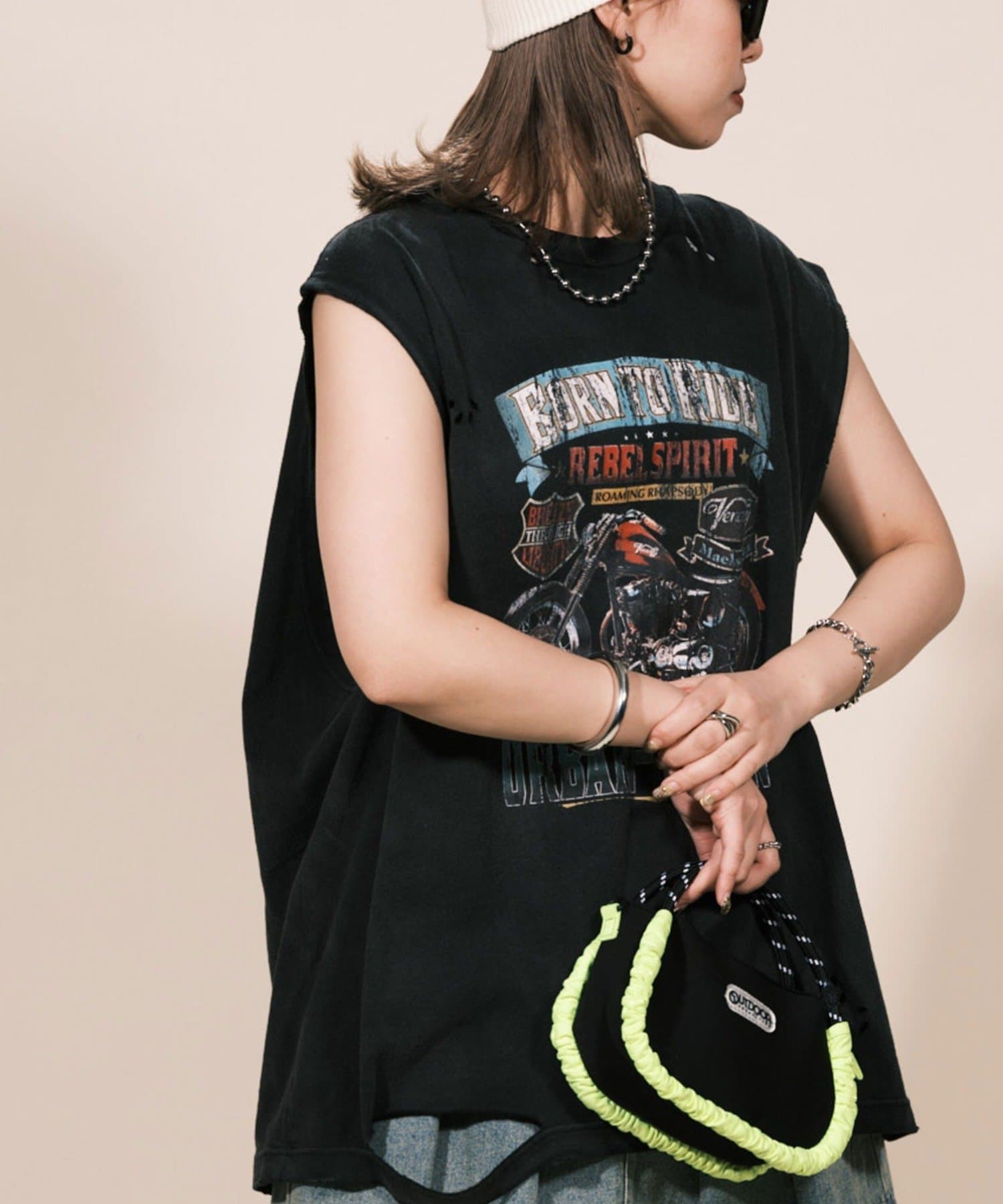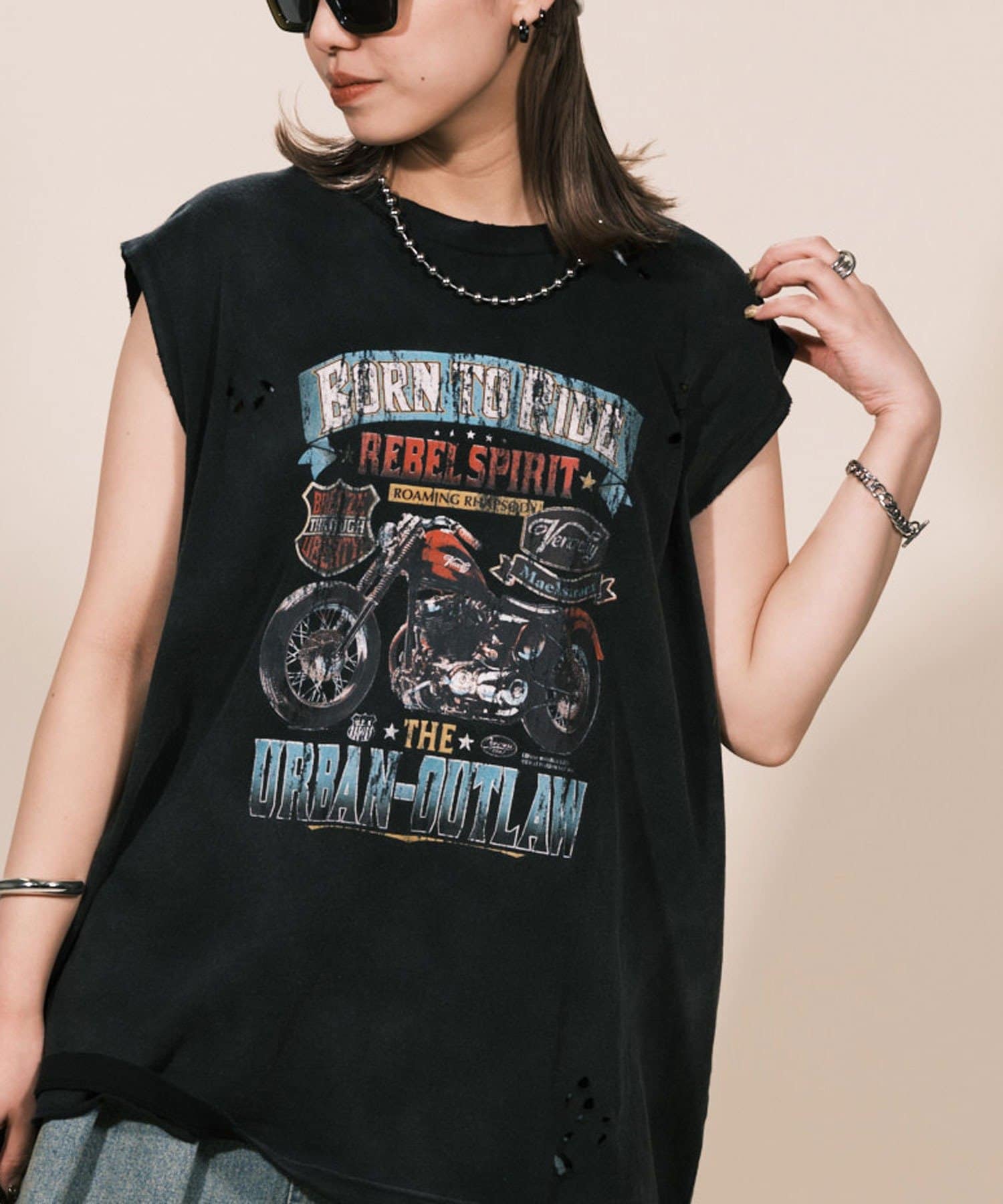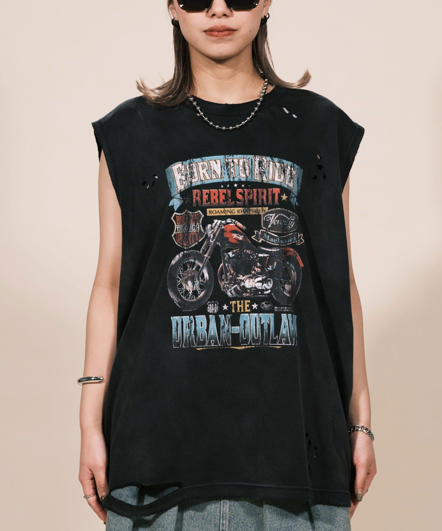 【RePRODUCTION LABEL / リプロダクションレーベル】ブラックバイカー風ノースリーブTシャツ