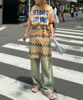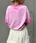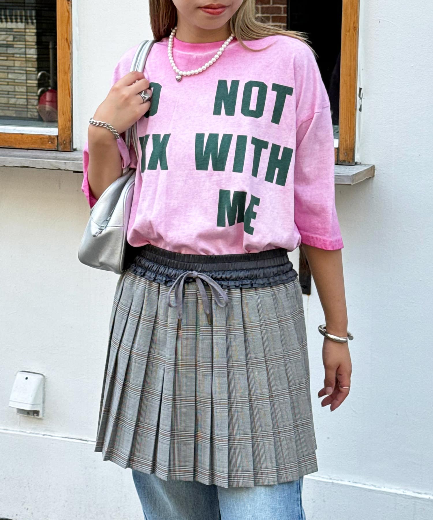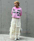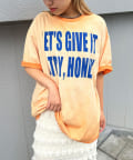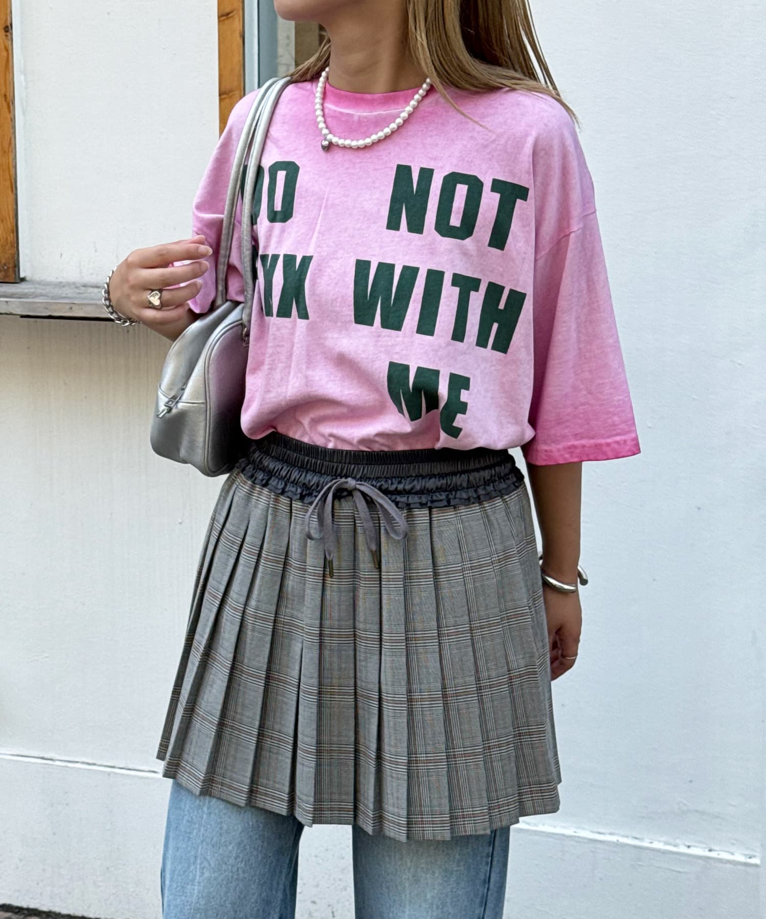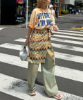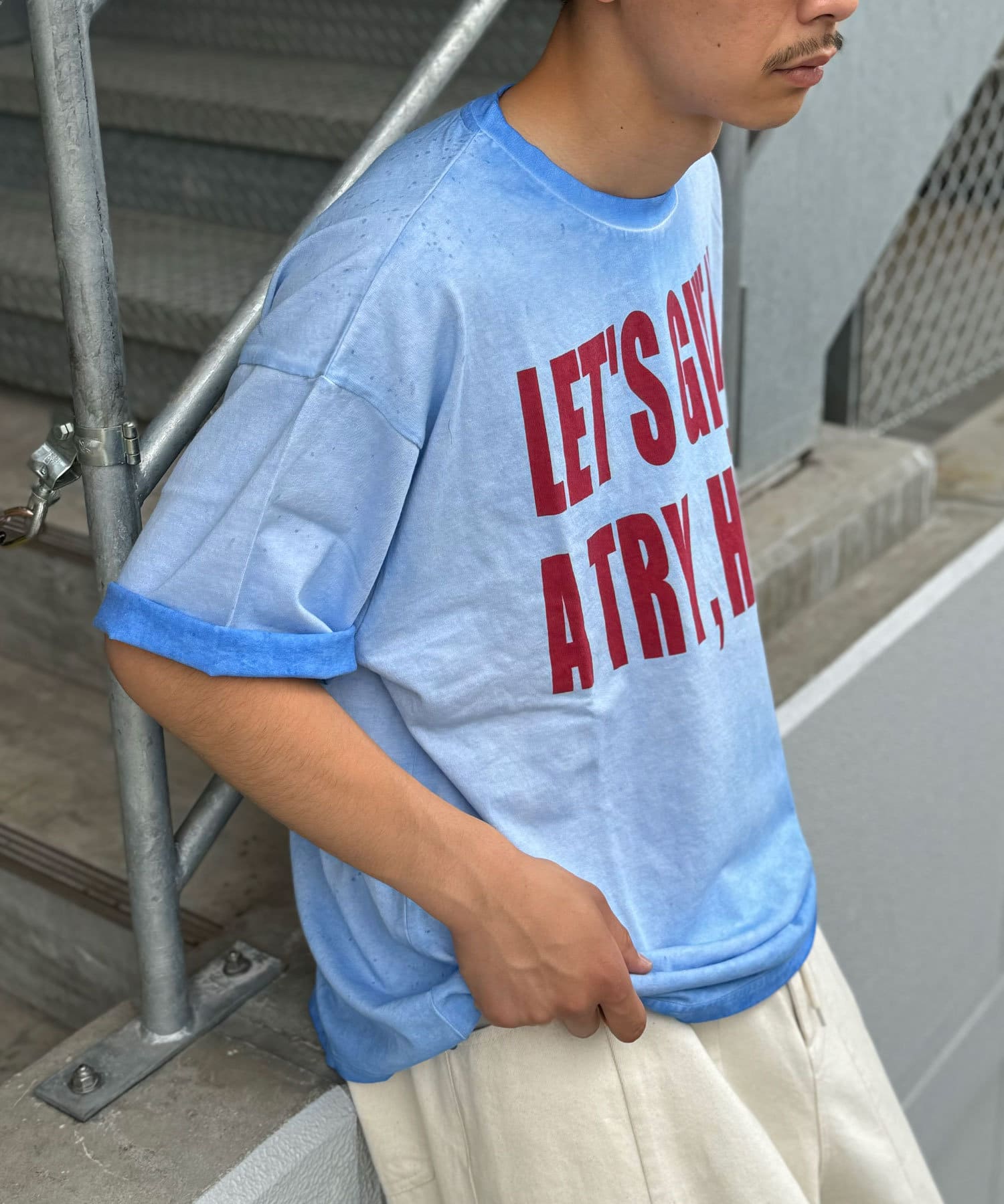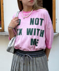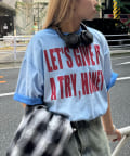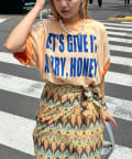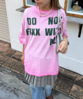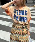 目を惹く配色カラーのメッセージプリントが1枚で様になるアイテムです。