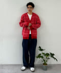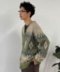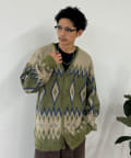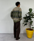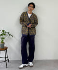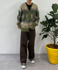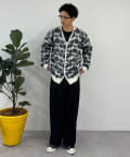 シンプルなタートルネックやTシャツをレイヤードして、モヘアカーディガンの柄や発色を際立たせるスタイルがおすすめです。