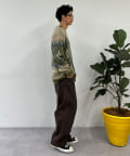スリムなジーンズやテーパードパンツのダメージデニムやコーデュロイパンツなど、質感のあるボトムスも相性抜群。