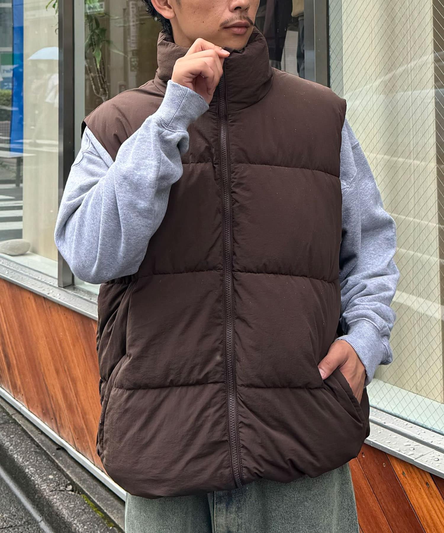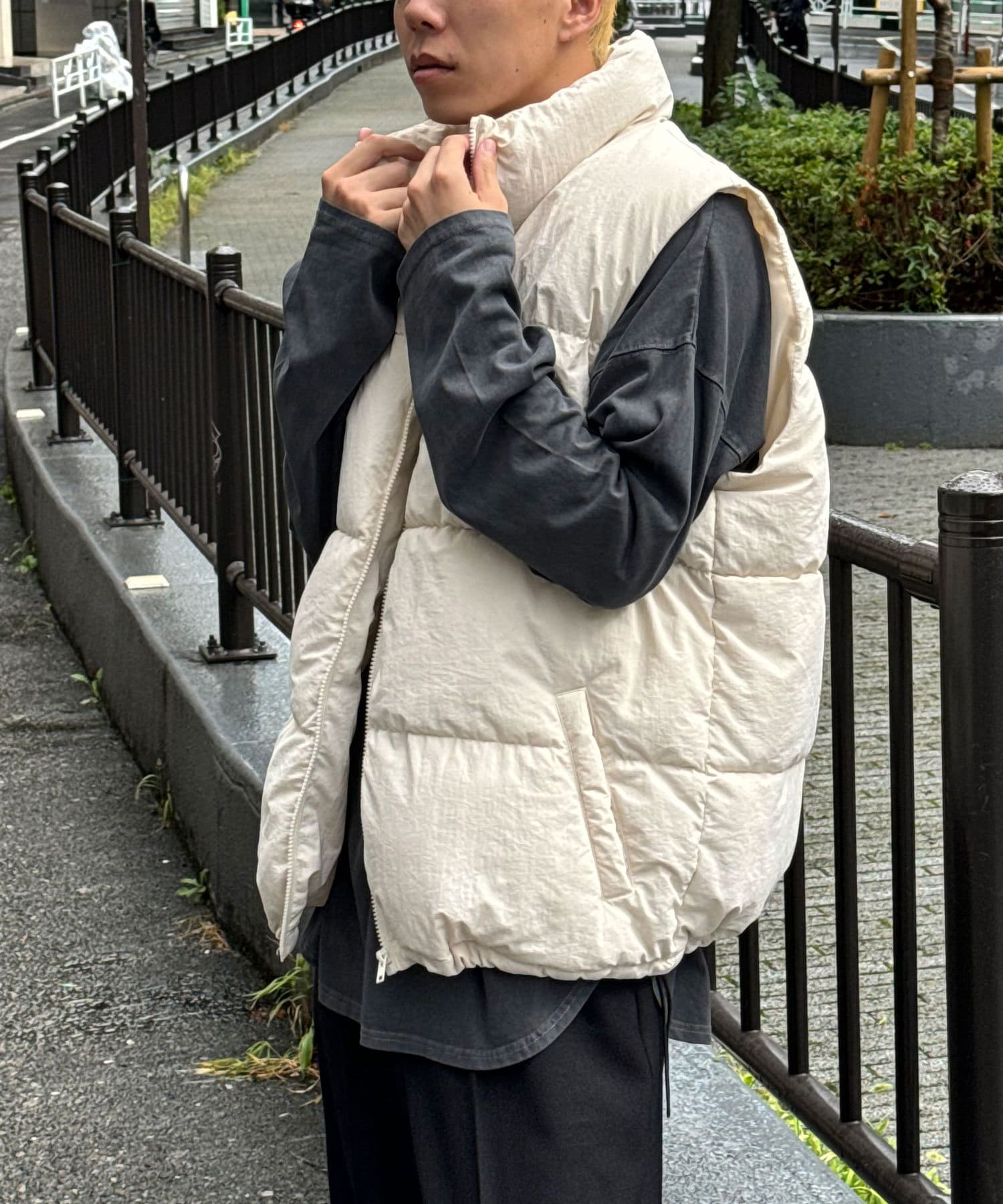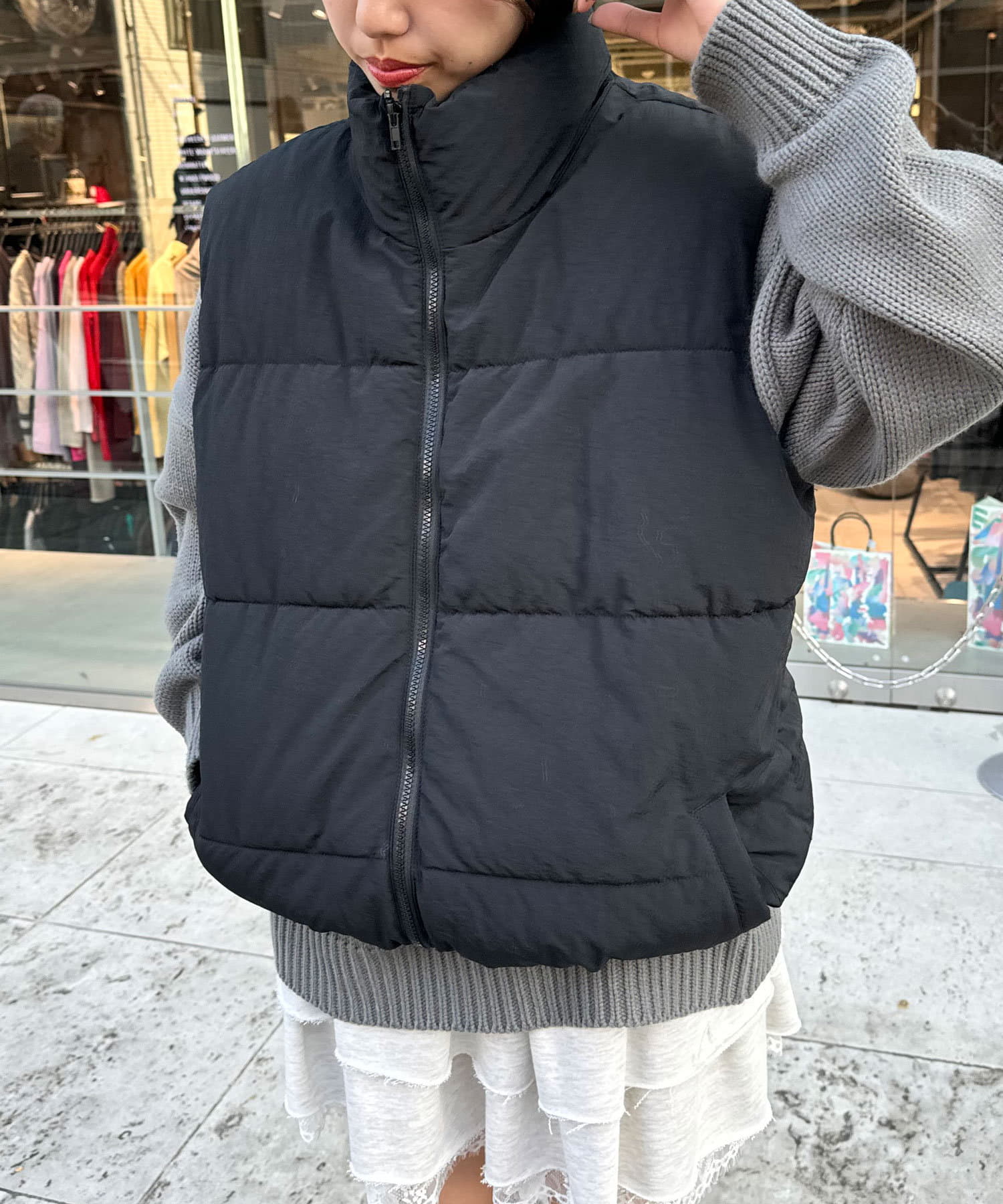 ナイロンワッシャー中綿スタンドカラーベスト