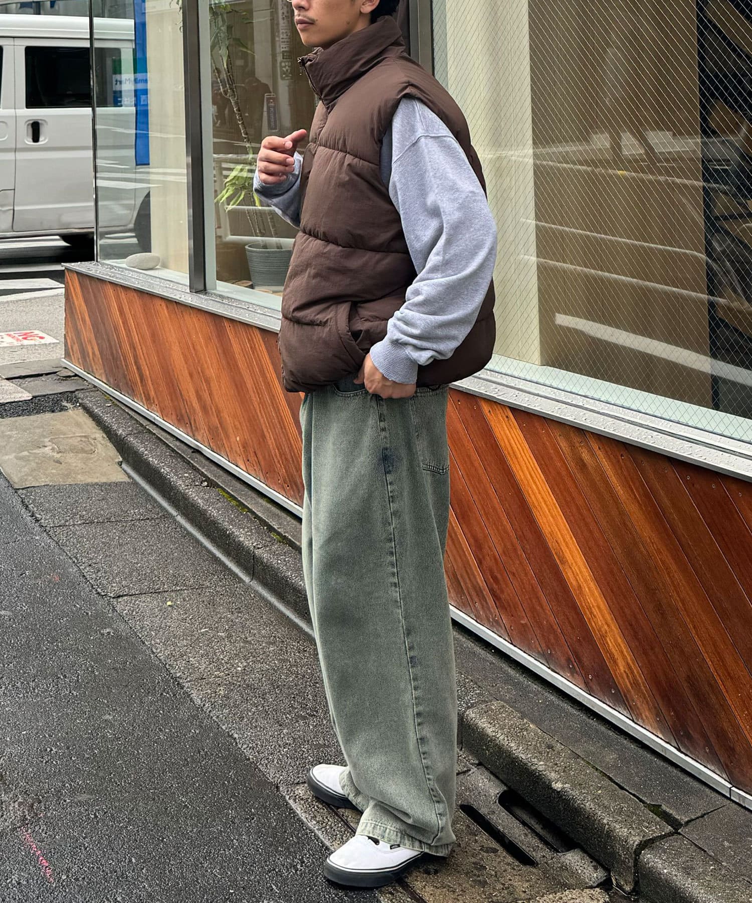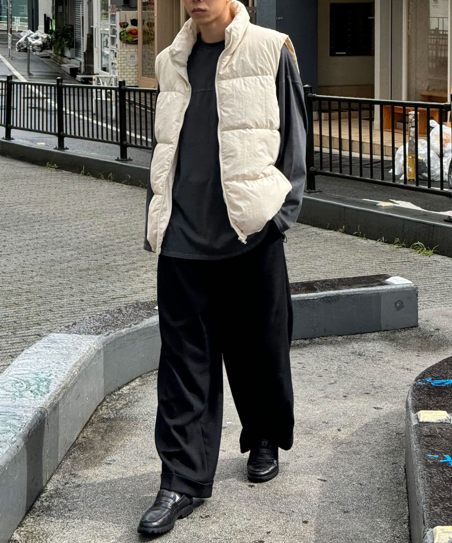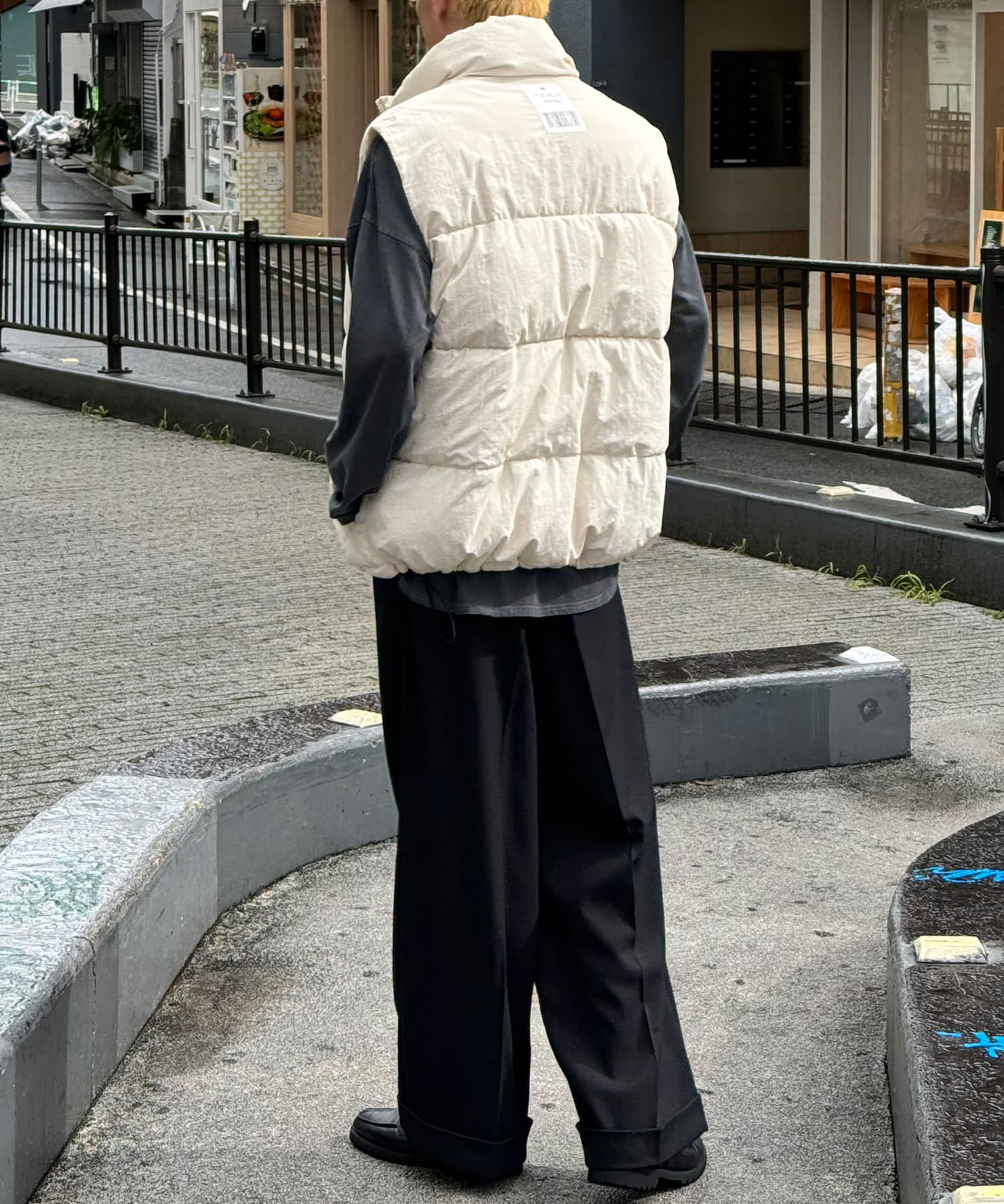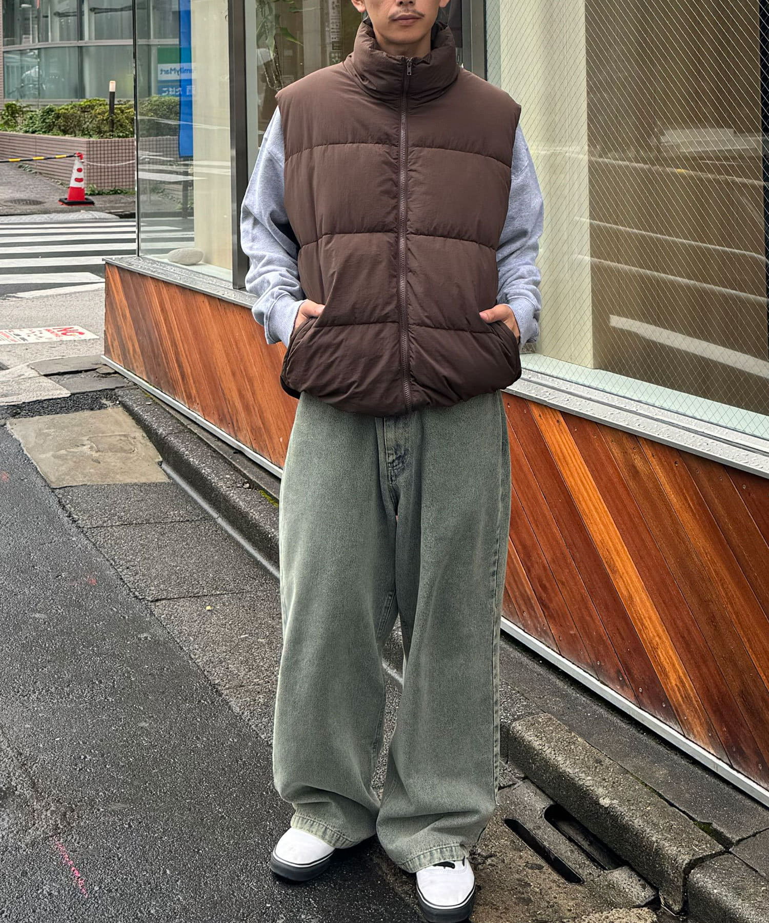 存在感のあるアウターなのでボトムスはシンプルなデニムパンツやカーゴパンツ合わせがおすすめです。