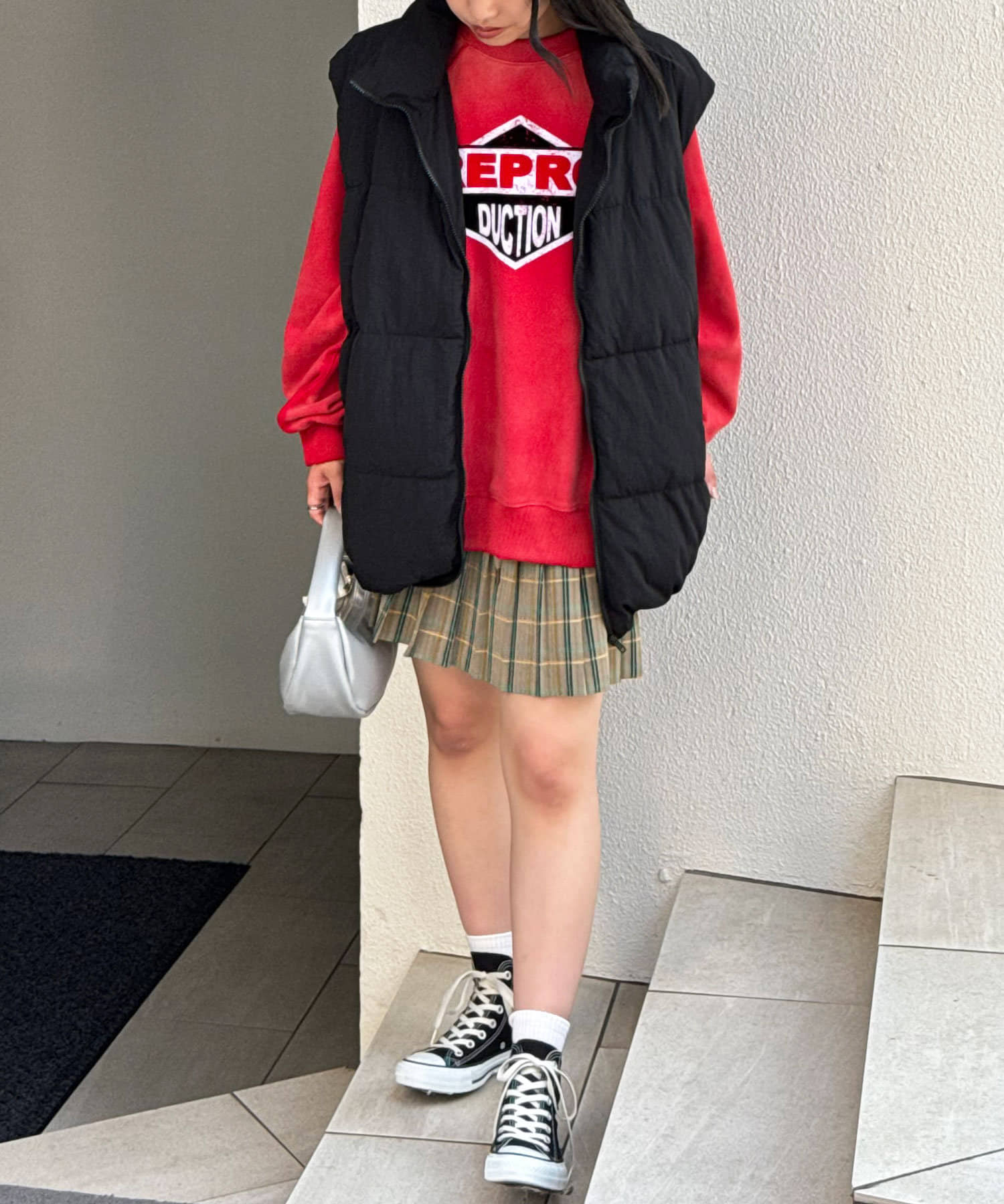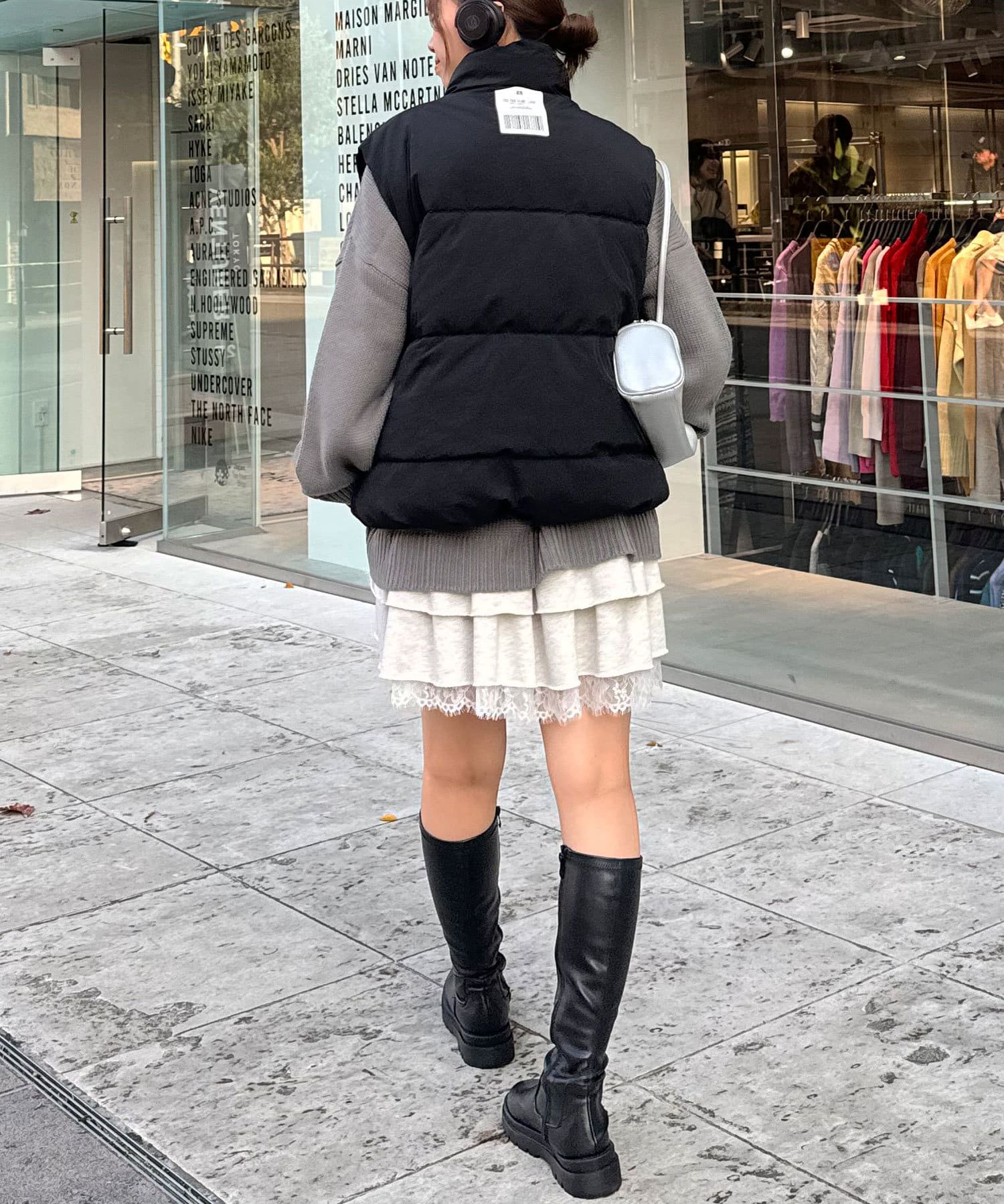 レディースはミニ丈ボトムと合わせた韓国っぽいスタイリングと、スカートと合わせた甘辛ミックスがおすすめです!