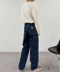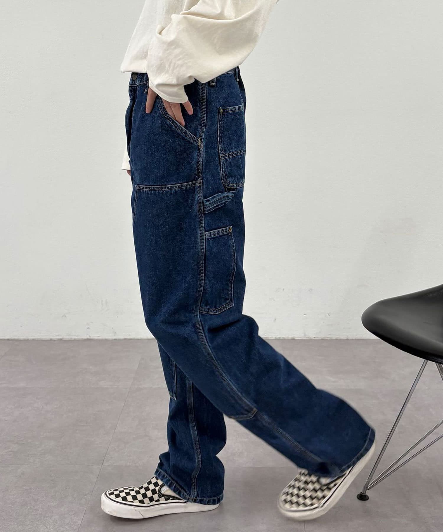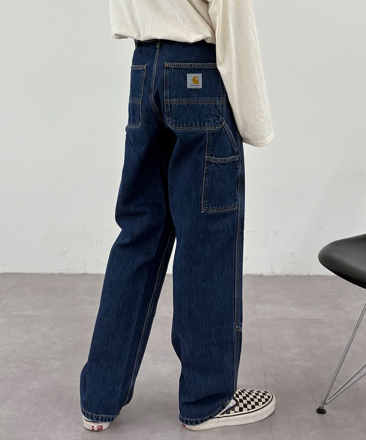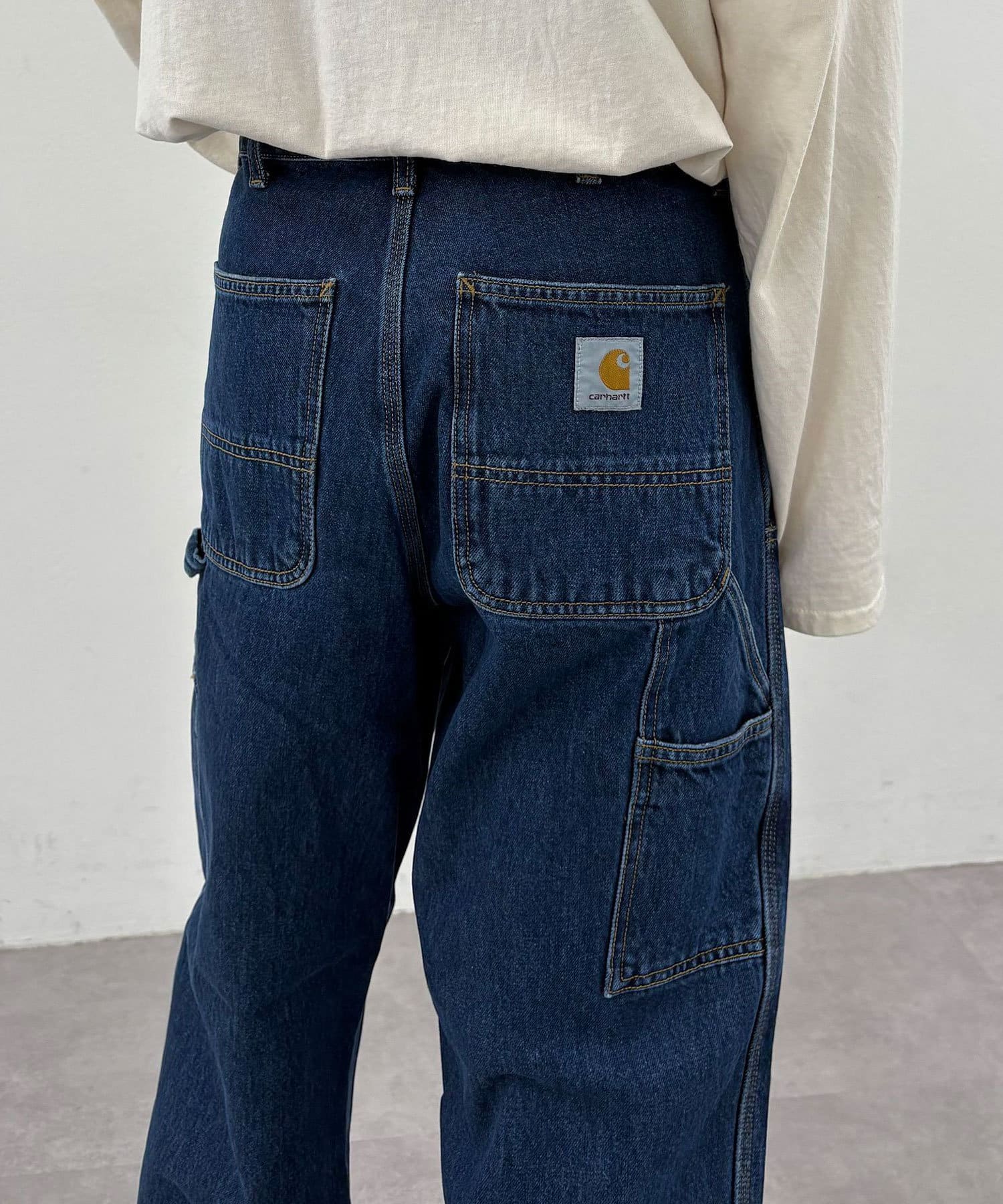 カーハートWIPが誇る代表的なアイテムと言っても過言ではないダブルニーパンツのデニムバージョンです。リサイズなどを施していない、昔ながらのシルエットの一本。タフな生地感と、ワイドなシルエットが特徴的で、今のトレンドに相応しいアイテムです。野暮ったくならない綺麗なシルエットが特徴で、必ず1本は持っておきたいマストアイテムです。ワークスタイルに忠実なディティールも魅力的です。