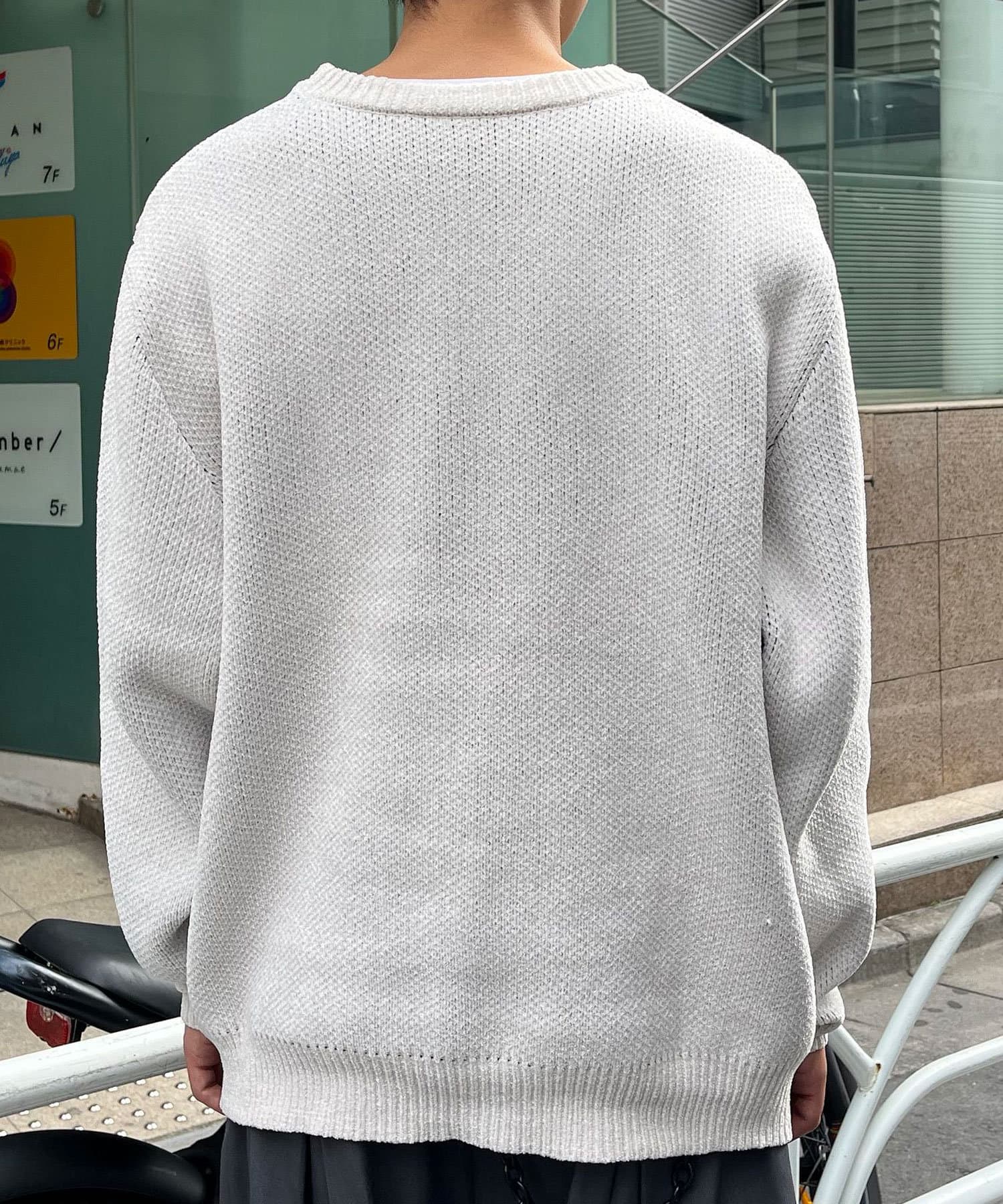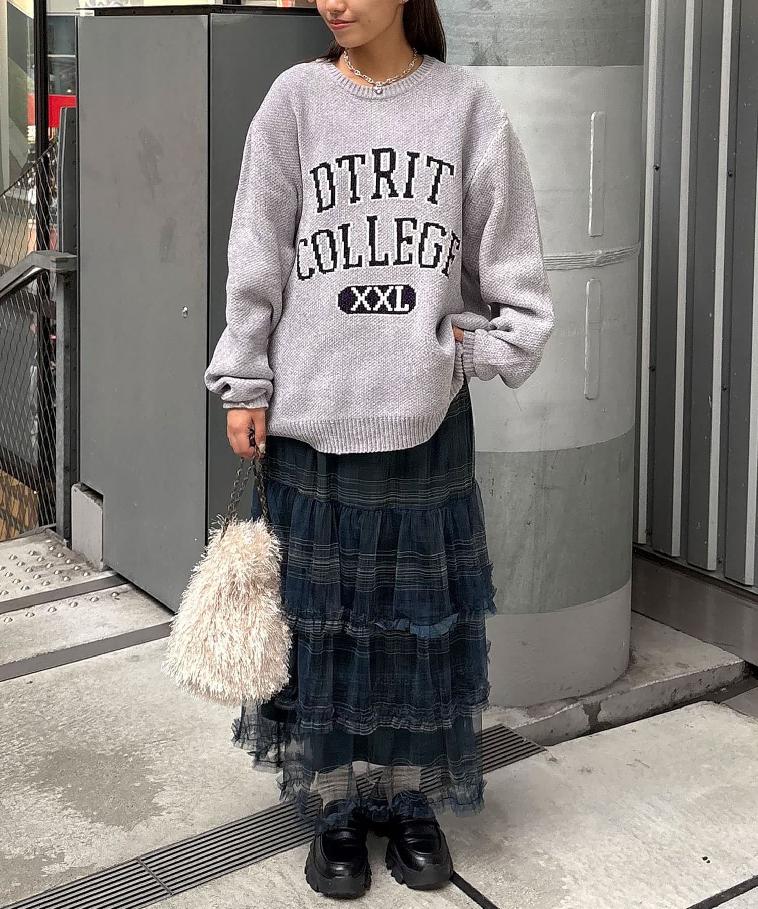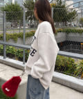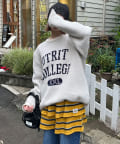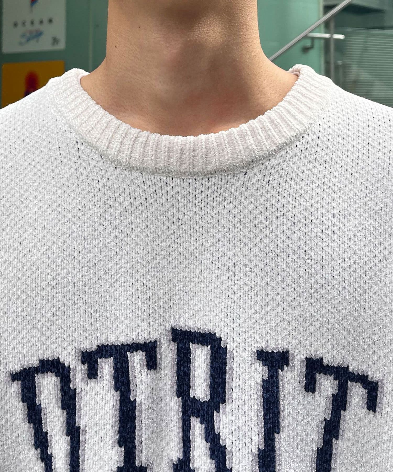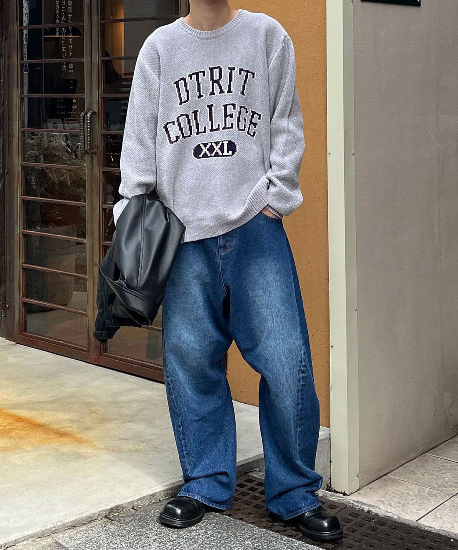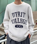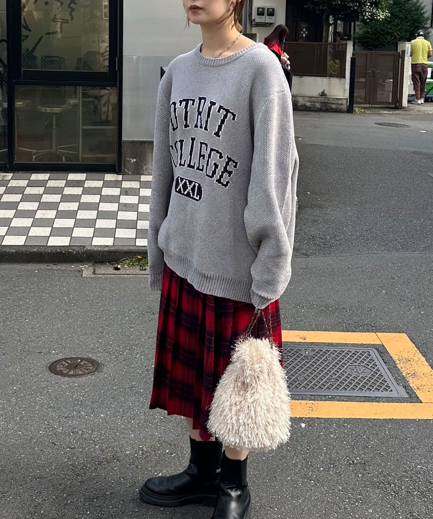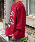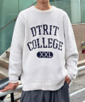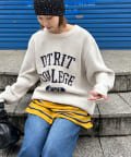 ヴィンテージ風のフロントロゴが目を惹く、カレッジ風ニット。