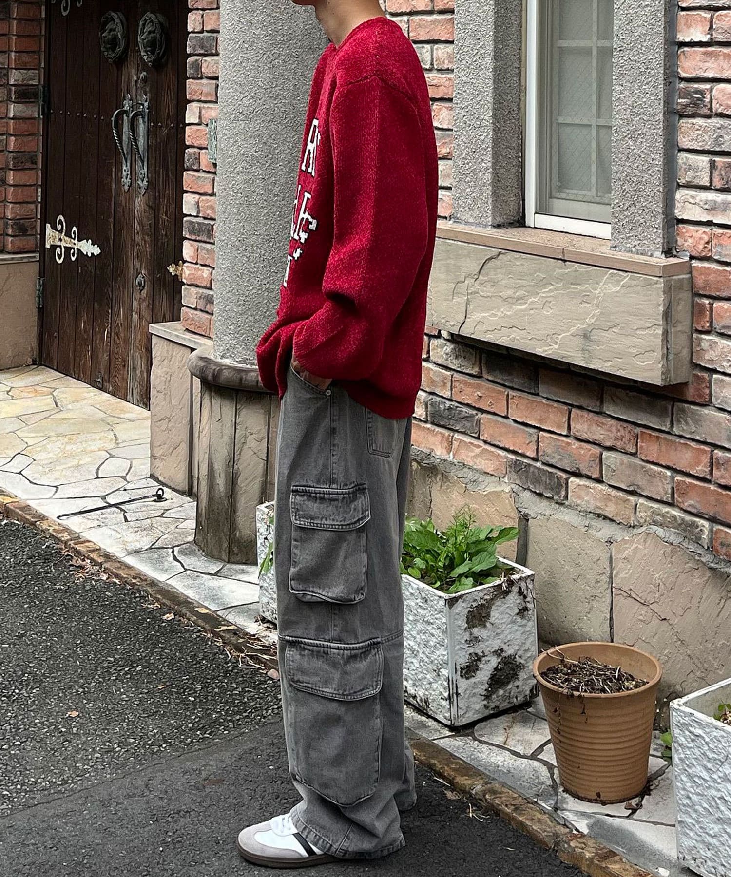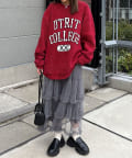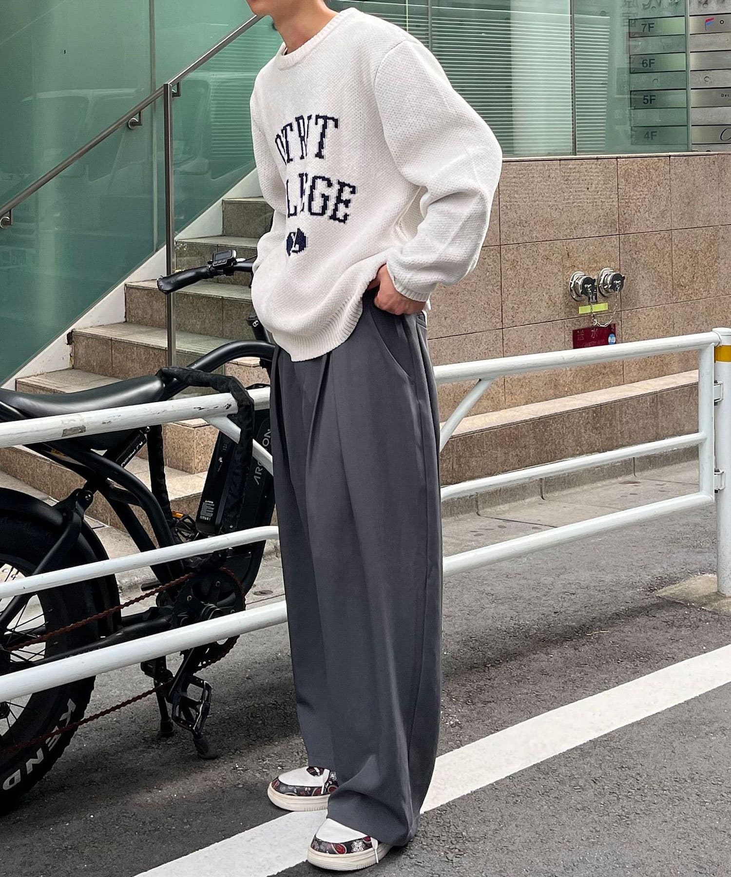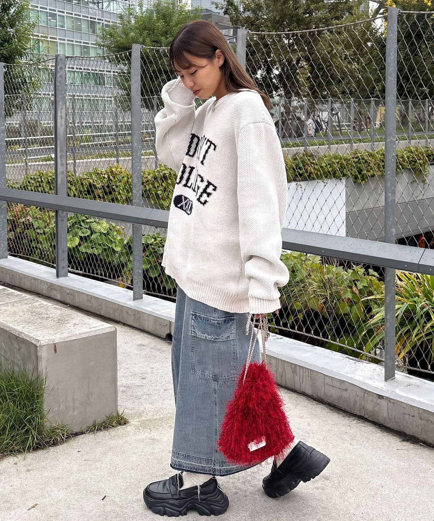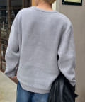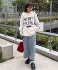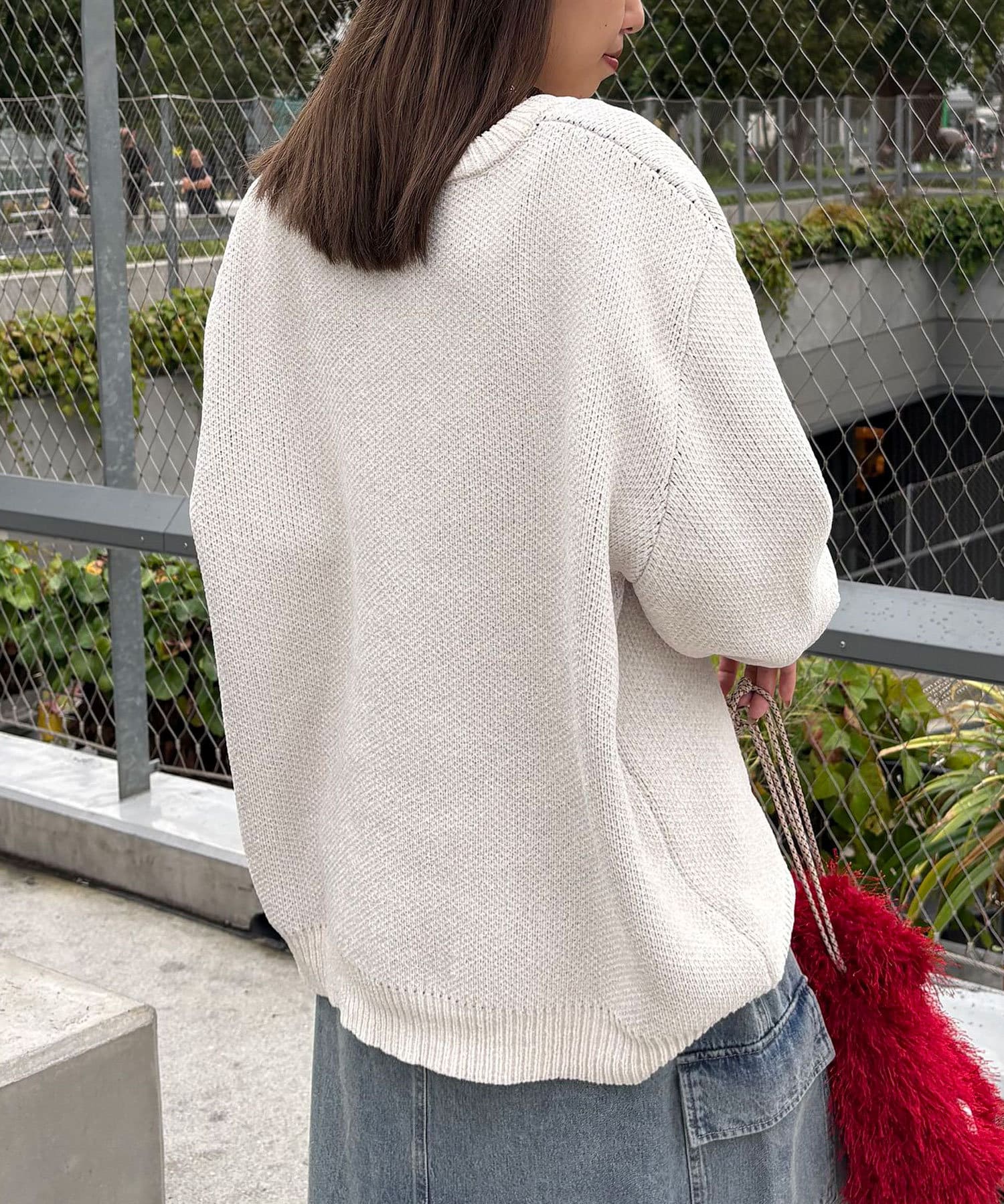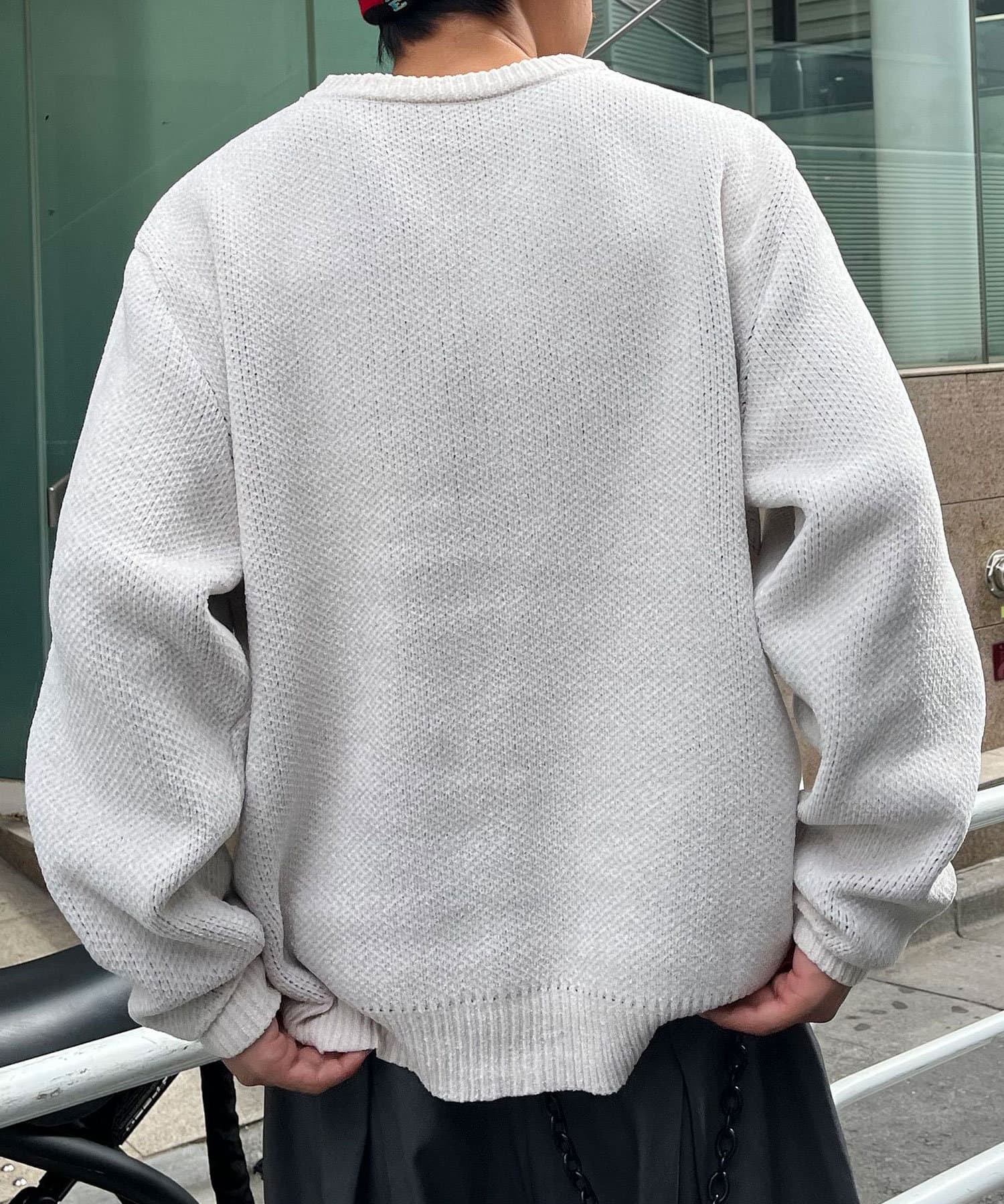 ヴィンテージ風のフロントロゴが目を惹く、カレッジ風ニット。