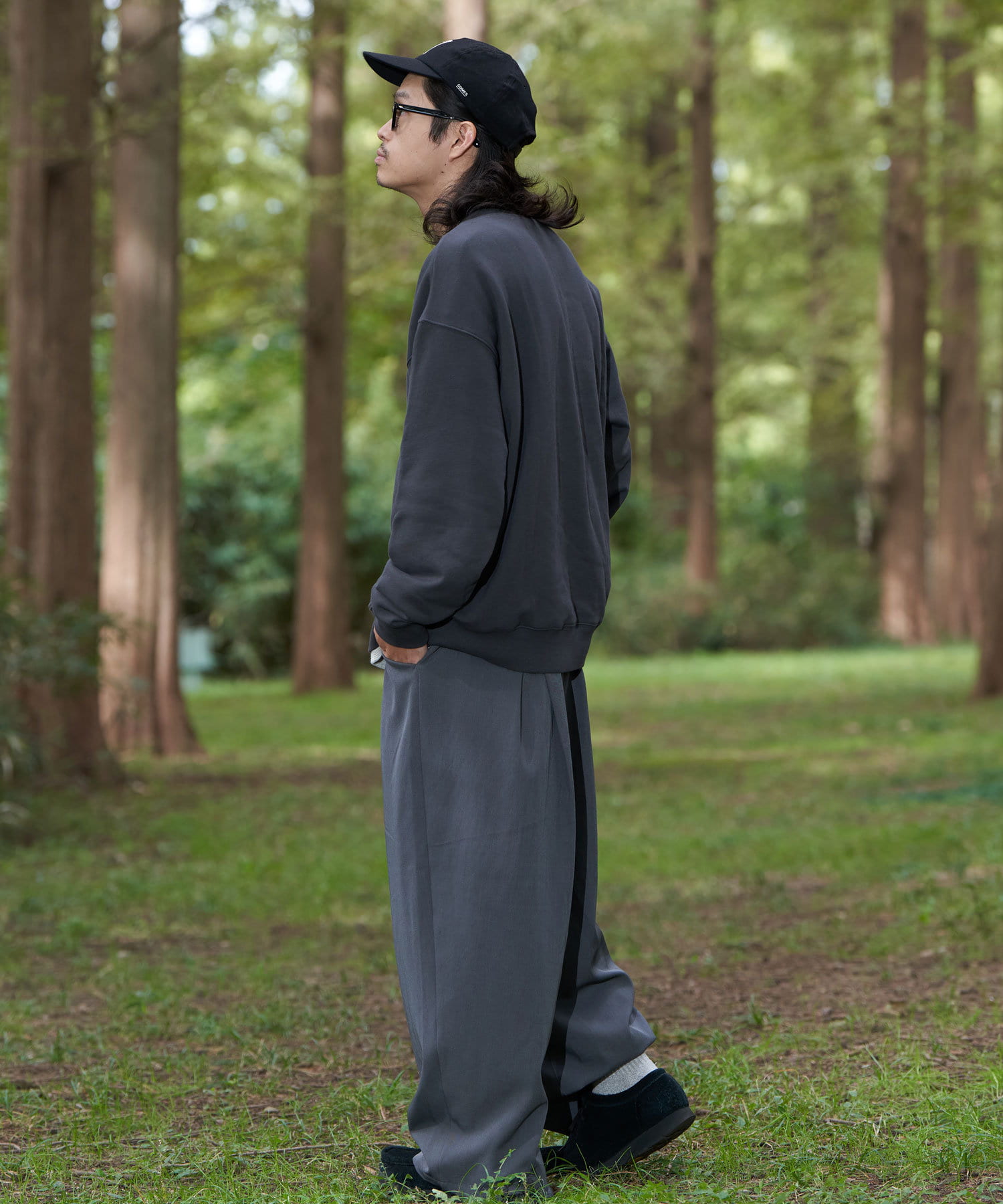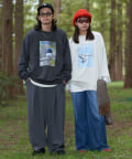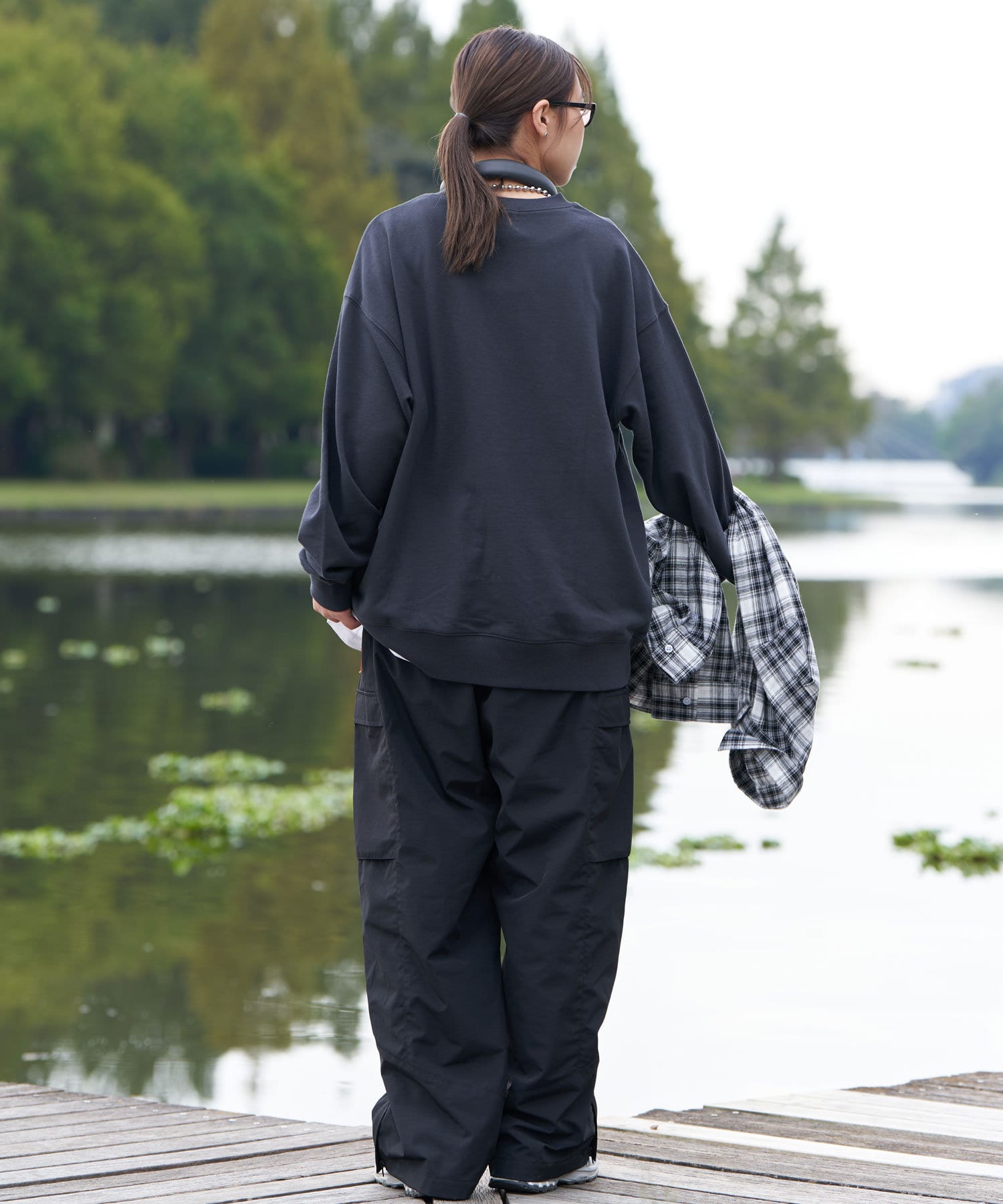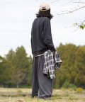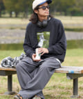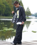 ワイドなスラックスや、デニムを合わせたトレンド感のあるコーデやナイロンパンツを合わせたアウトドアスタイルもおすすめ。