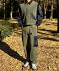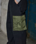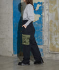 トップスにはシンプルなTシャツやスウェットを合わせると、異素材のカラーポケットがアクセントになり、こなれたカジュアルスタイルに。