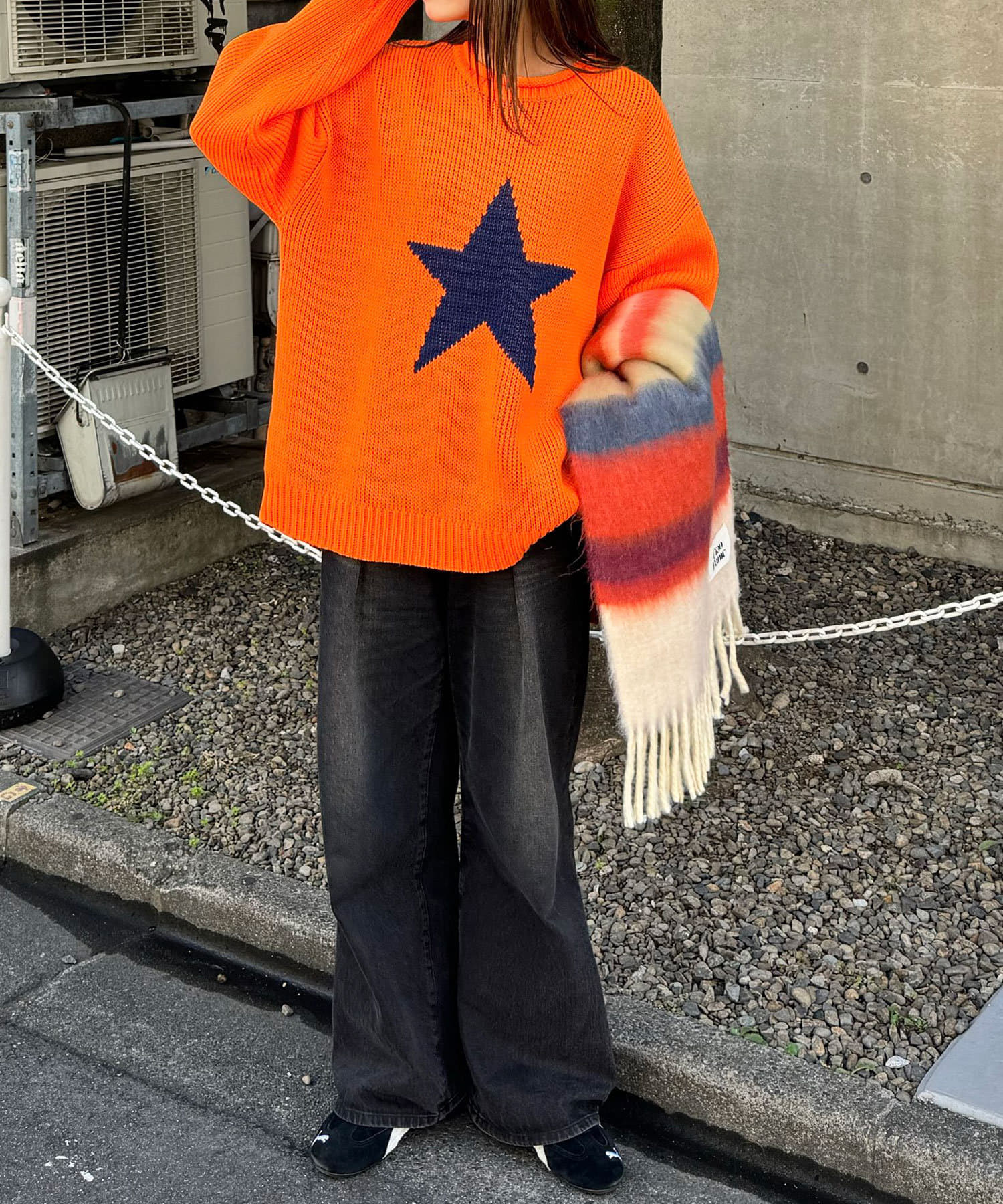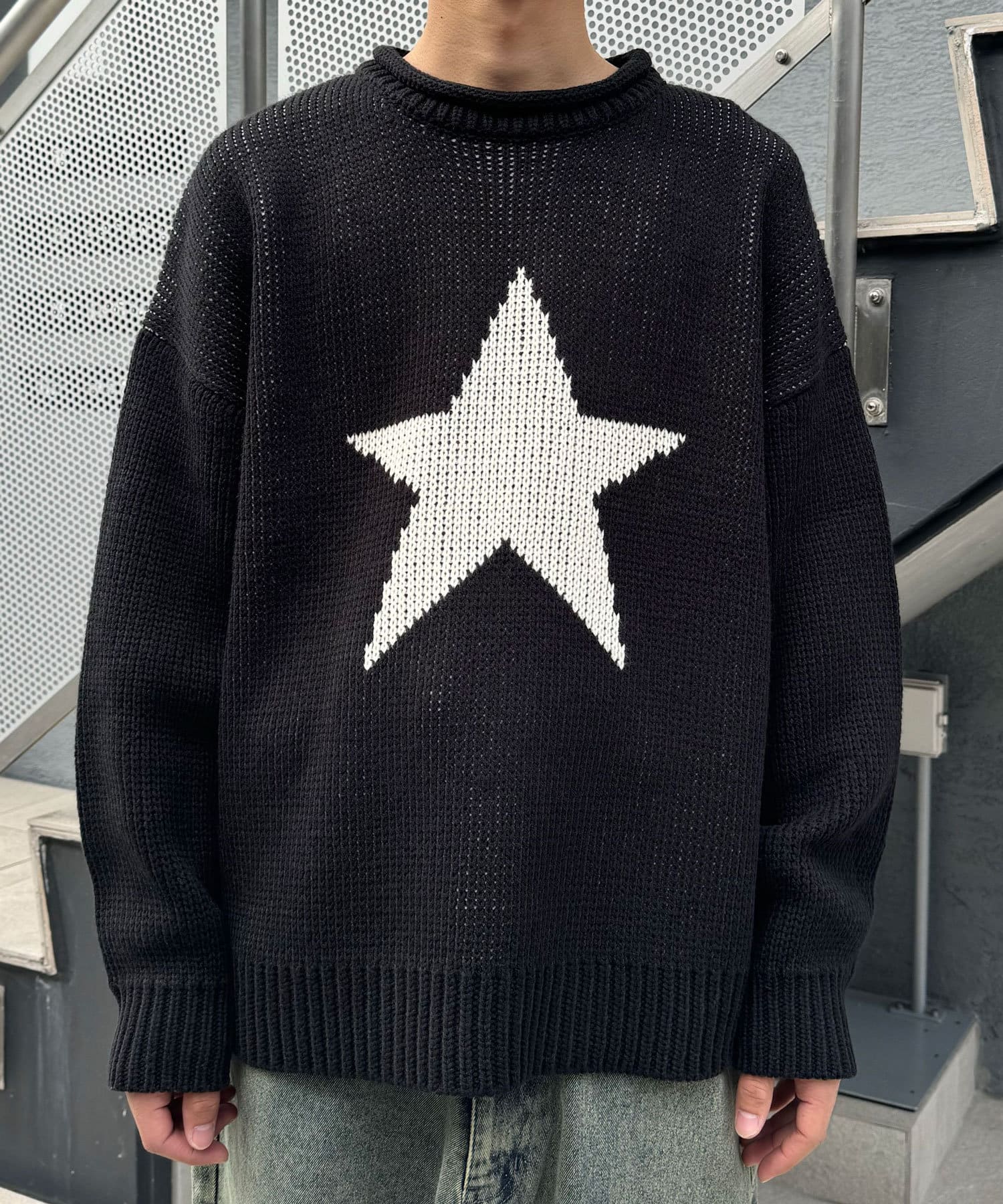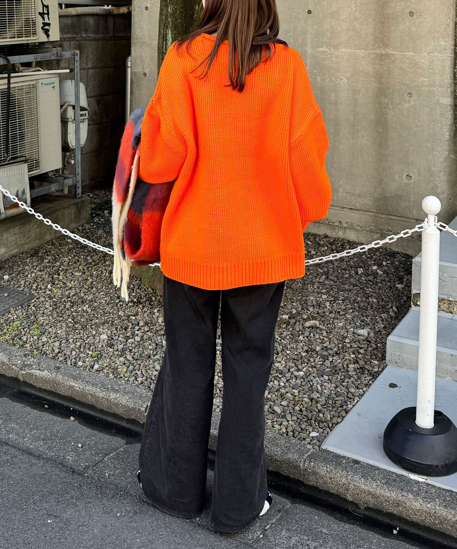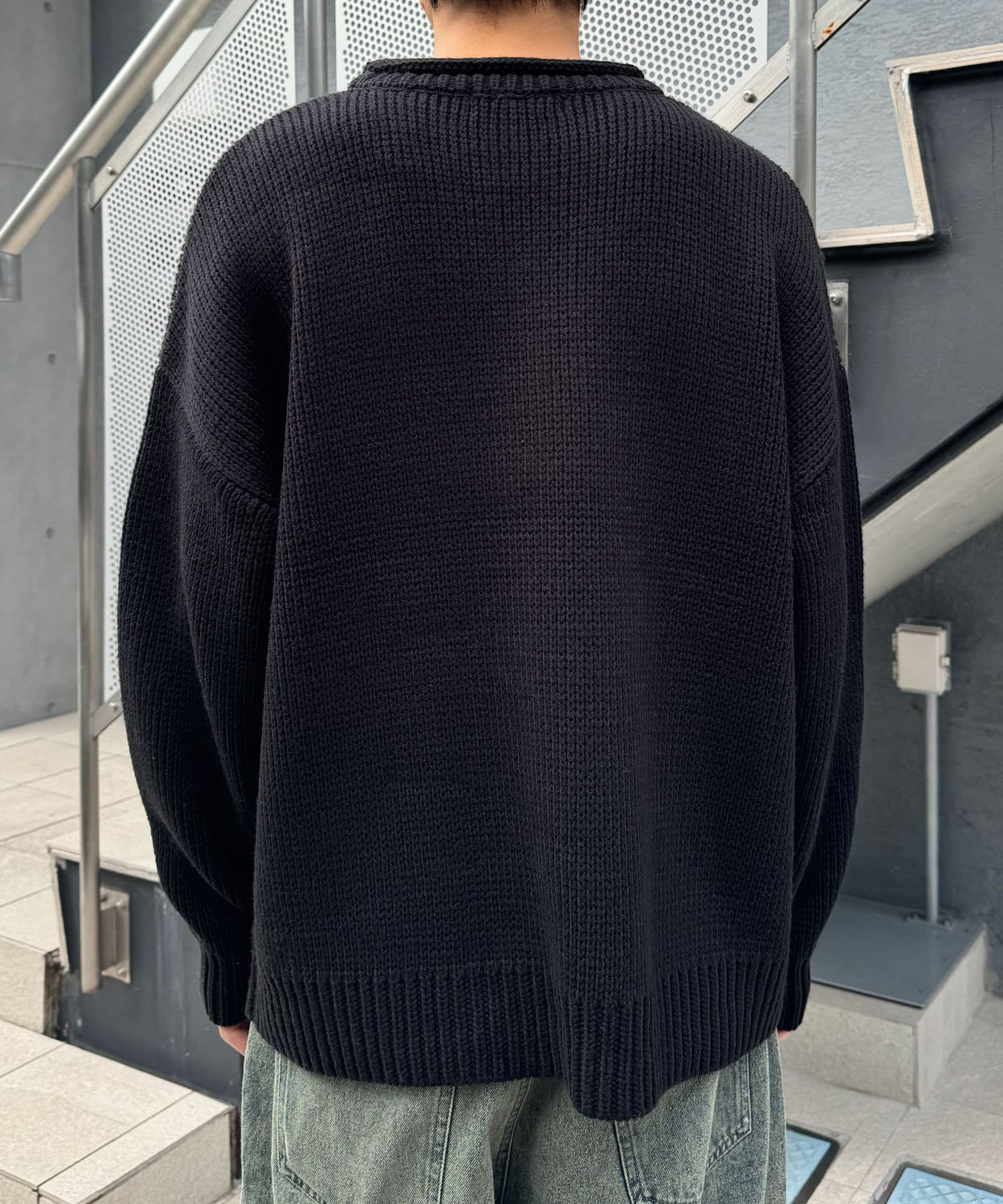 手編み風のローゲージと抜け感のあるロールネック仕様で、デザイン性と防寒を兼ね備えた冬に活躍するアイテムです。