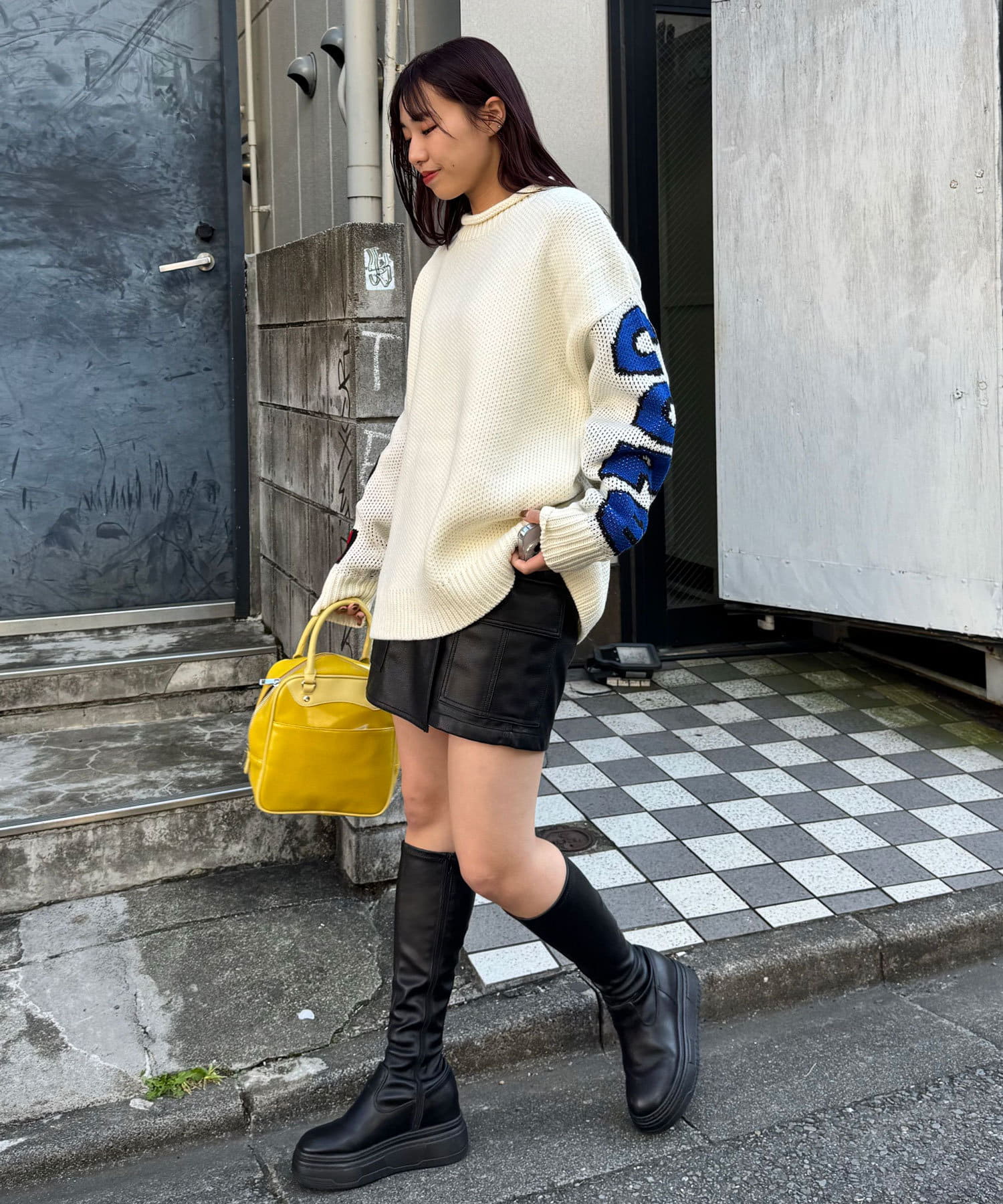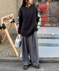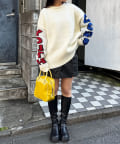 リラックス感あるシルエットを活かし、ミニスカートやスリムパンツを組み合わせてスッキリとスタイルアップ◎
