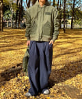 デニムやカーゴパンツを合わせた、カジュアルコーデがおすすめ。