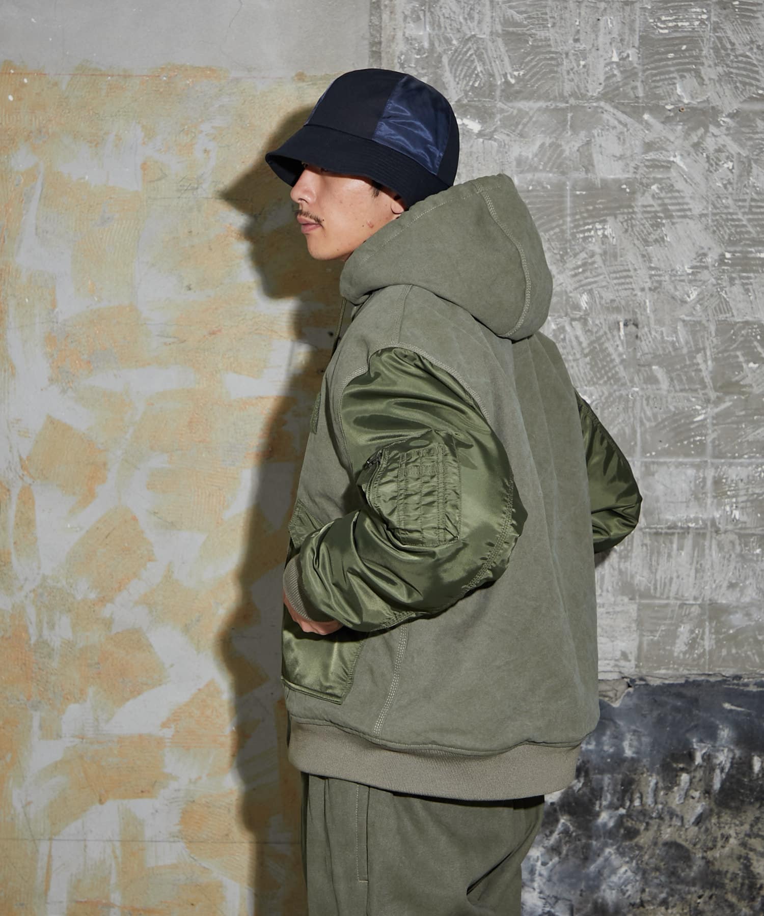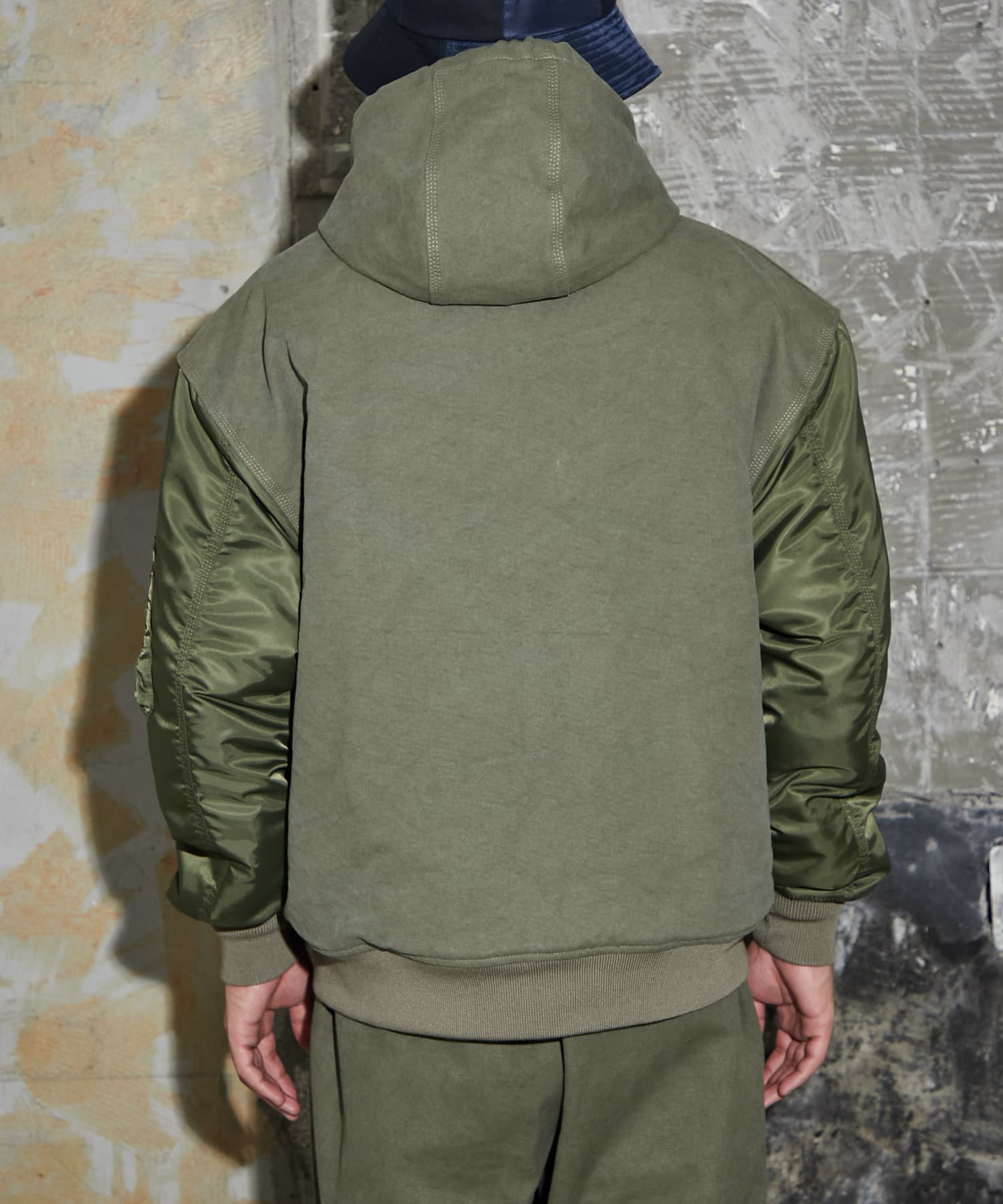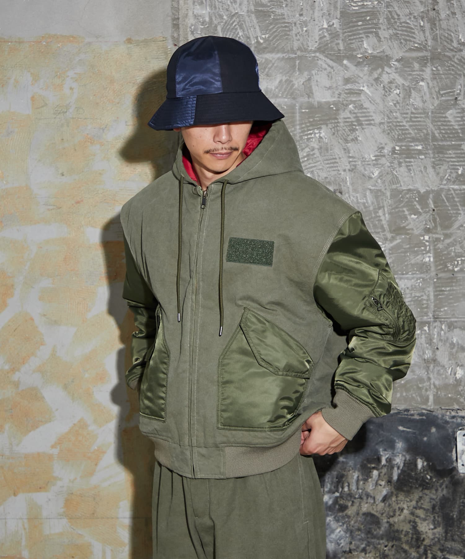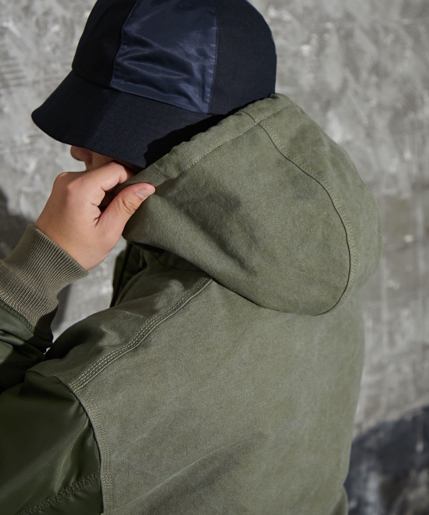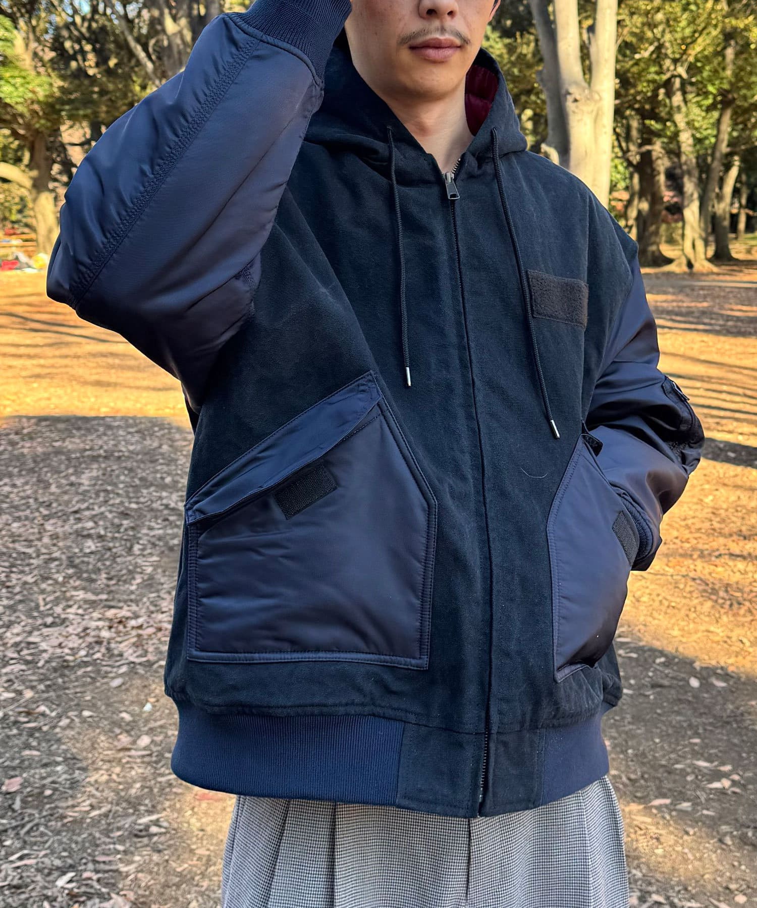 ワークジャケットとMA-1をドッキングさせたワークフーディージャケット。