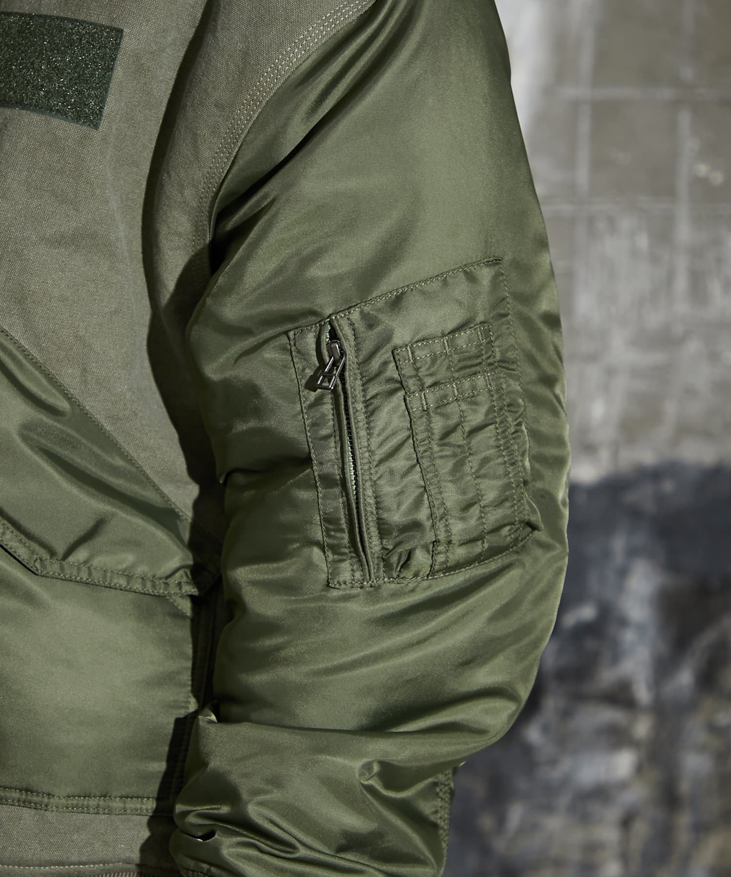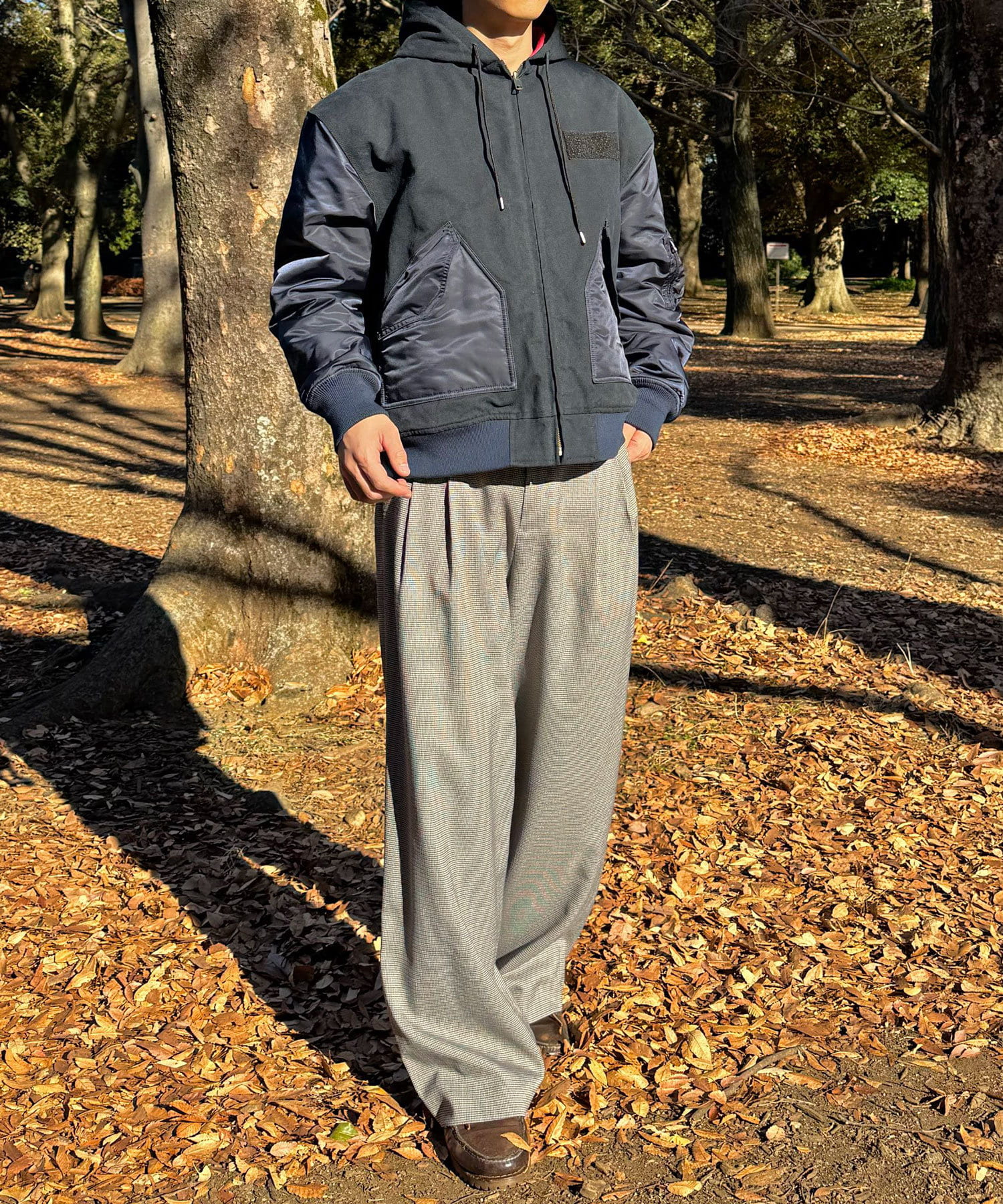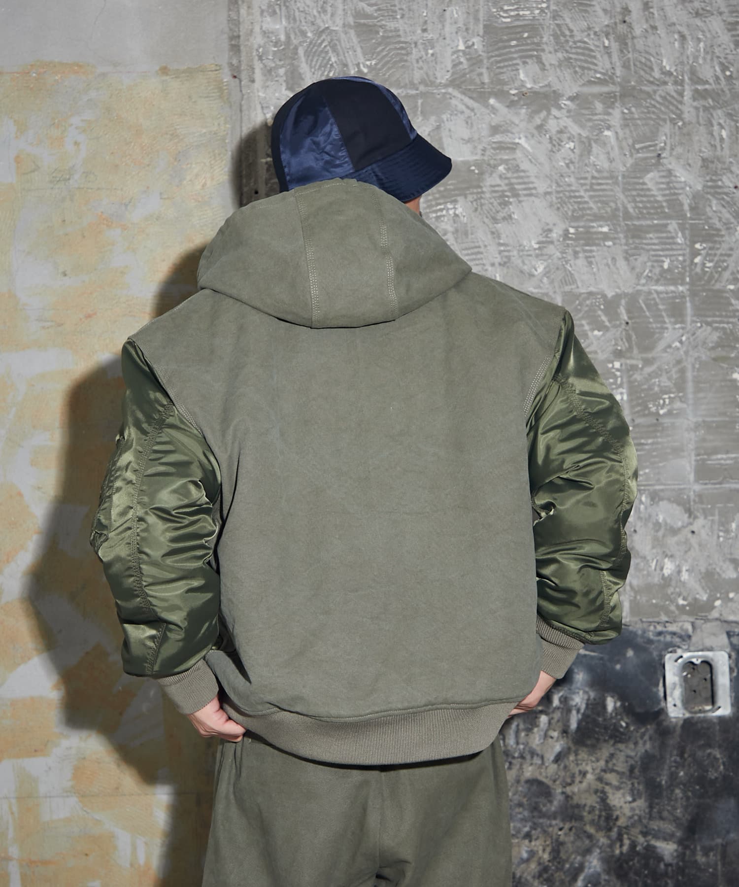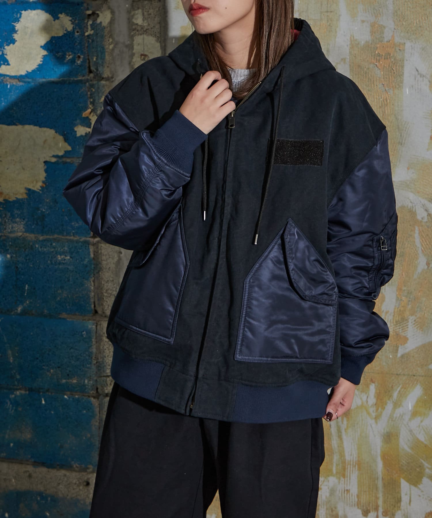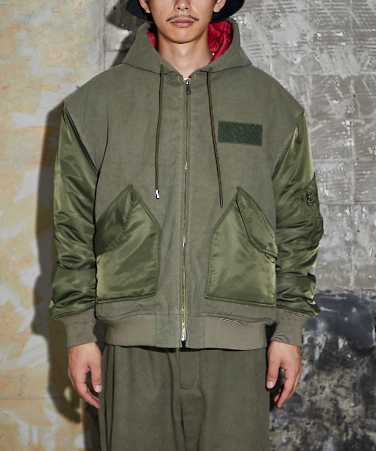 ワークジャケットとMA-1をドッキングさせたワークフーディージャケット。