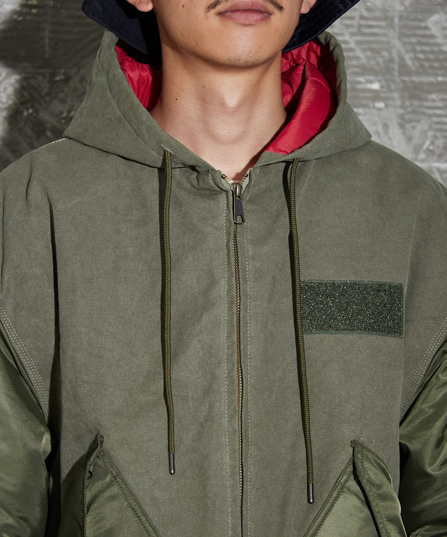ミリタリーとワークを掛け合わせたフーディージャケット
