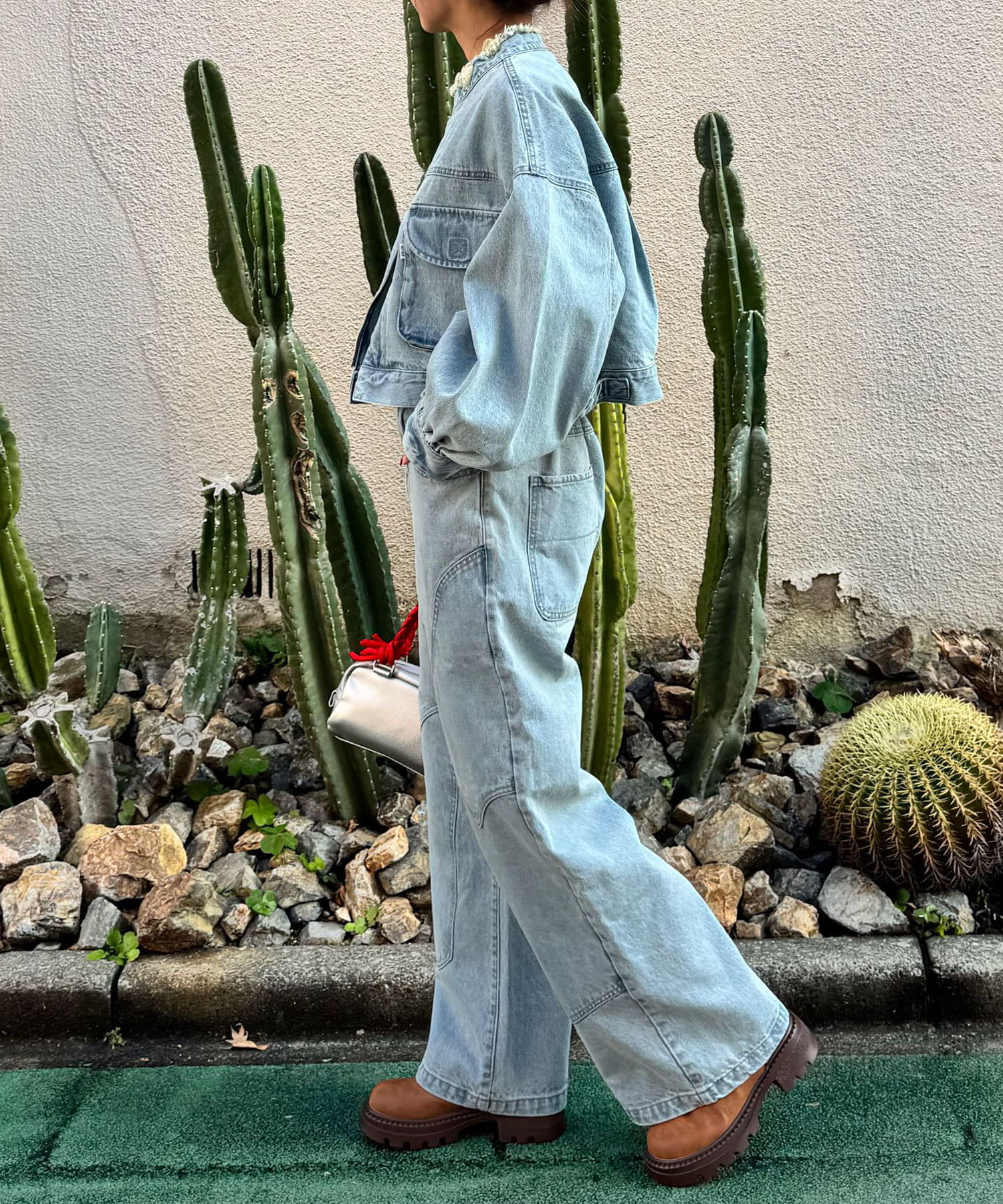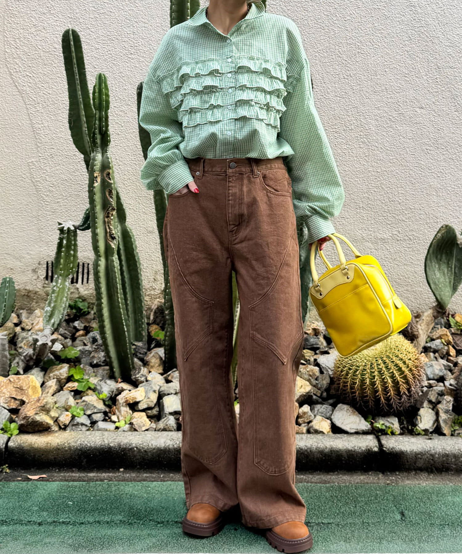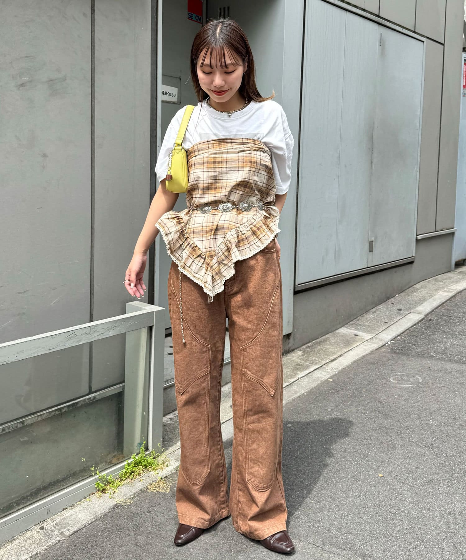 チェック柄のシャツやデニムシャツといったワークなアイテムとも相性抜群◎