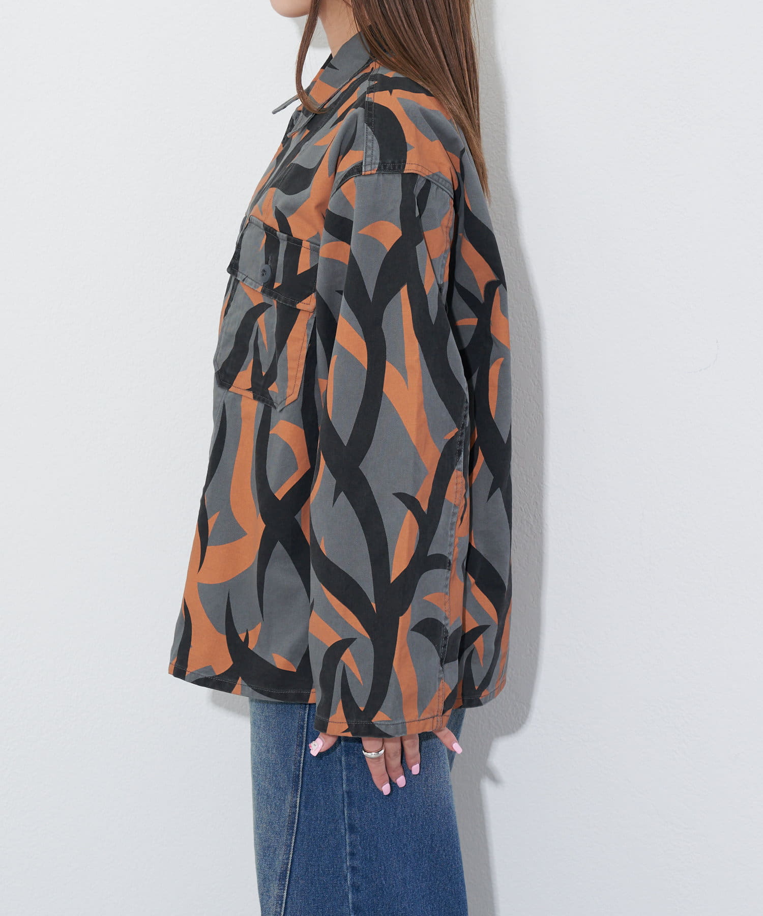 ゆったりとしたシルエットで、メイドインスタンダードらしい、現在的なアプローチのファティーグシャツとなっています。