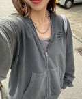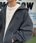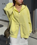 色褪せ感のあるピグメント加工を施したジップフーディー。
