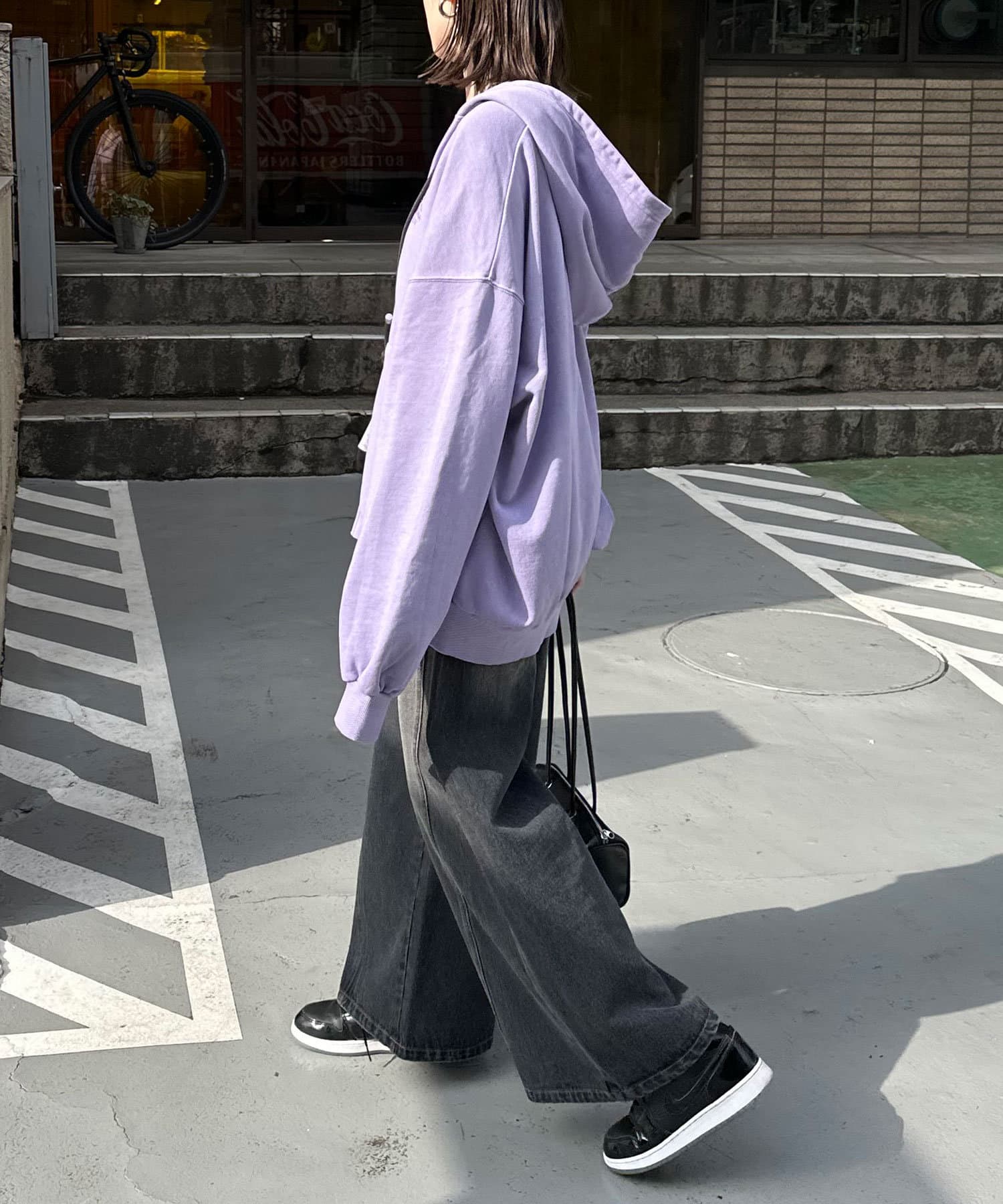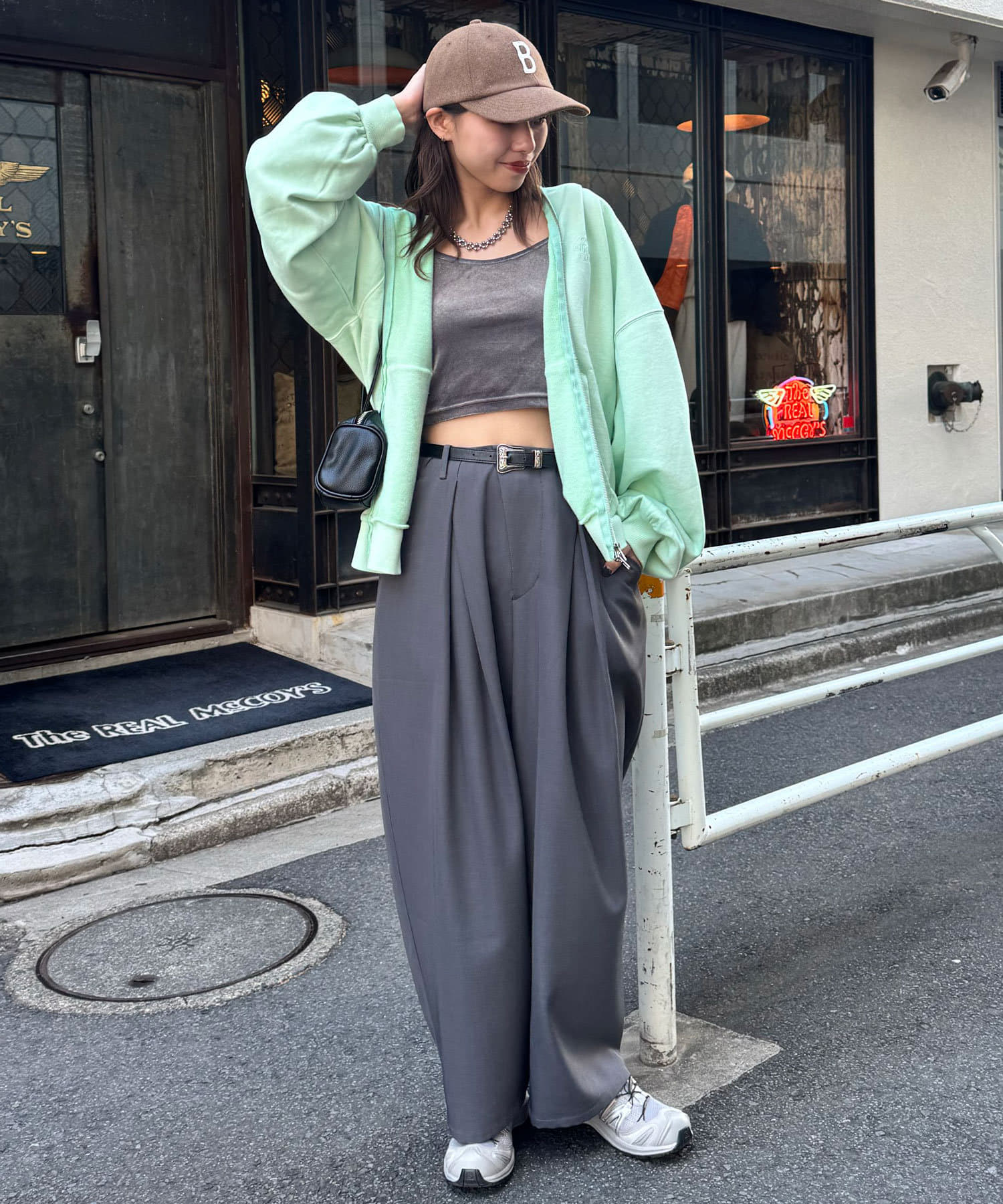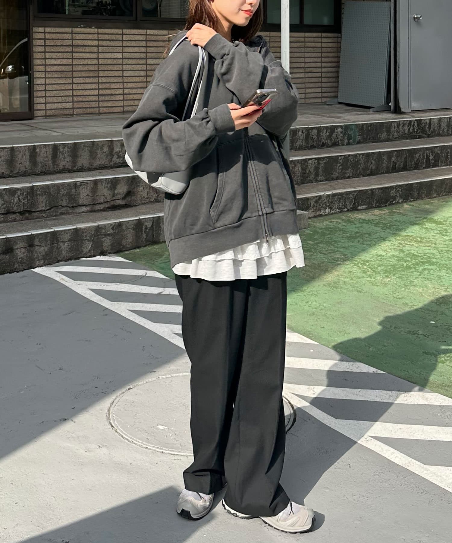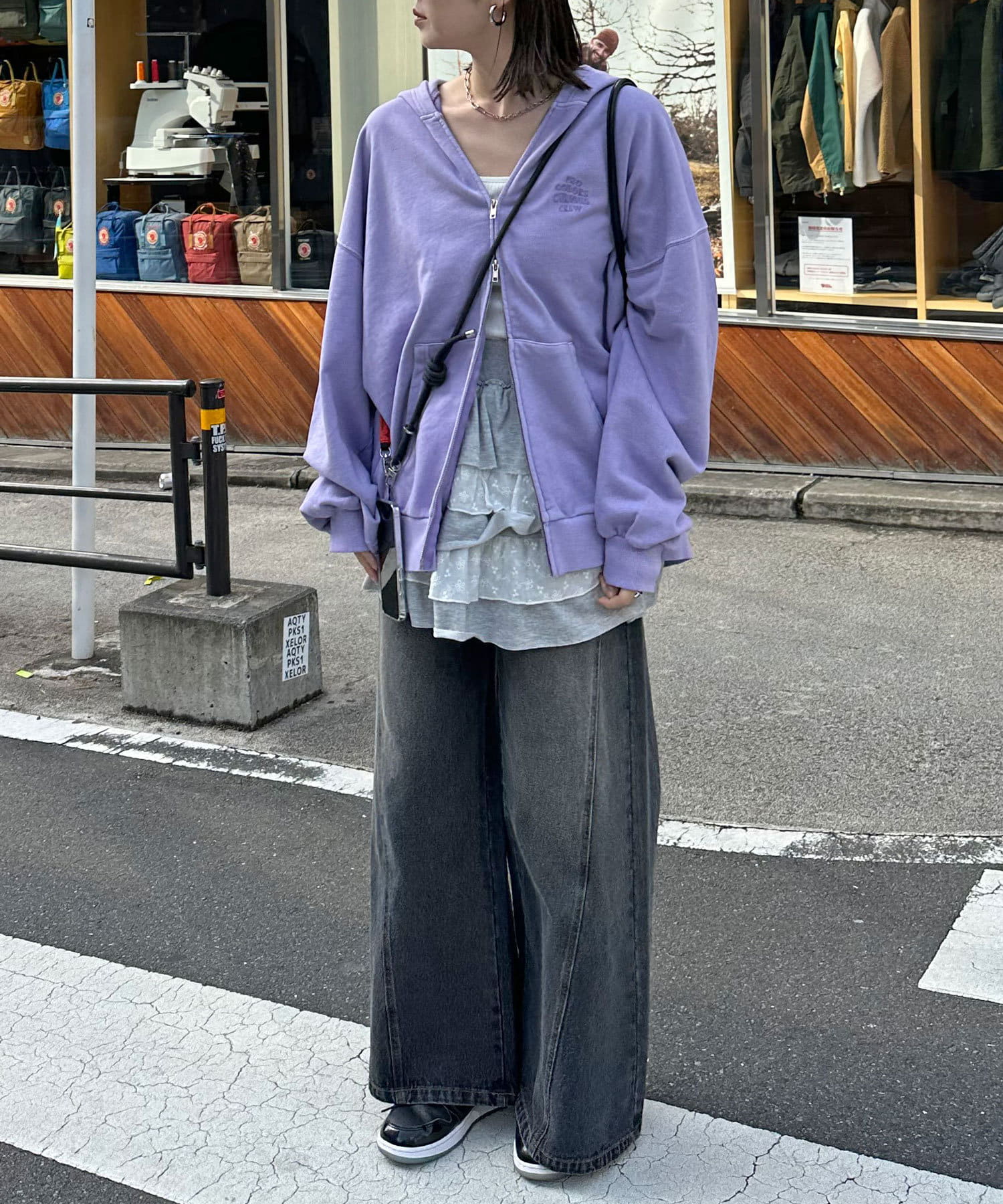 ワイドデニムと合わせるとストリートな雰囲気に決まります。