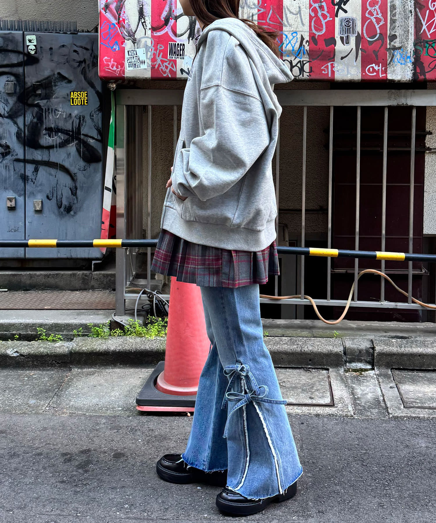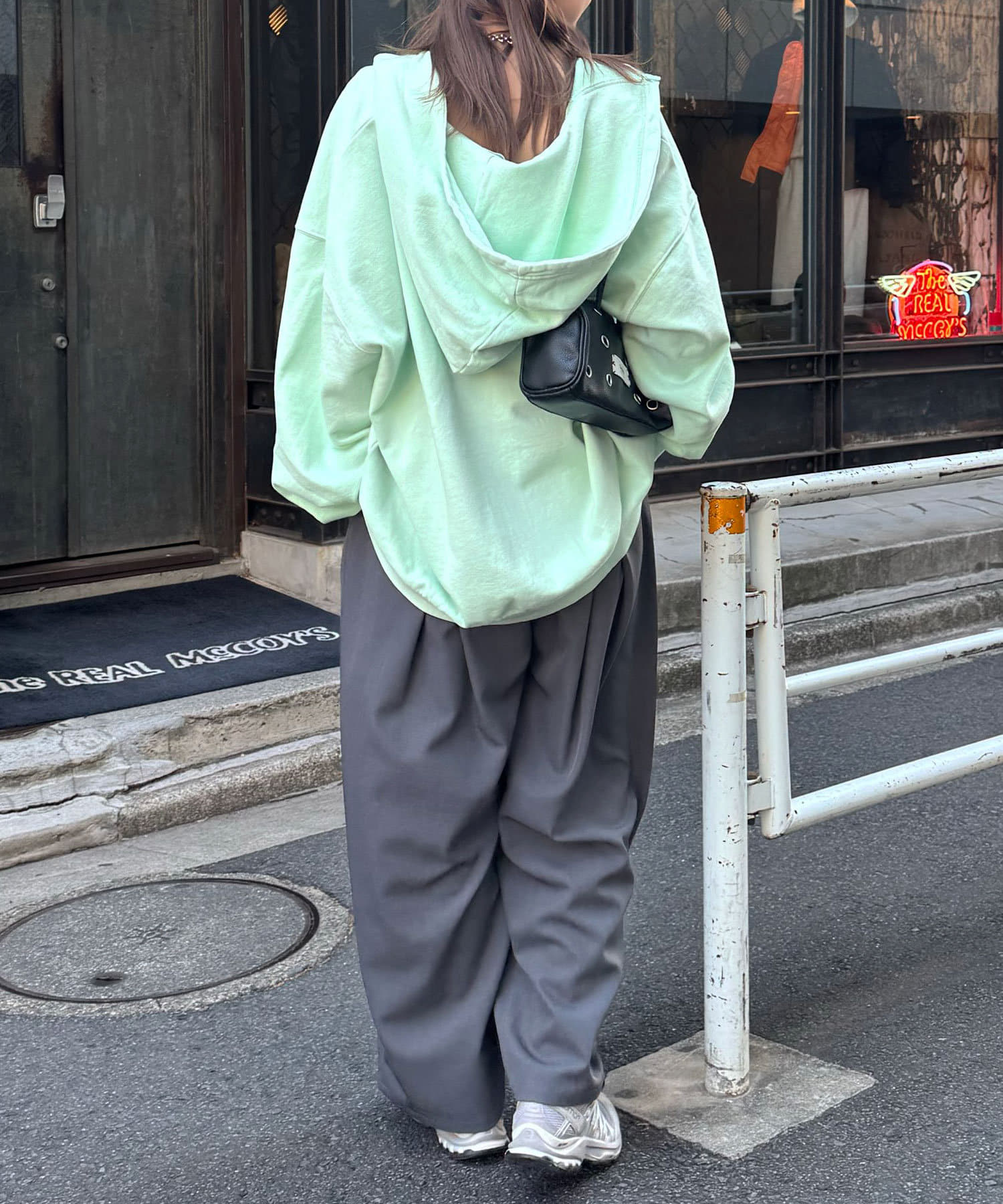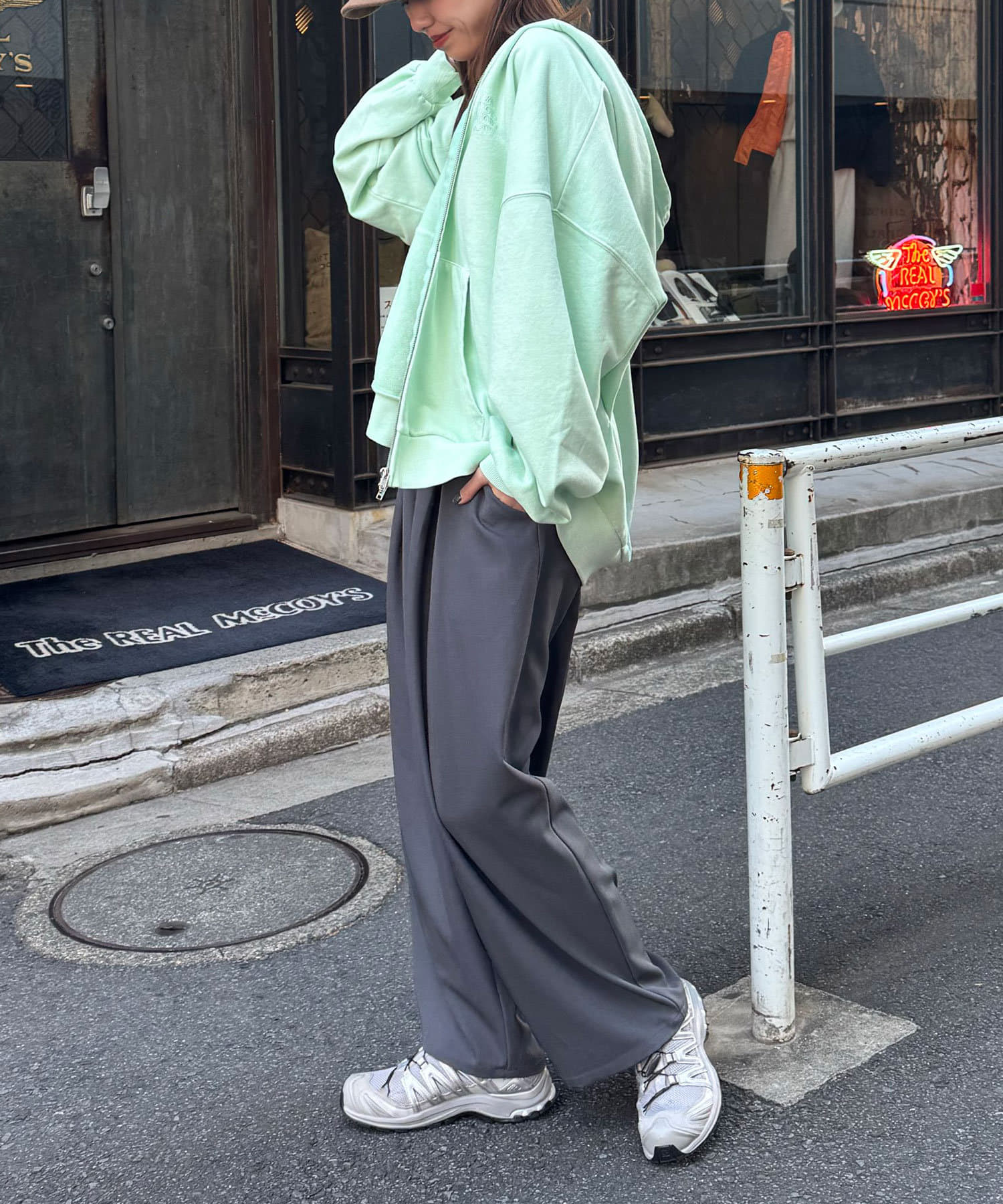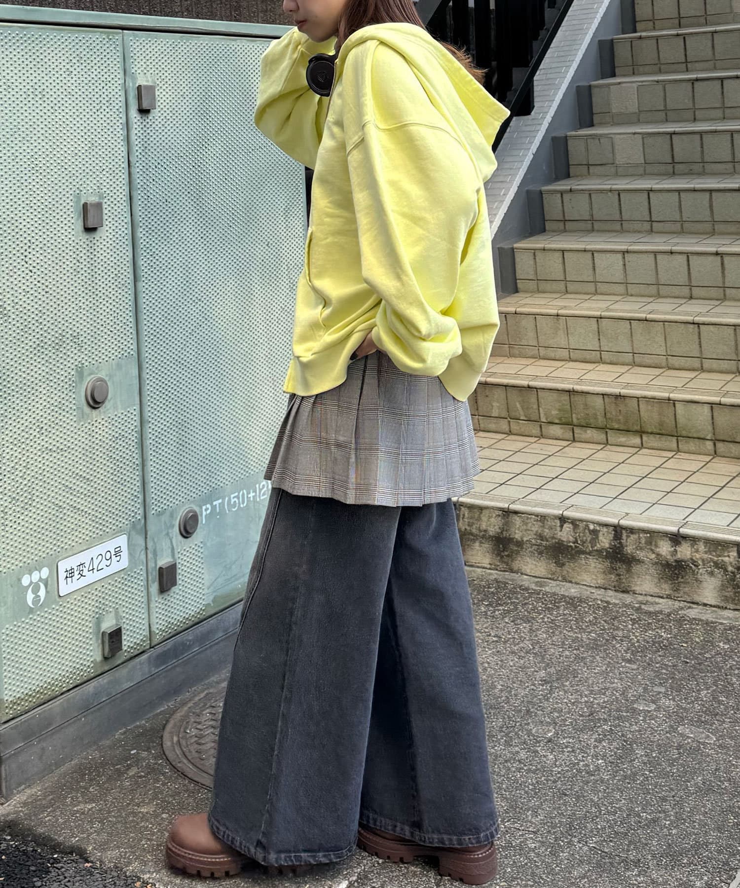 ワイドデニムと合わせるとストリートな雰囲気に決まります。