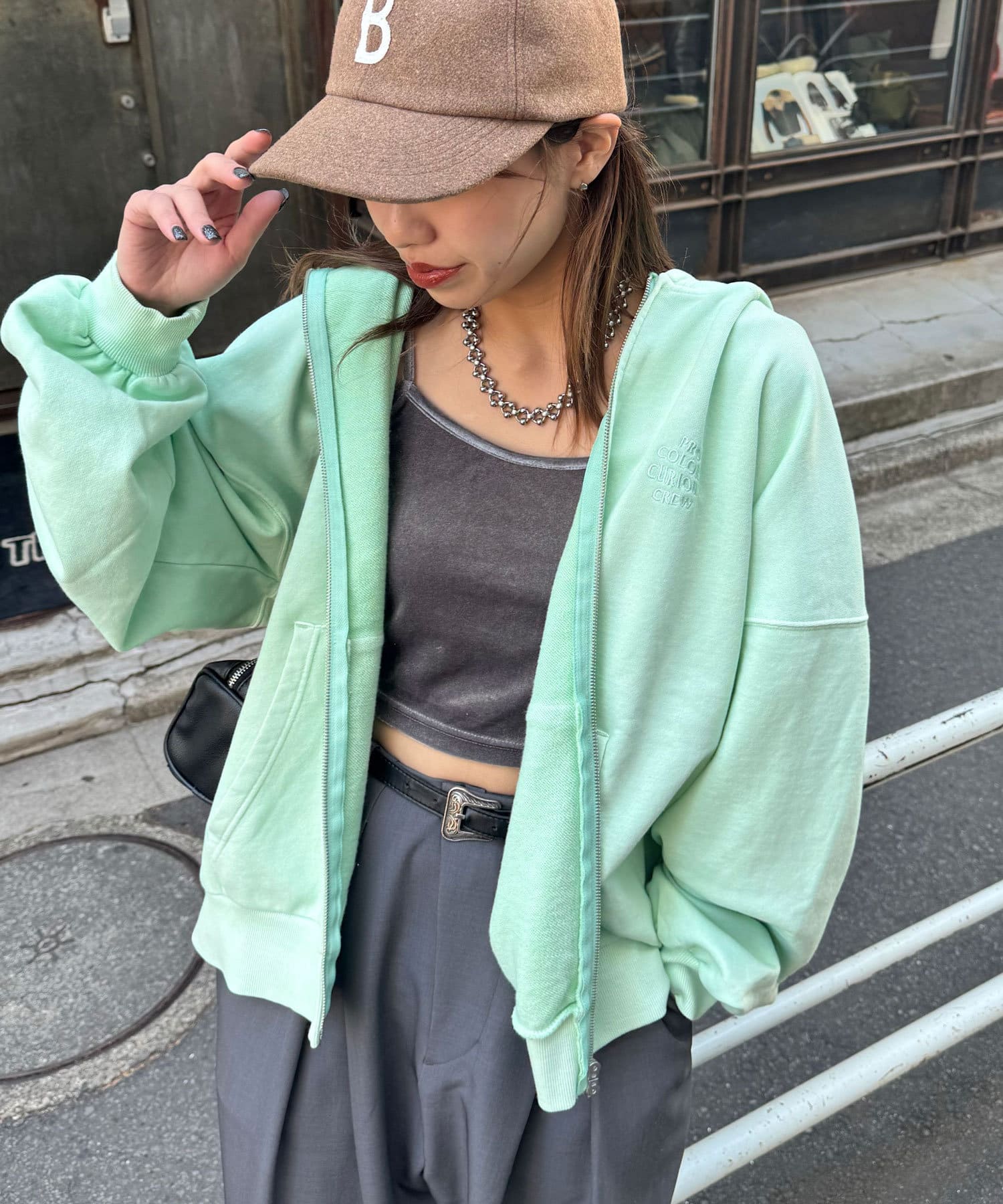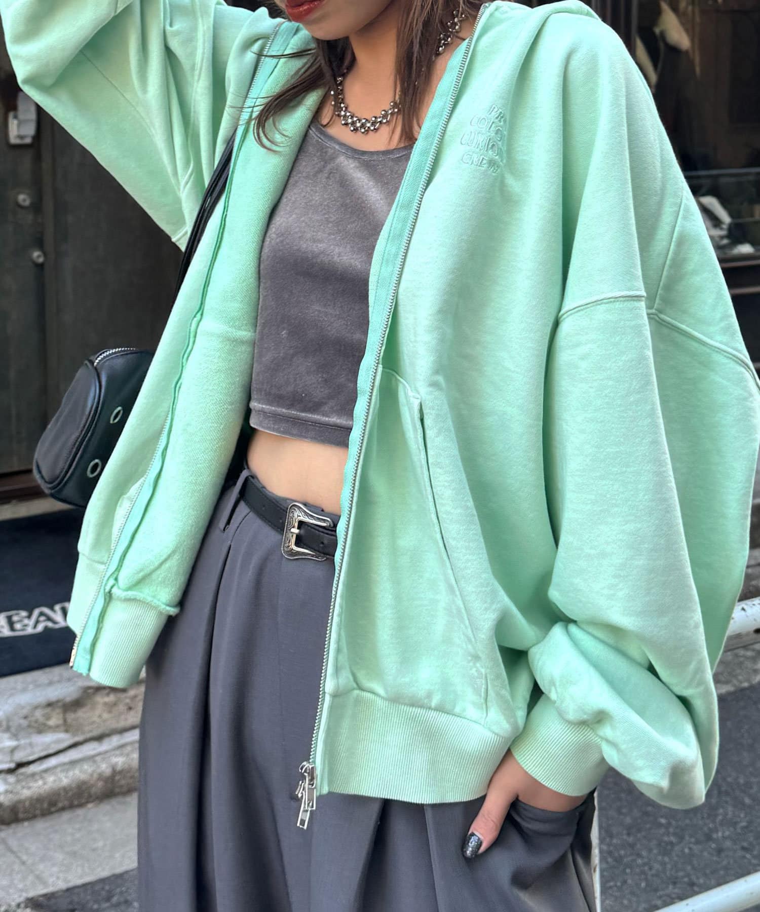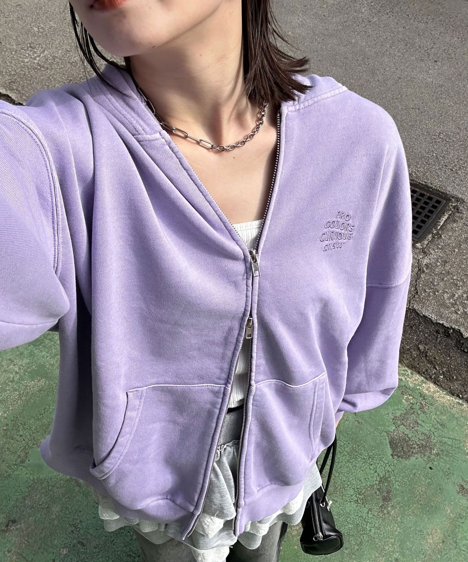 着るだけでトレンド感抜群のピグメントジップパーカー