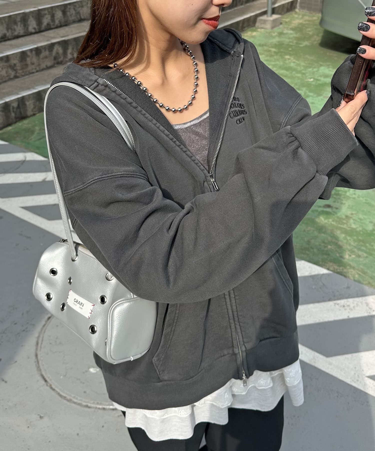 ピグメント刺繍ダブルZIPパーカー