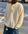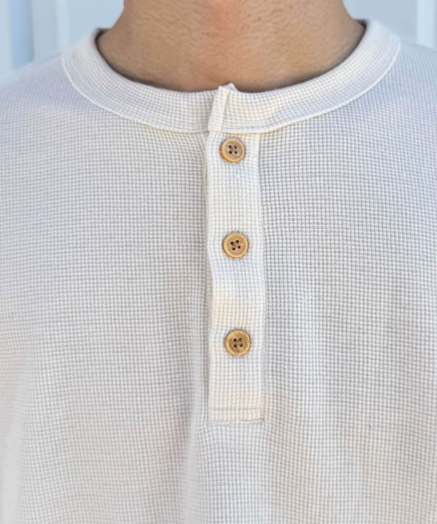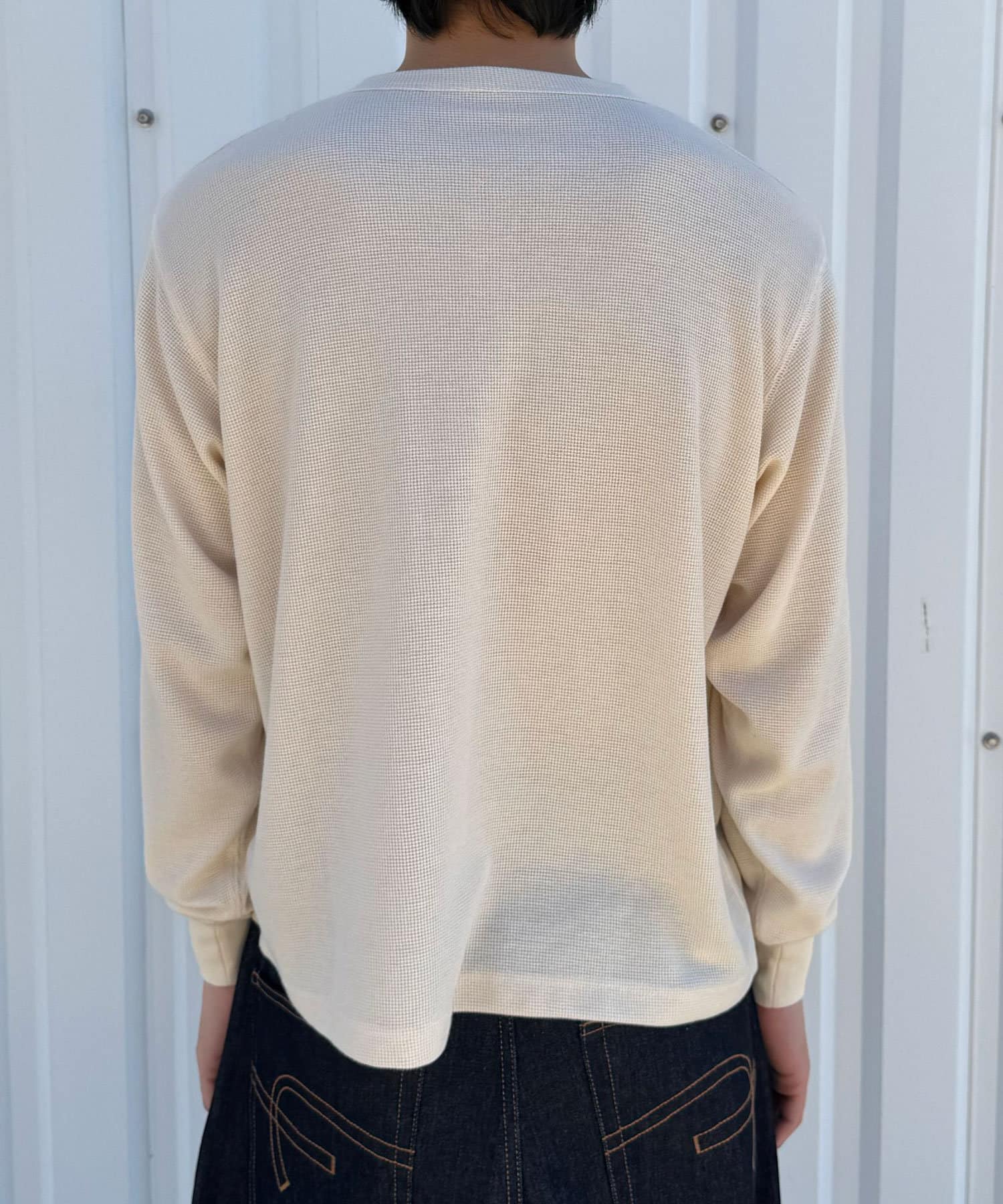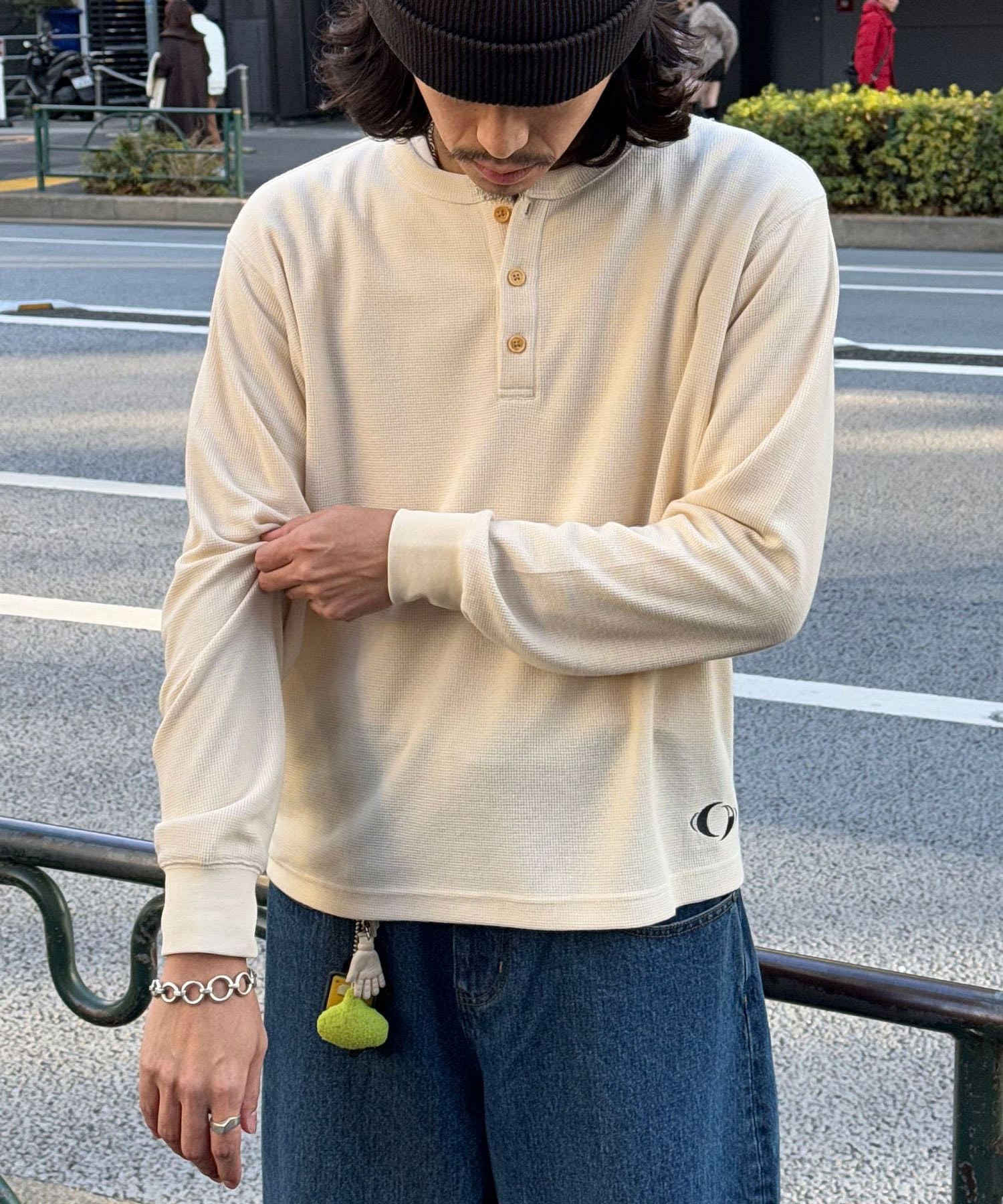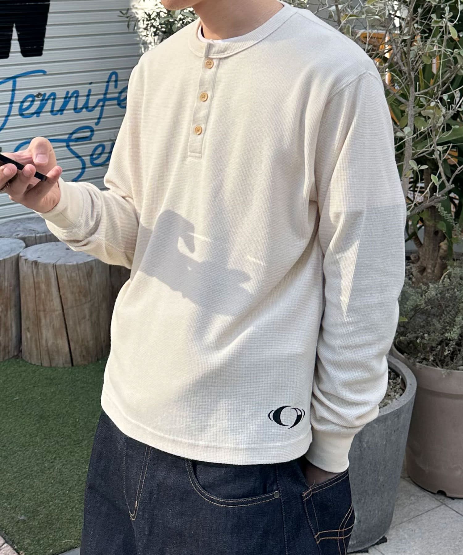 短丈デザインが特徴のヘンリーネックサーマルロンTEE。