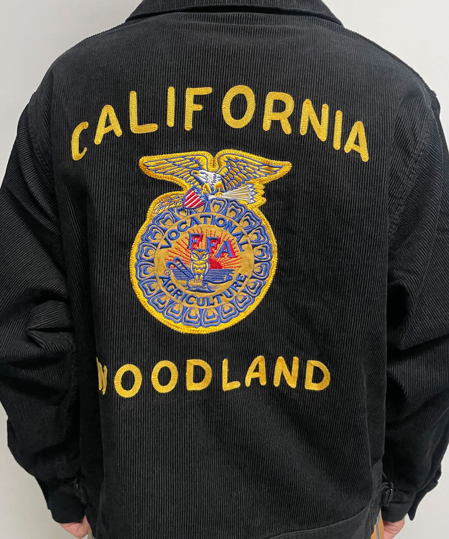 FFA(Future Farmers Agriculture)ジャケットは1928年設立、アメリカの国立農業学校のユニフォームウェアで州ごとに違う刺繍、着用者の名前が施されているジャケット。