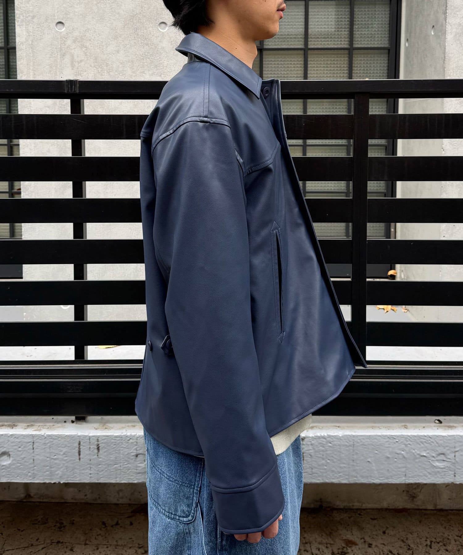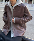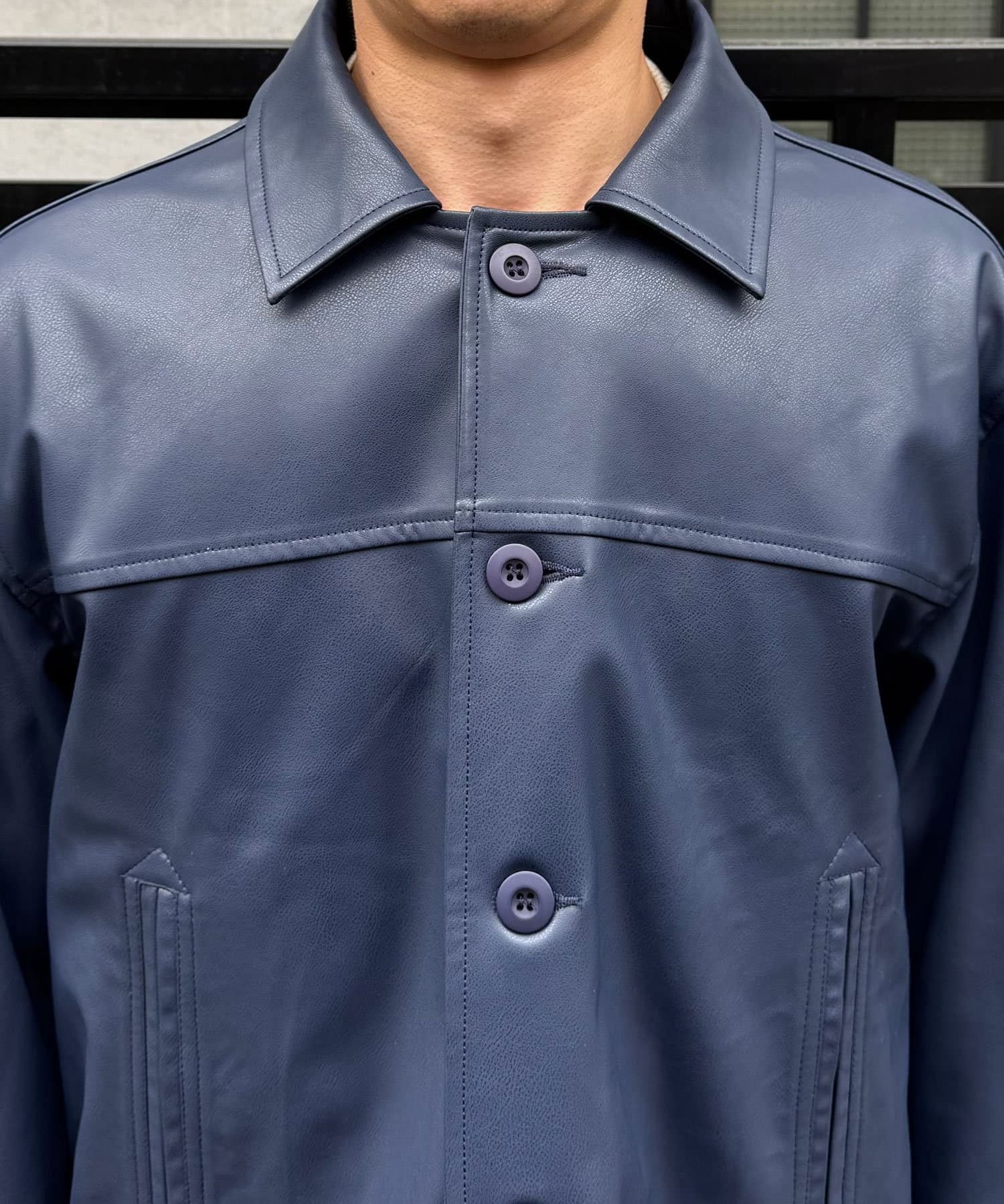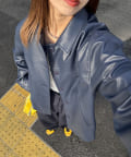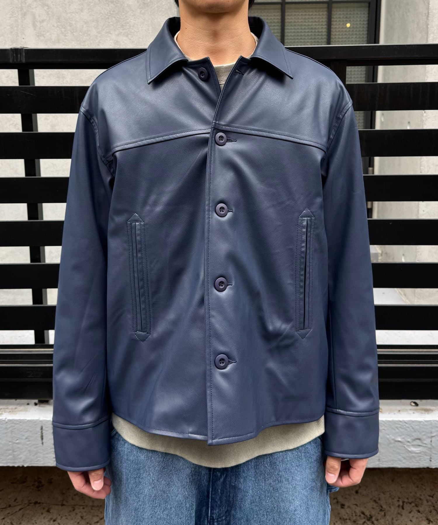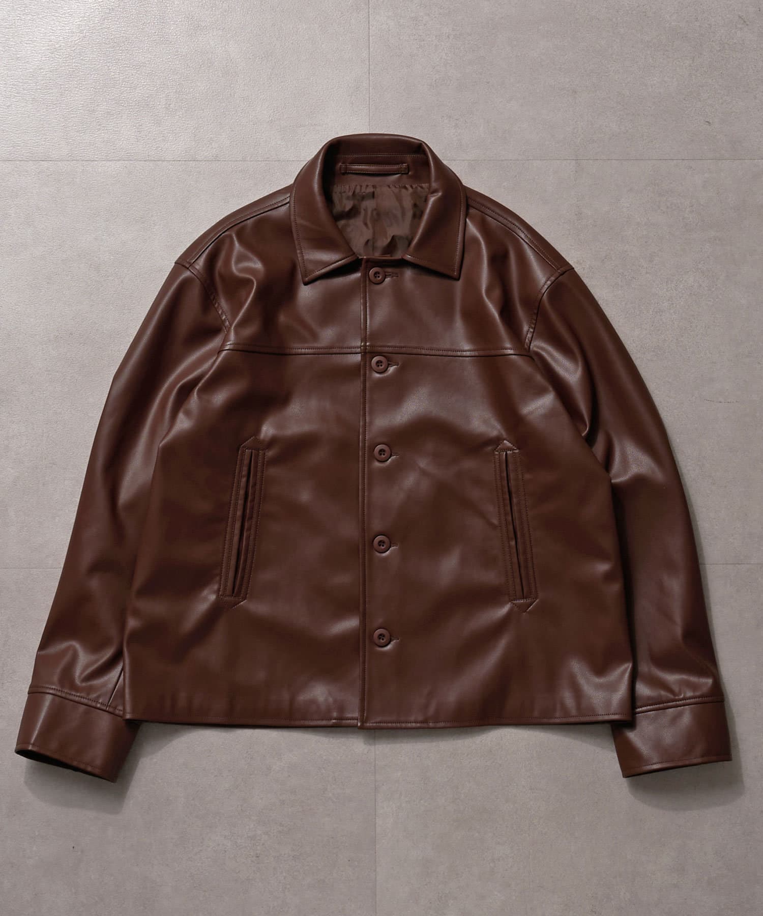 カーコートデザインに、トレンド感のあるウエスタン要素を組み込んだフェイクレザージャケット。