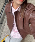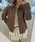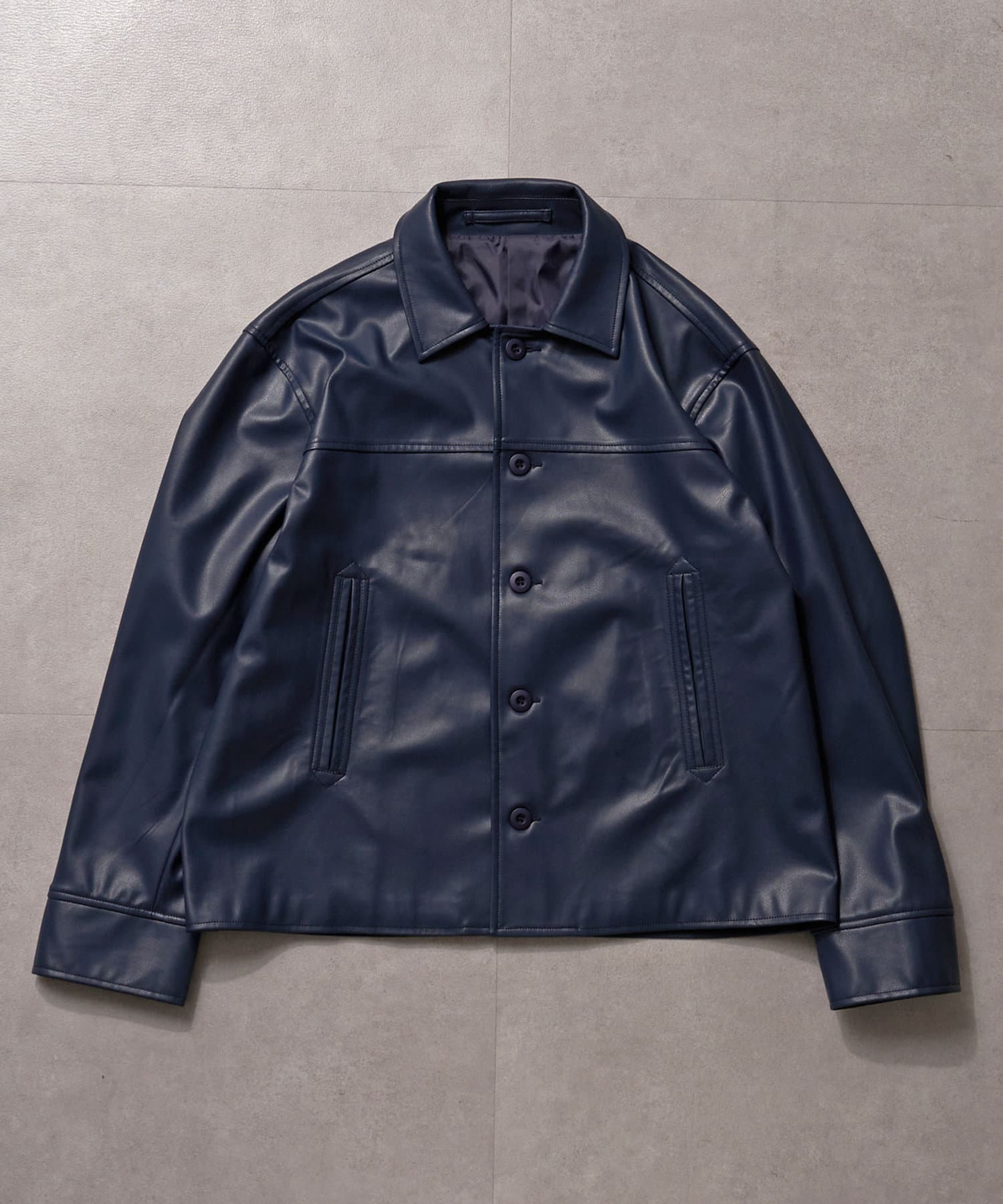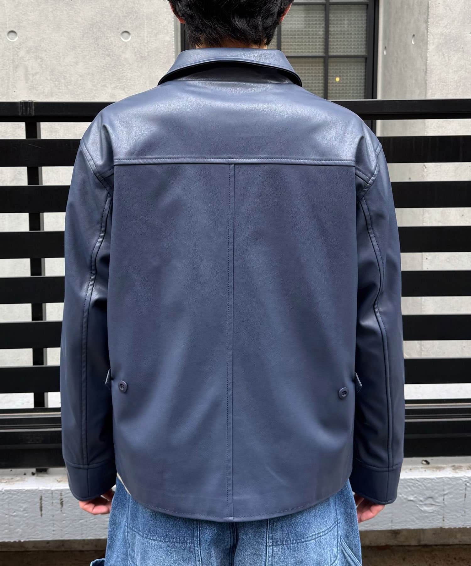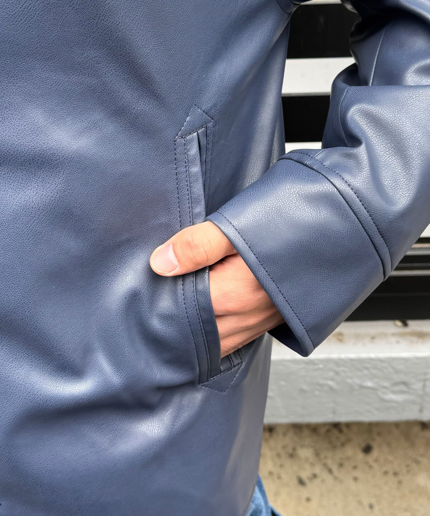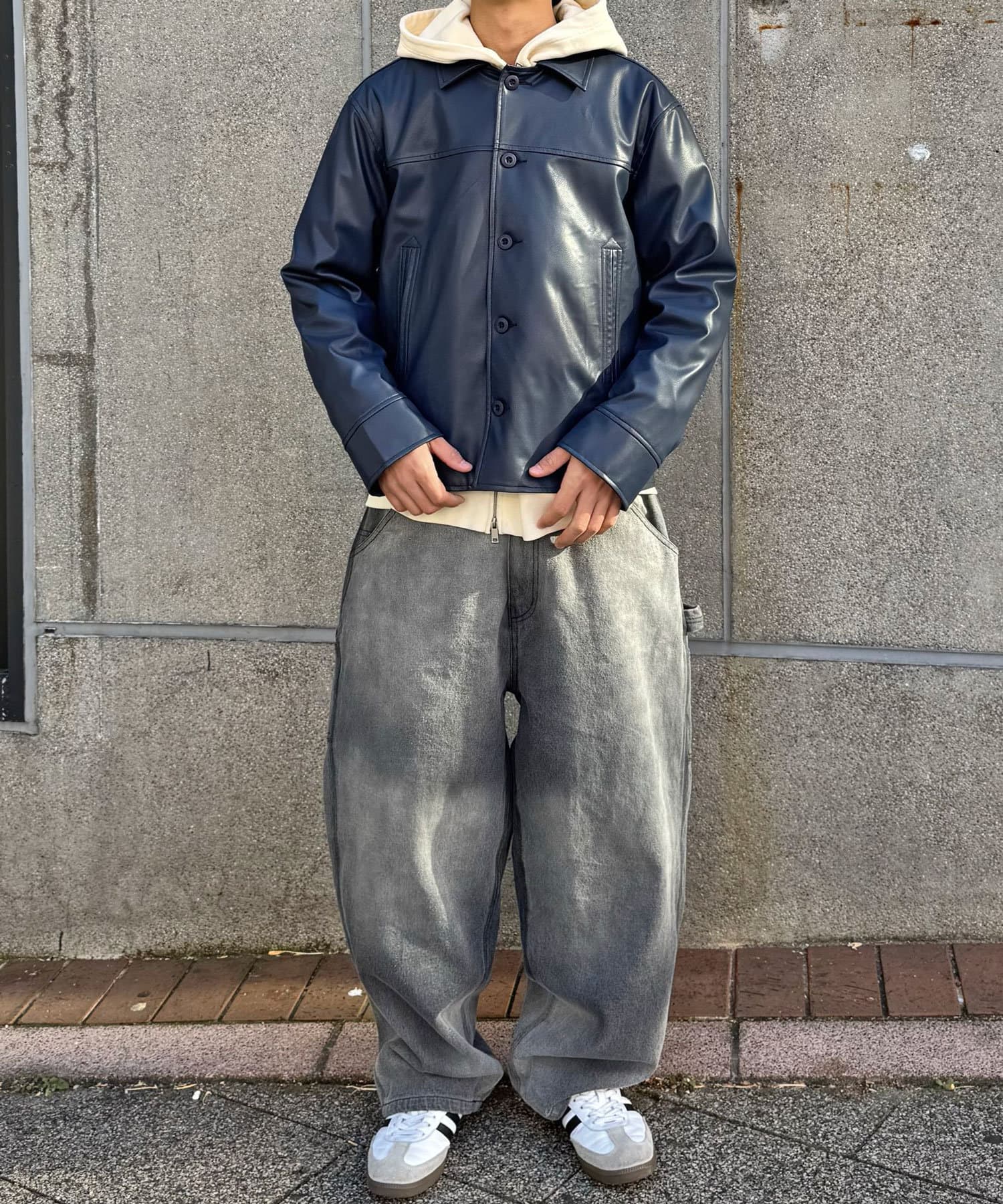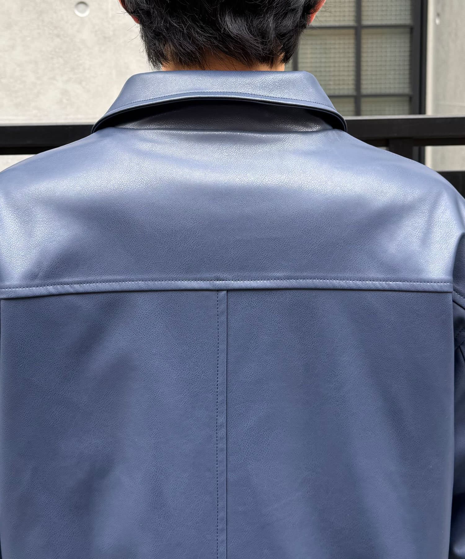 カーコートデザインに、トレンド感のあるウエスタン要素を組み込んだフェイクレザージャケット。