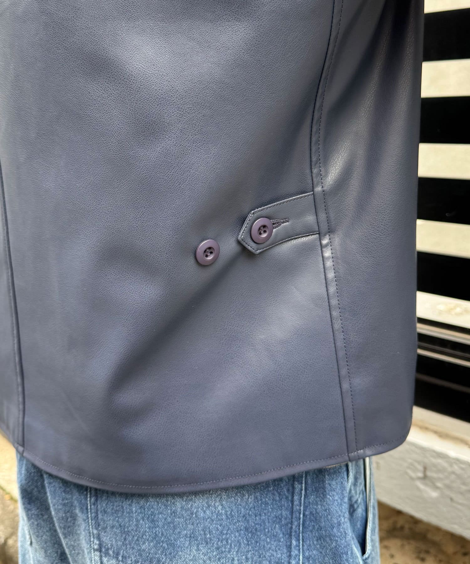 フロントは4つポケットと、背面のボタンがデザイン性と実用性を両立。