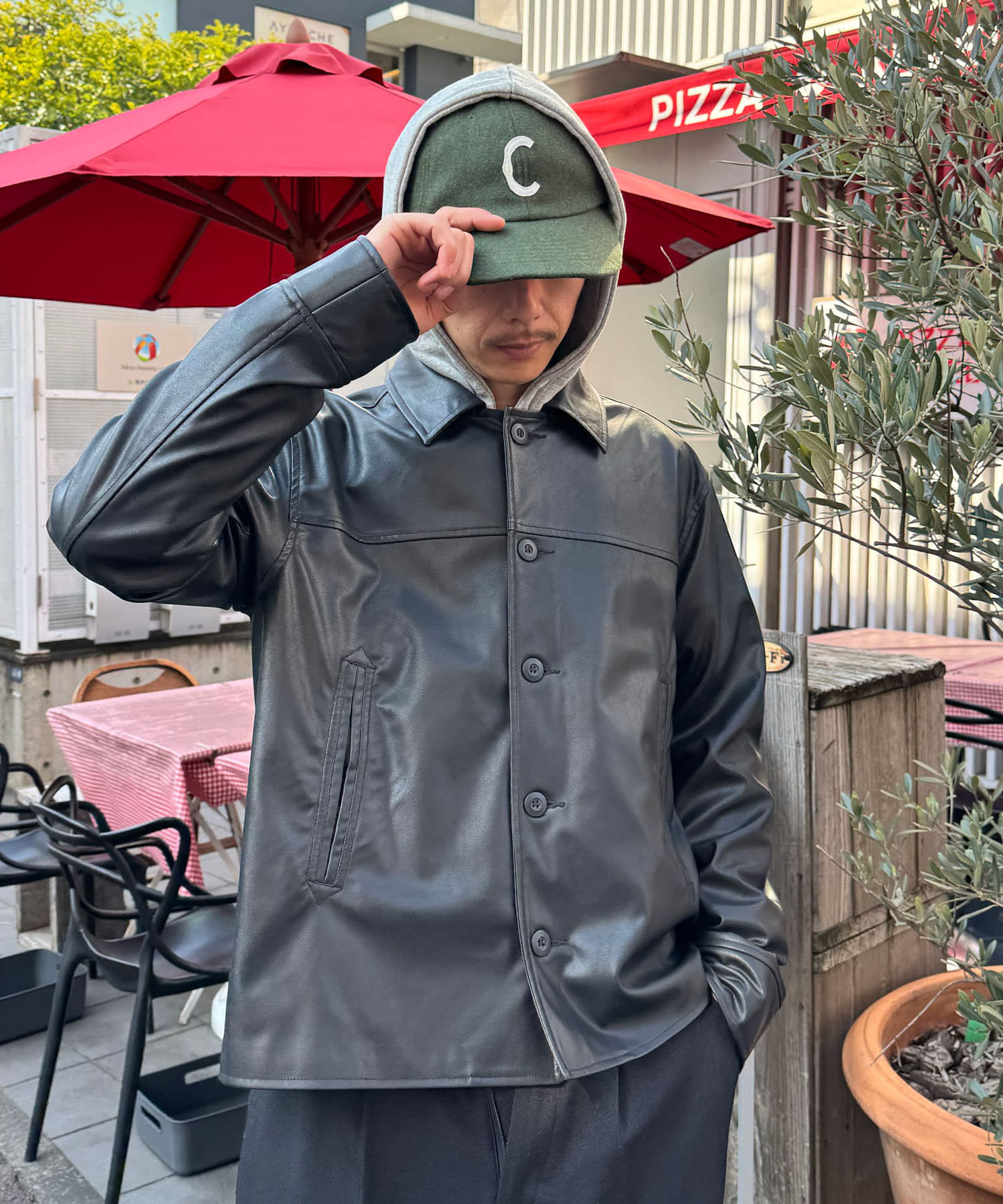 フェイクレザーカーコート