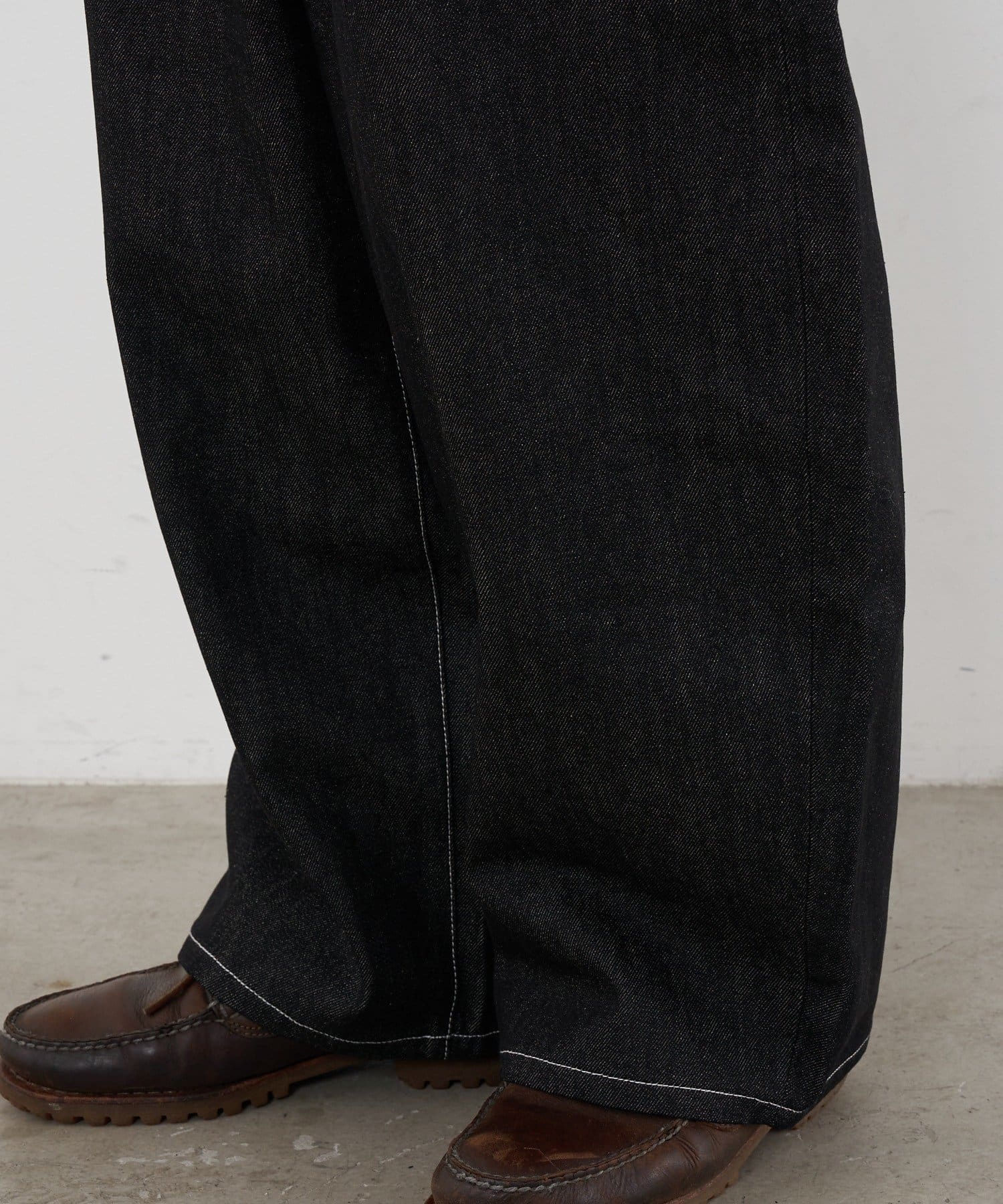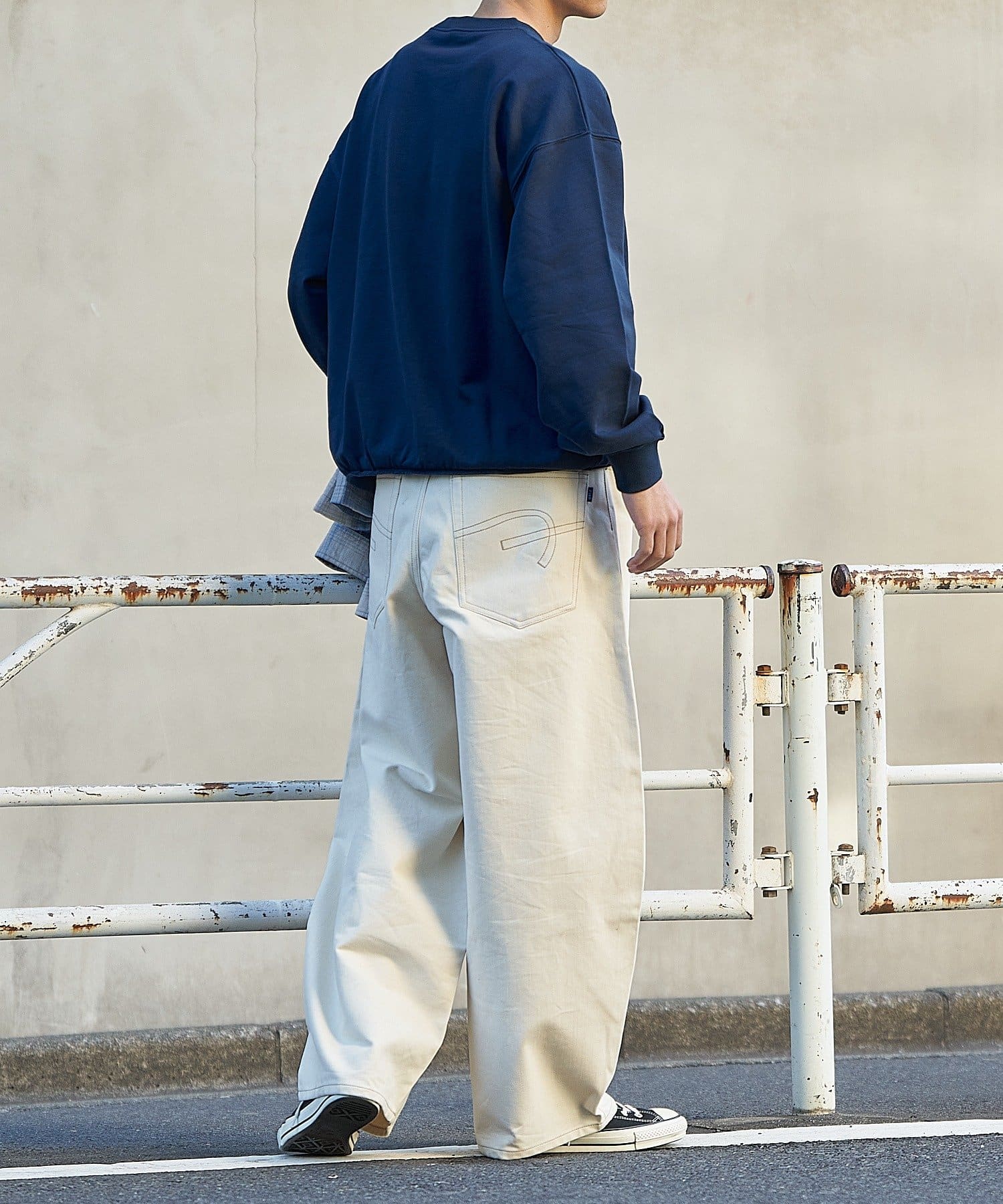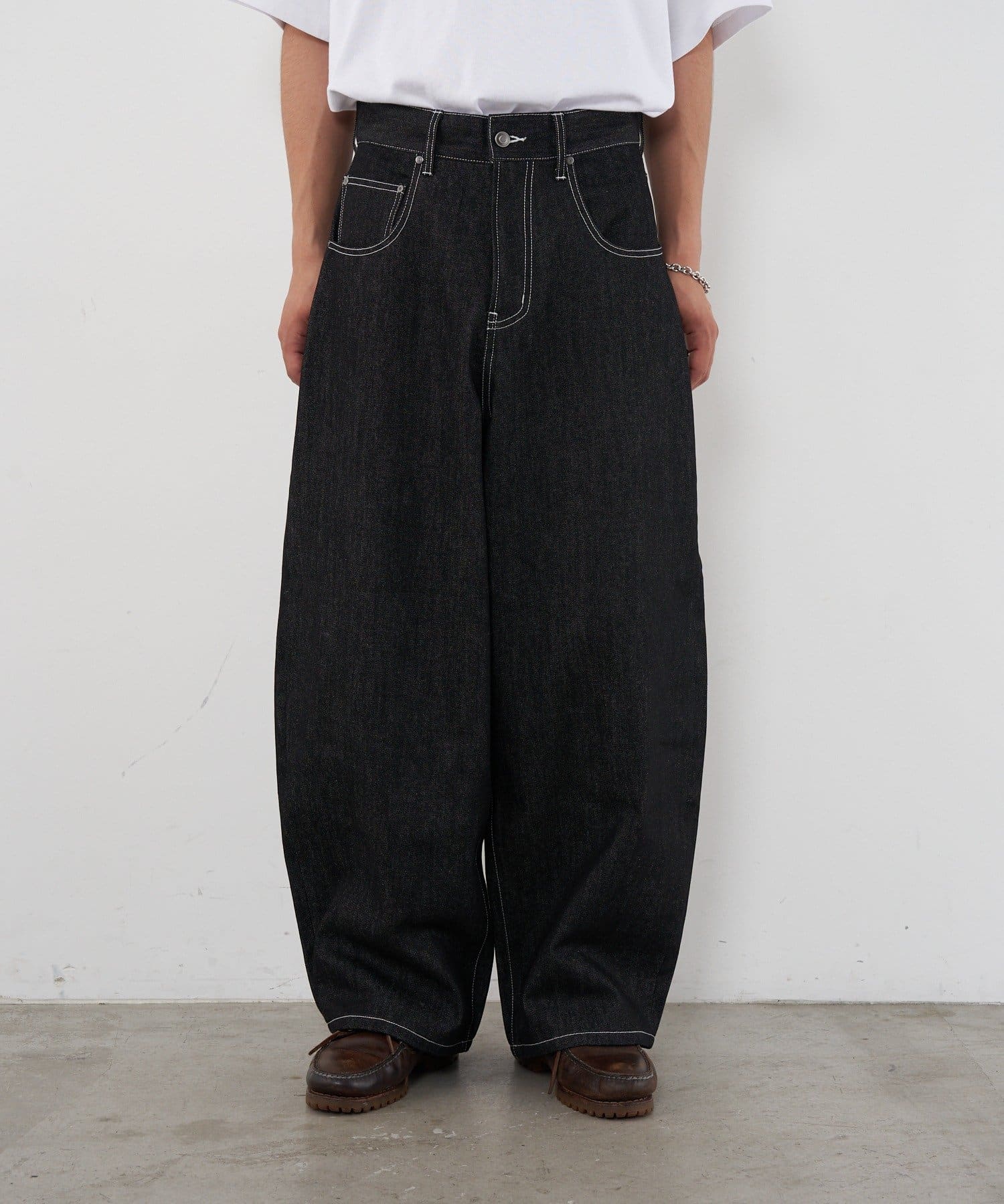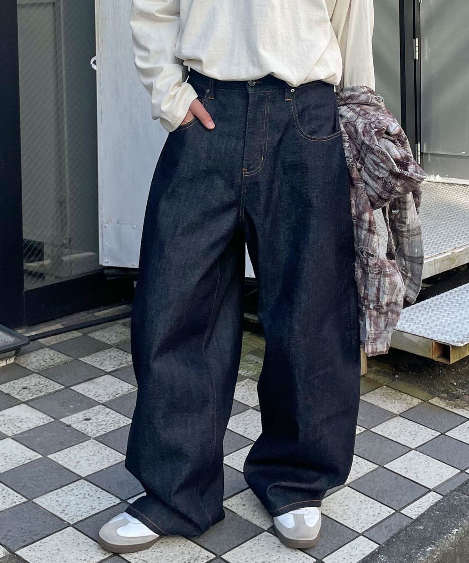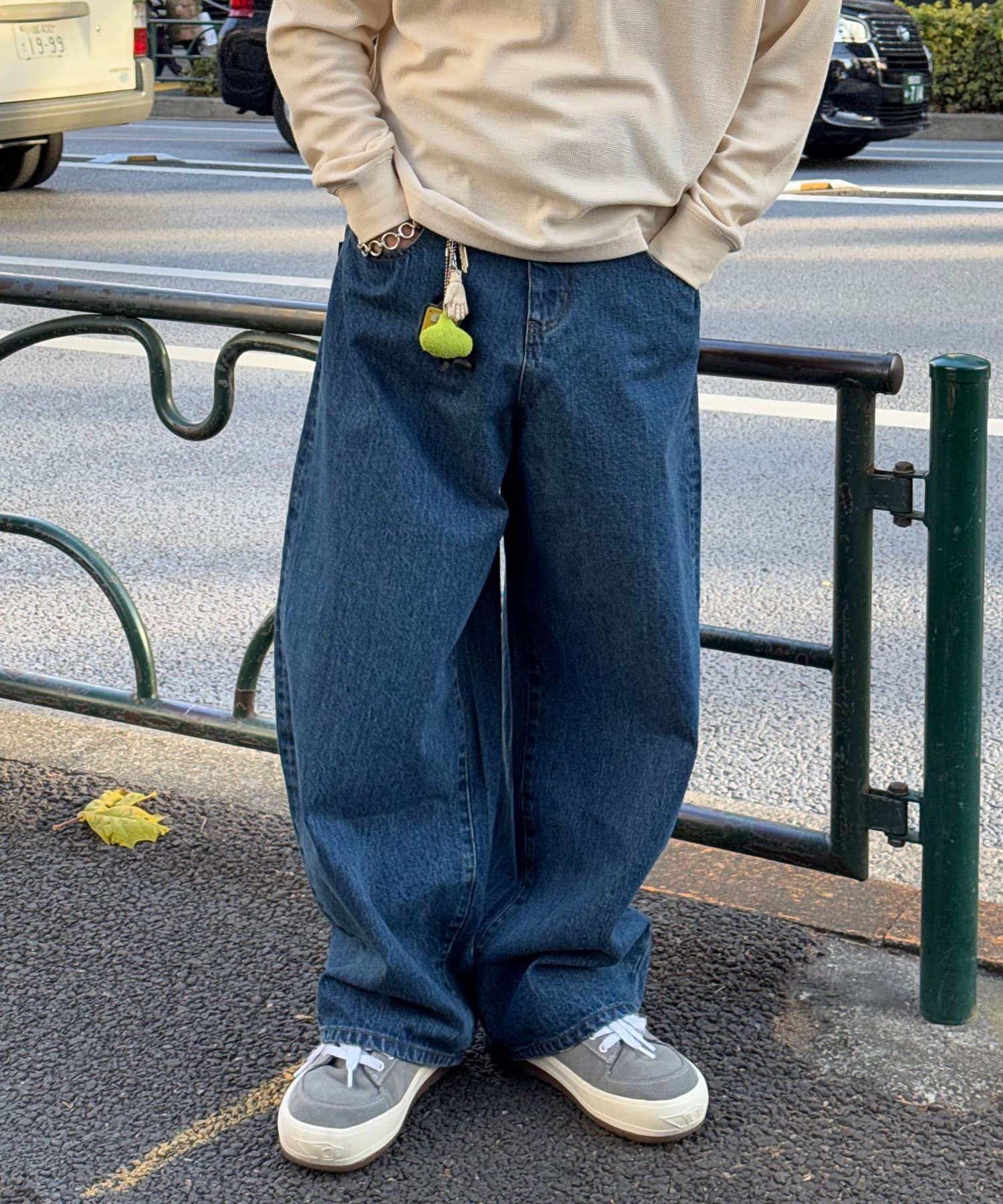 従来のワイドデニムに丸みを持たせることでボリューム感が増し、程よいリラックス感を演出。