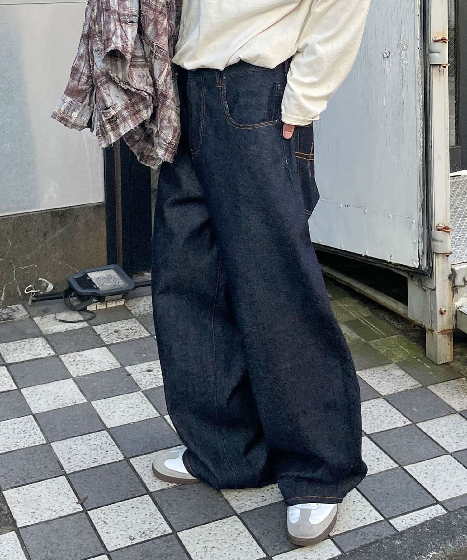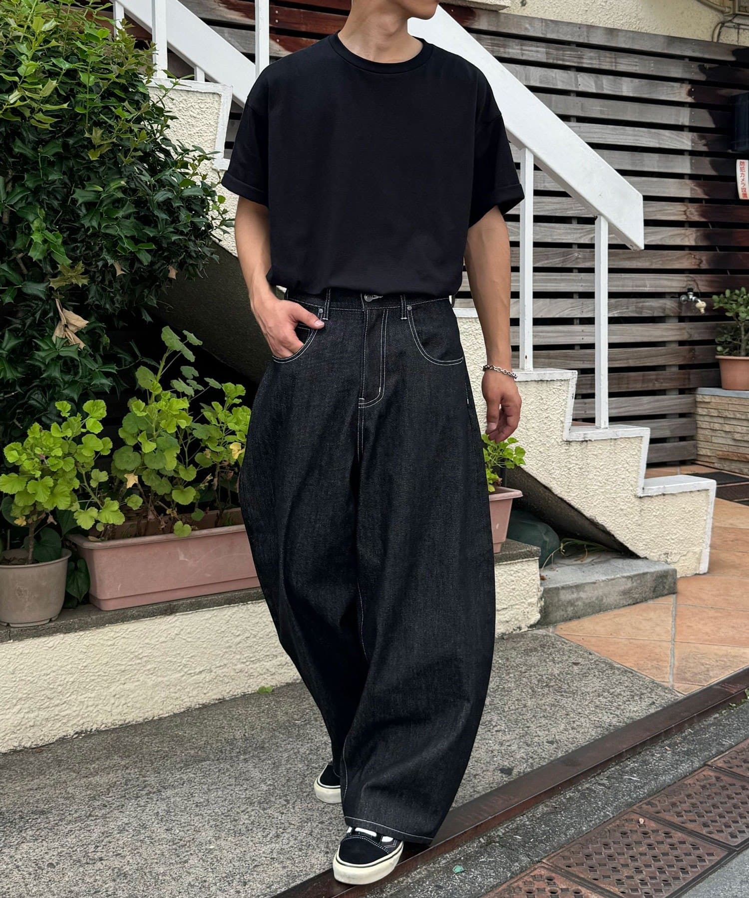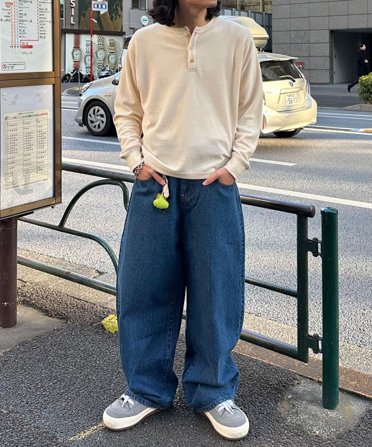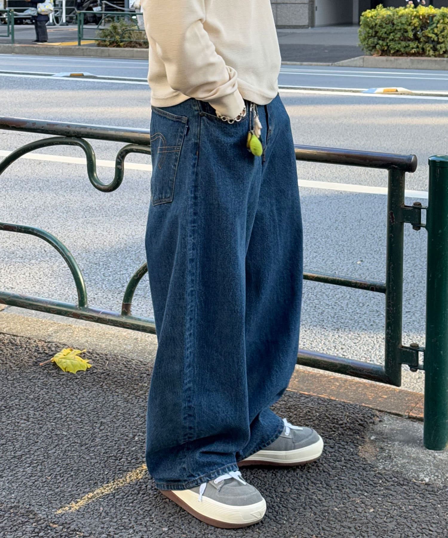 従来のワイドデニムに丸みを持たせることでボリューム感が増し、程よいリラックス感を演出。