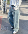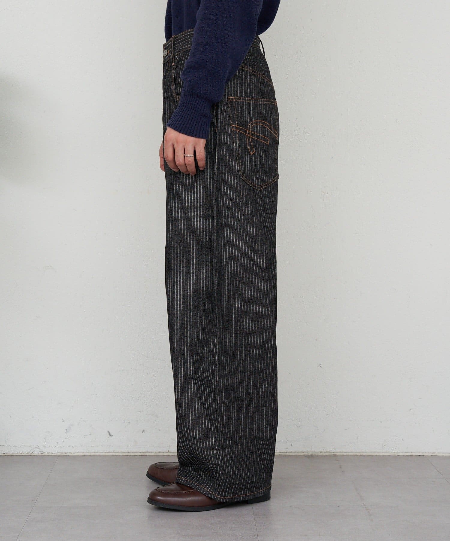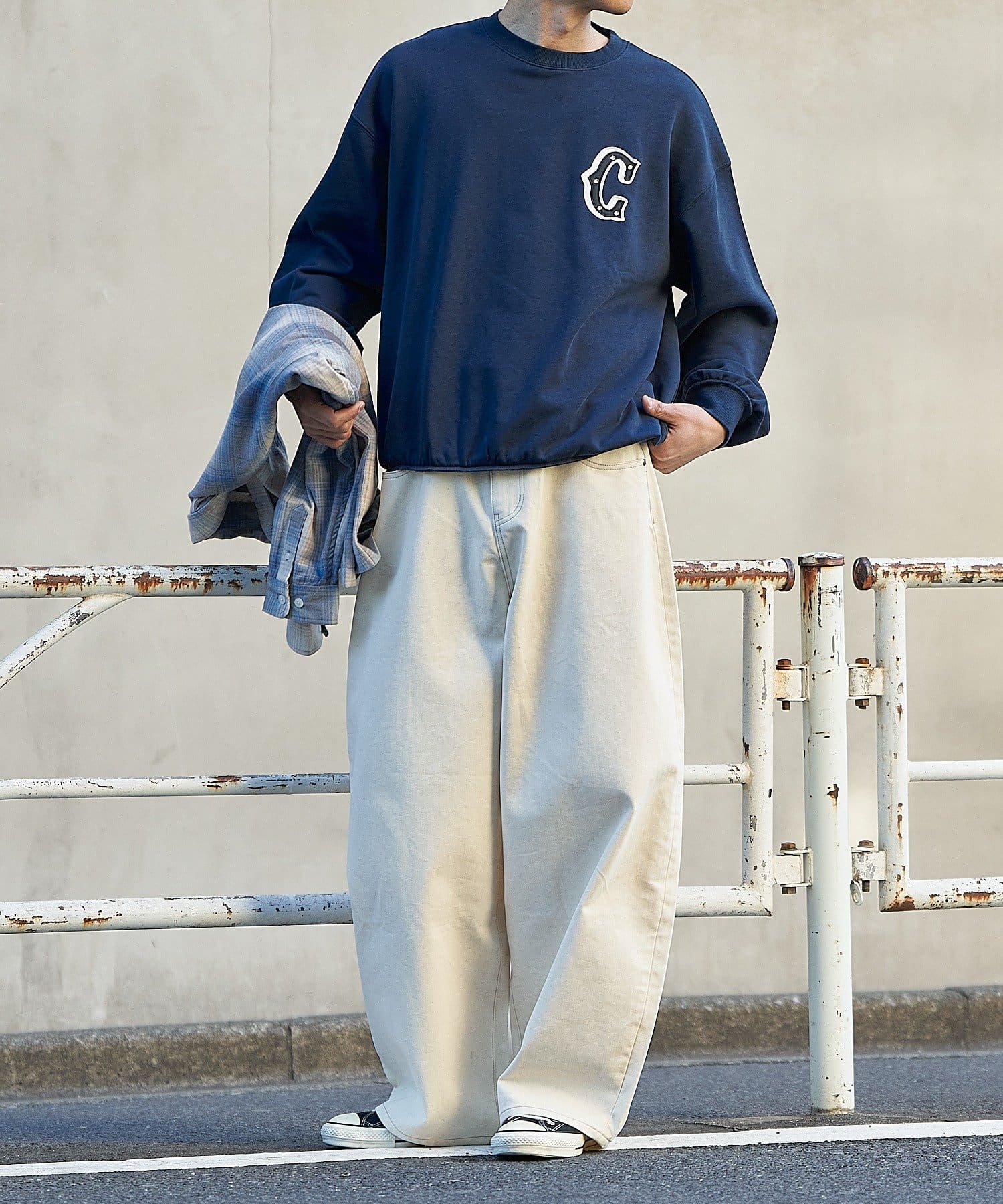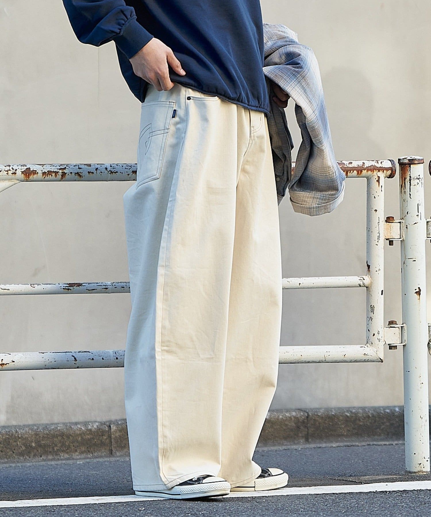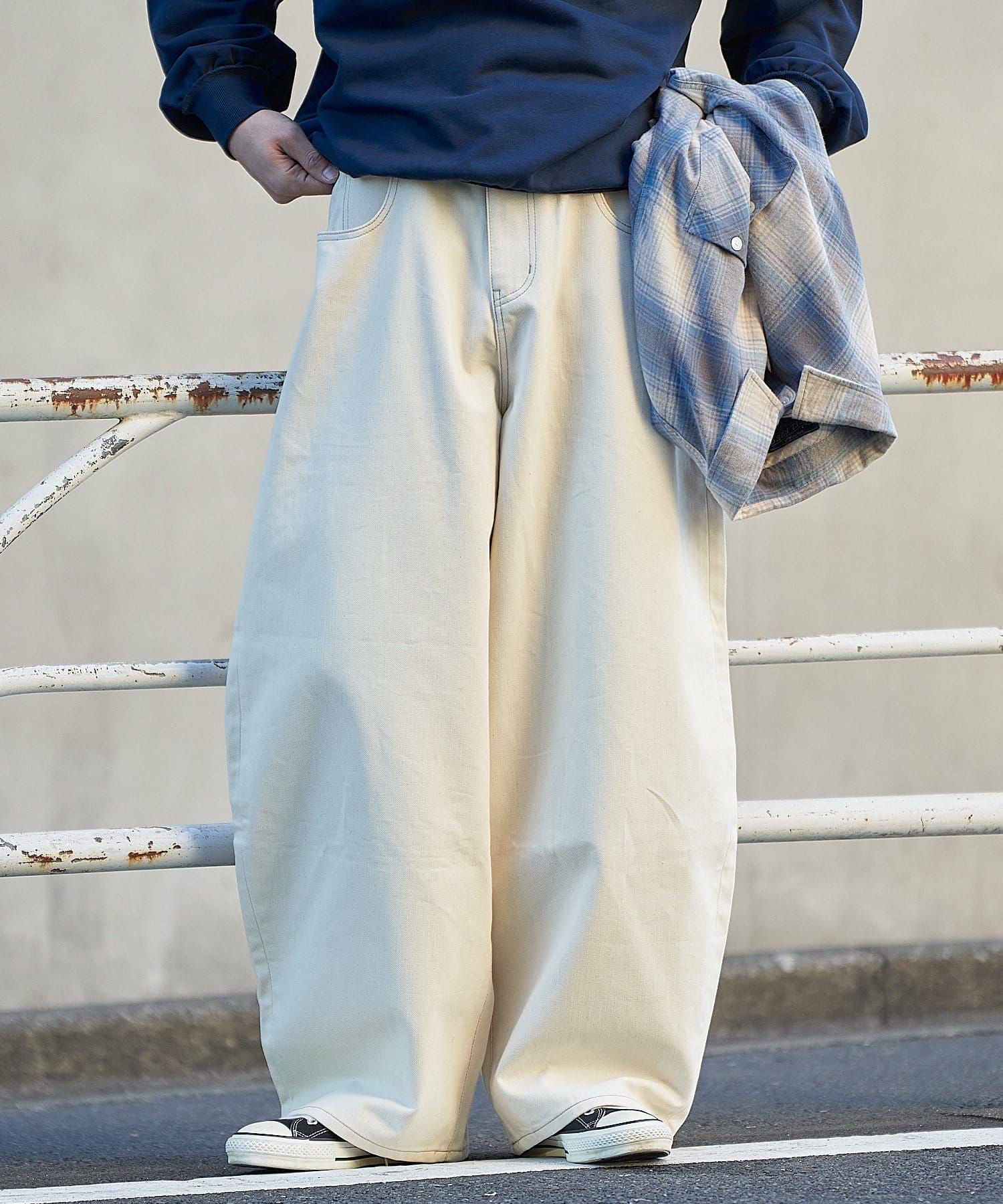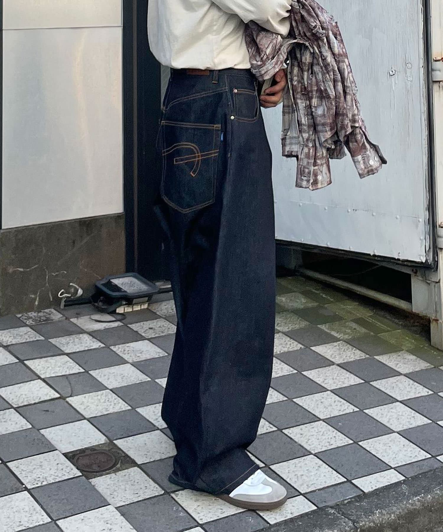 従来のワイドデニムに丸みを持たせることでボリューム感が増し、程よいリラックス感を演出。